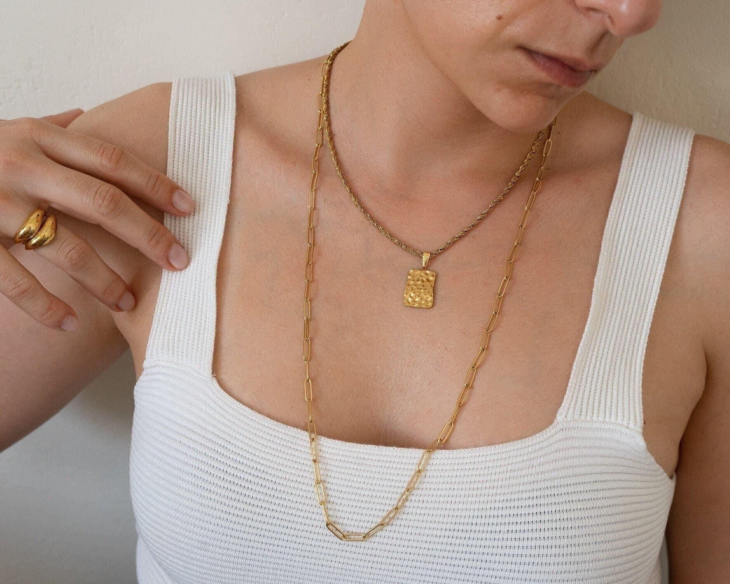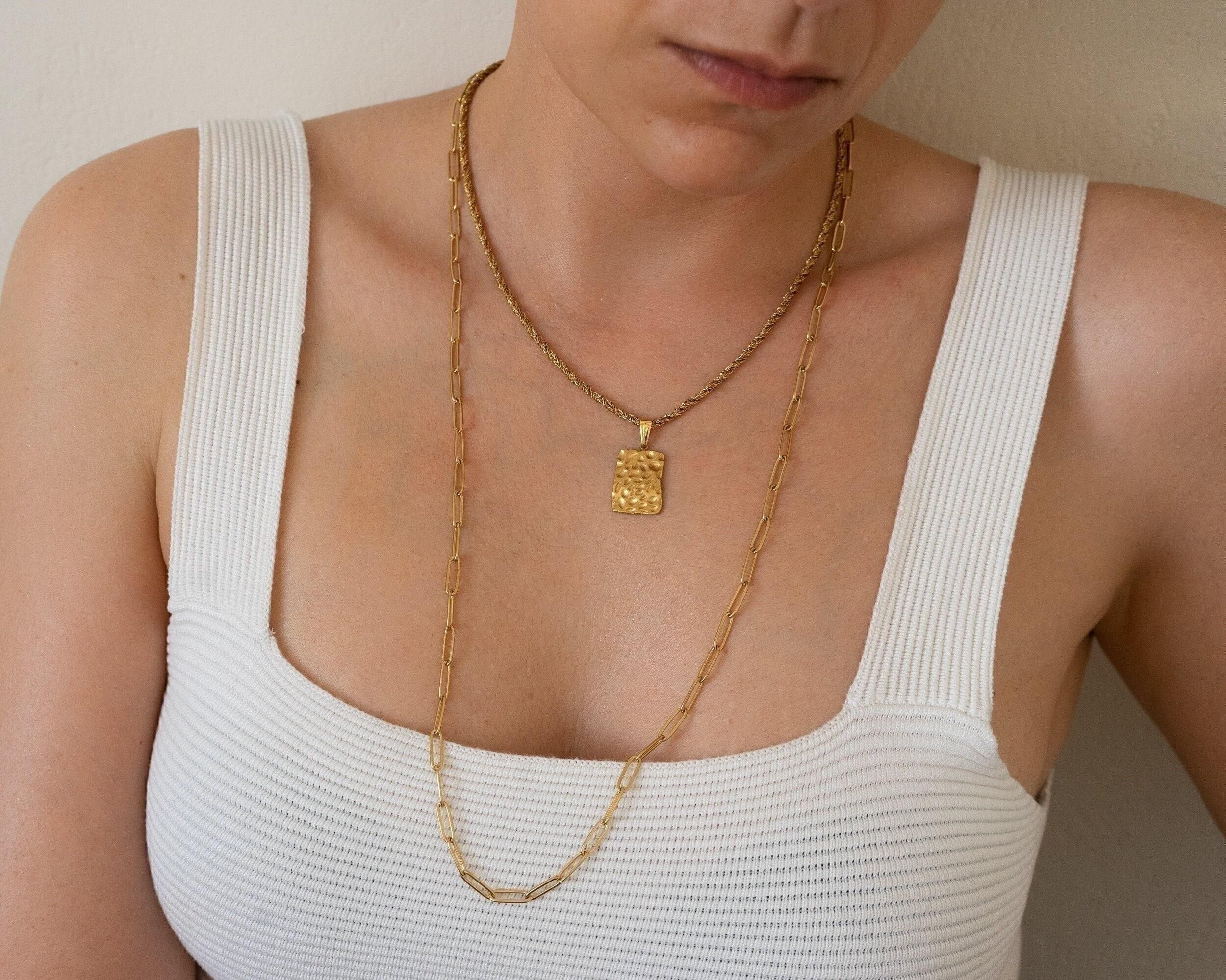 These materials remain beautiful and do not wear off. They are tarnish free and waterproof. The biggest trend in the fashion world right now dictates multi-layer necklaces. Chains and links of all sizes are a big trend on the runway and on the street for this season. Styling that mingles thick and thin chains and beads creates a refined modern look. Invest on a statement piece that can take you through the seasons and compliment every outfit.