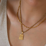 A unique gold pendant with a textured surface in a stainless steel FOXTAIL chain.