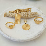 Gold Rectangular Round Sun Rays Pendant Necklace