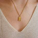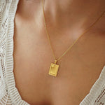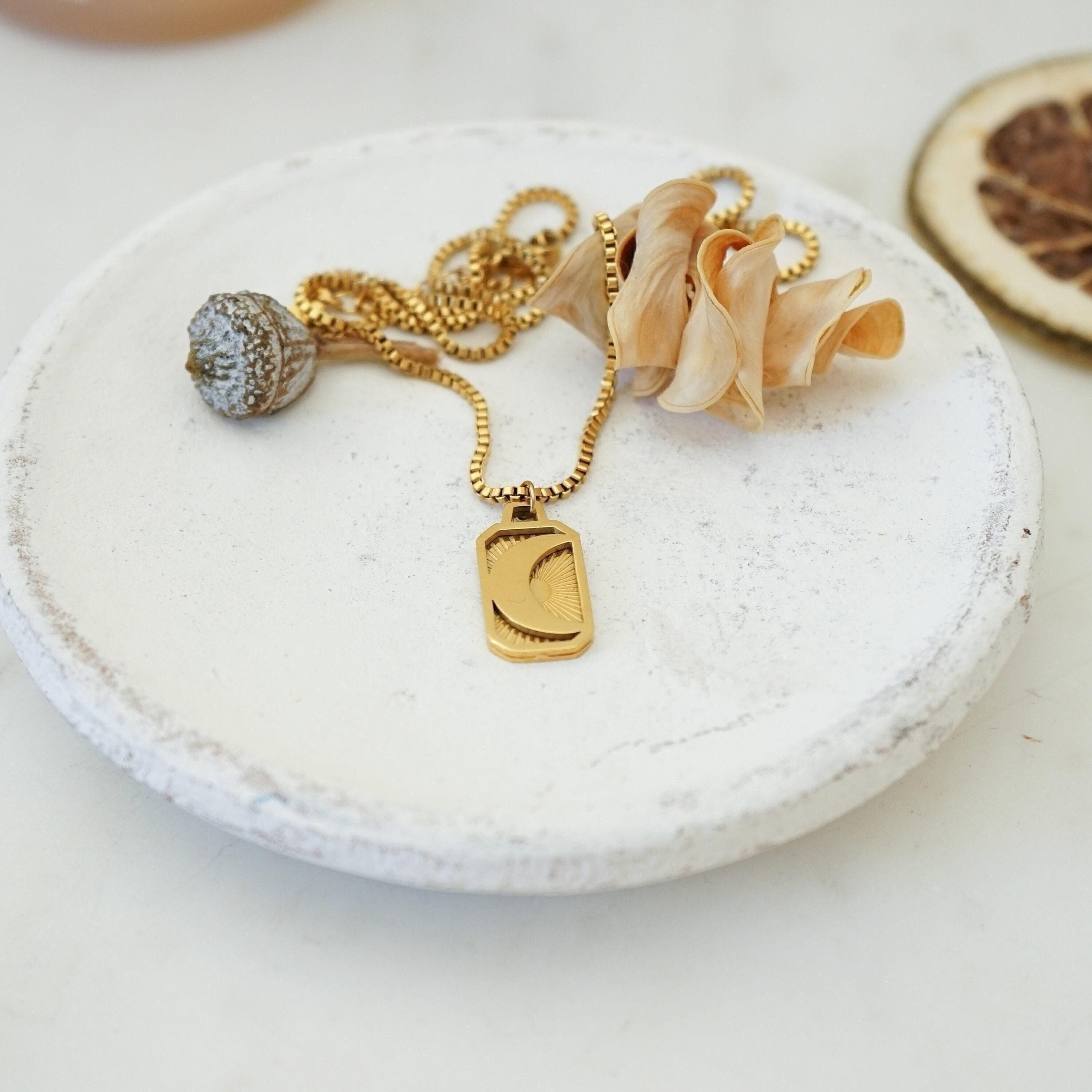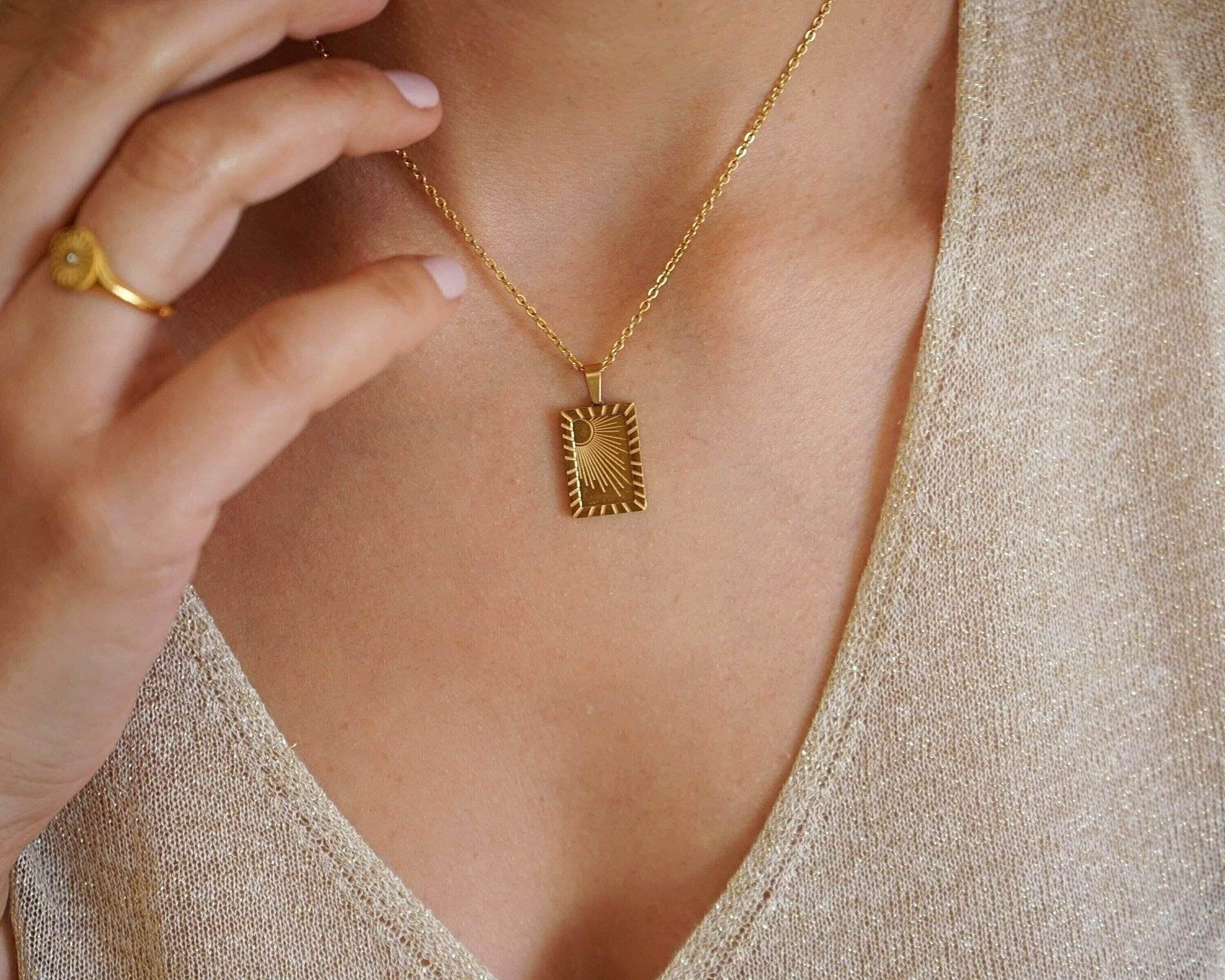 Gold Rectangle Sun Rays/Moon Pendant Necklace