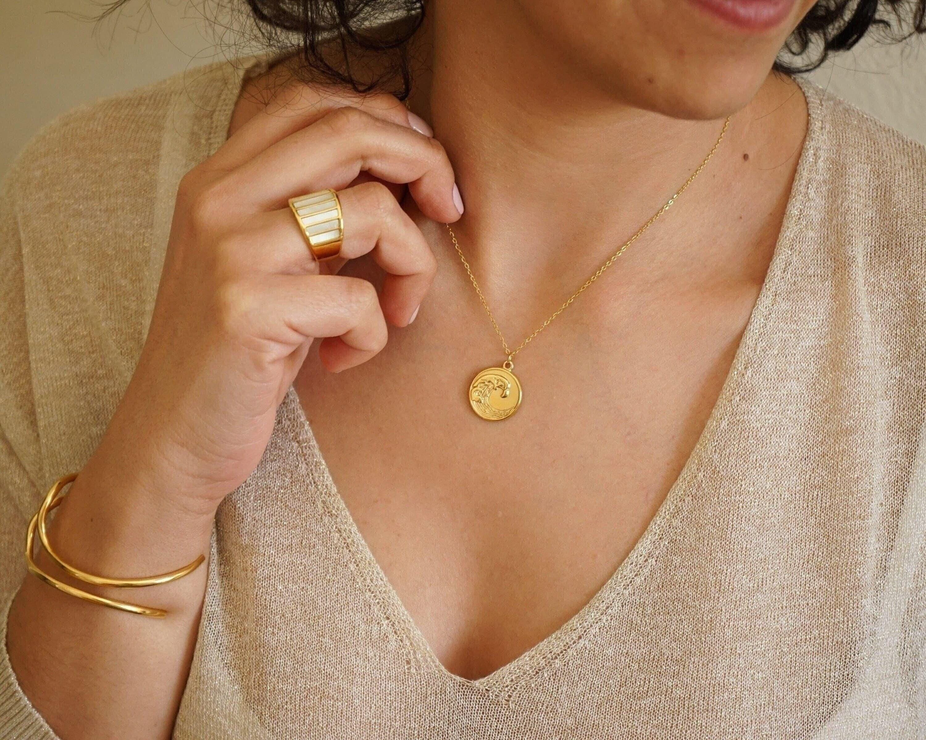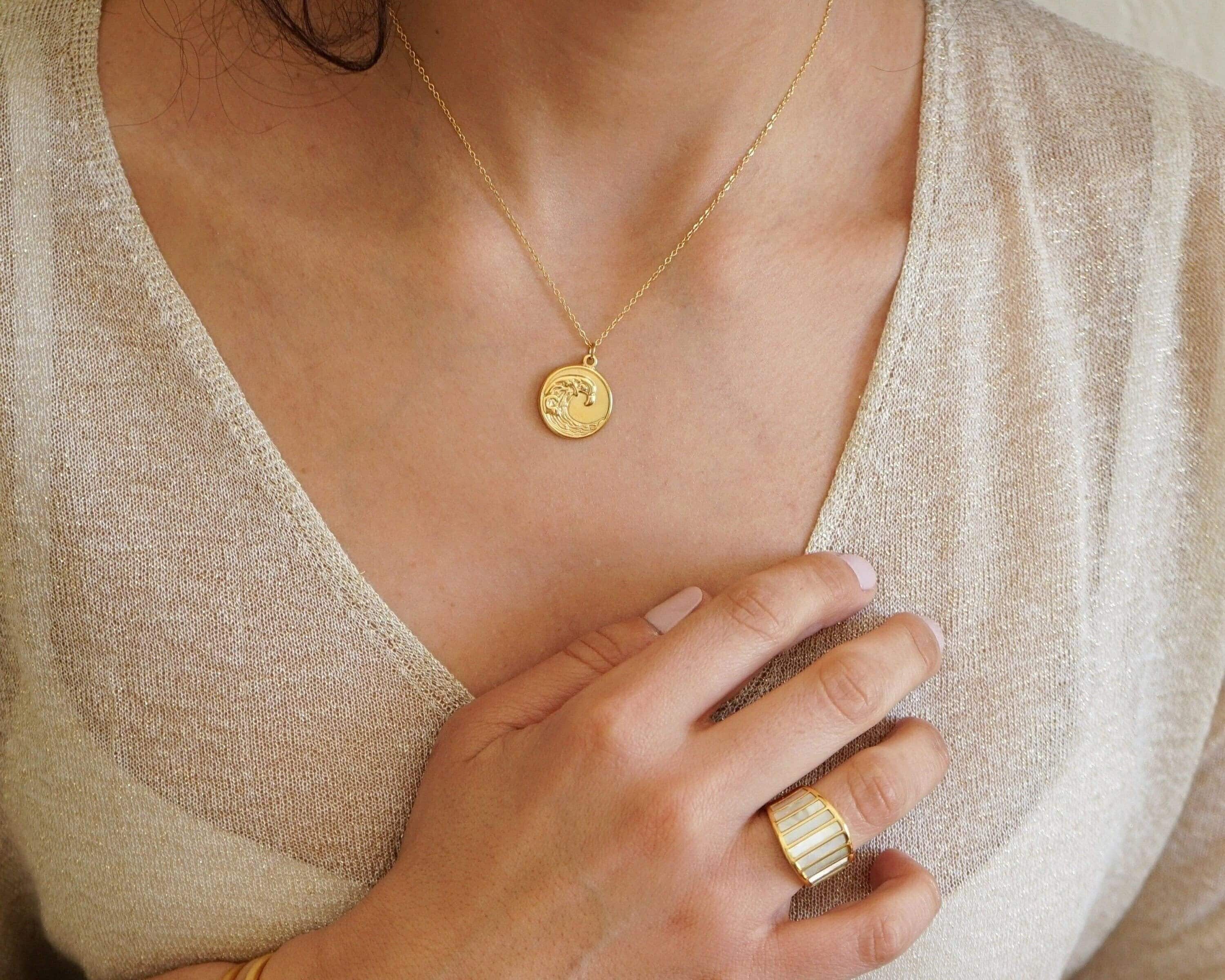 Add this exquisite gold wave pendant necklace to your jewelry collection for a touch of effortless elegance.