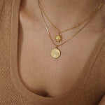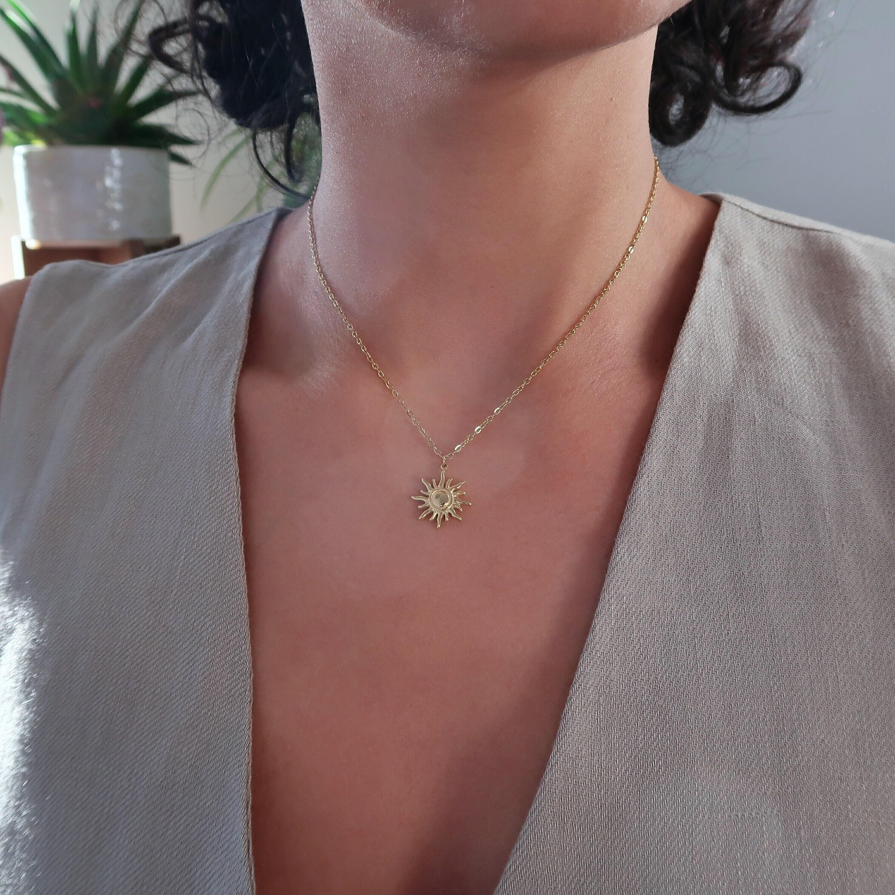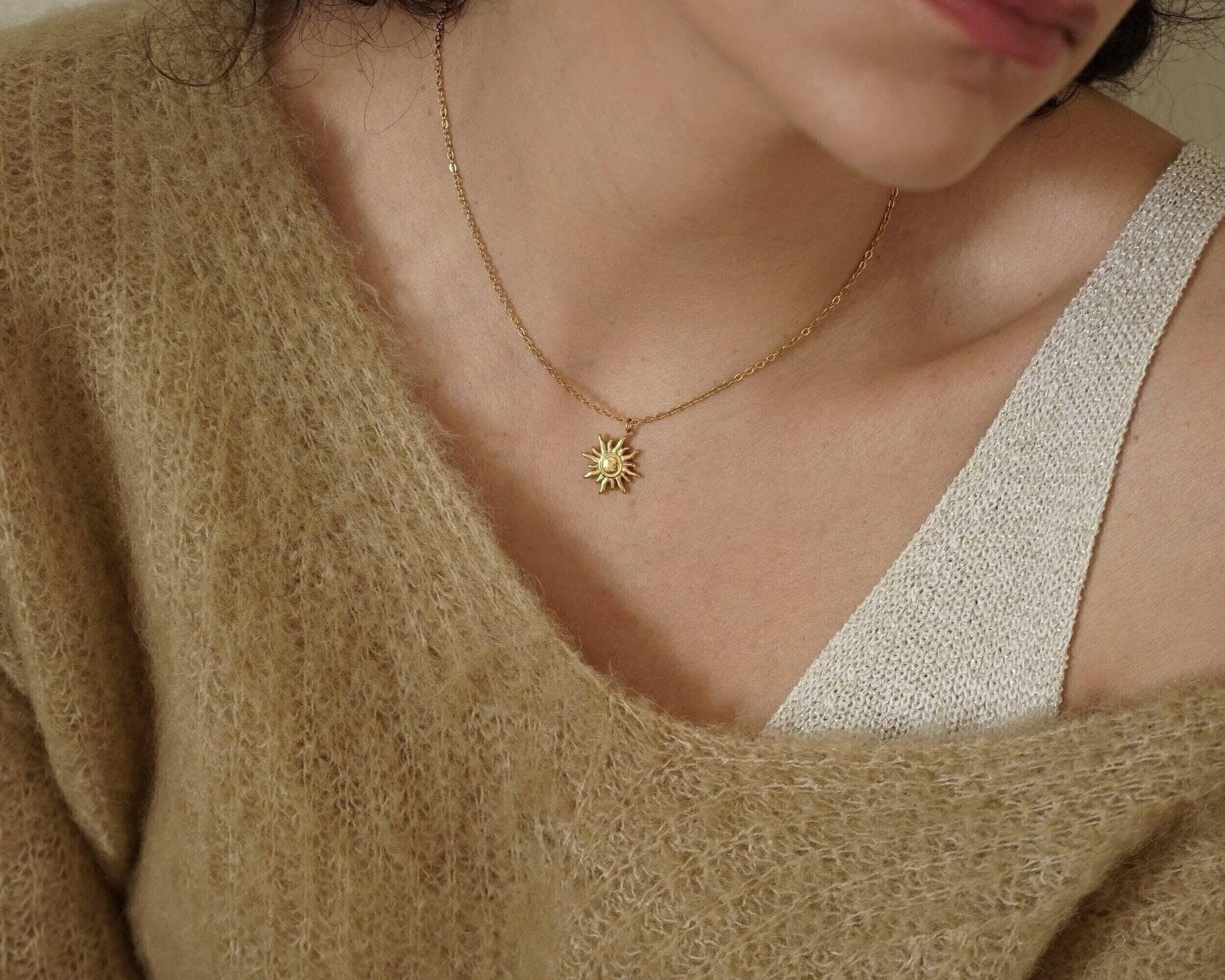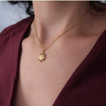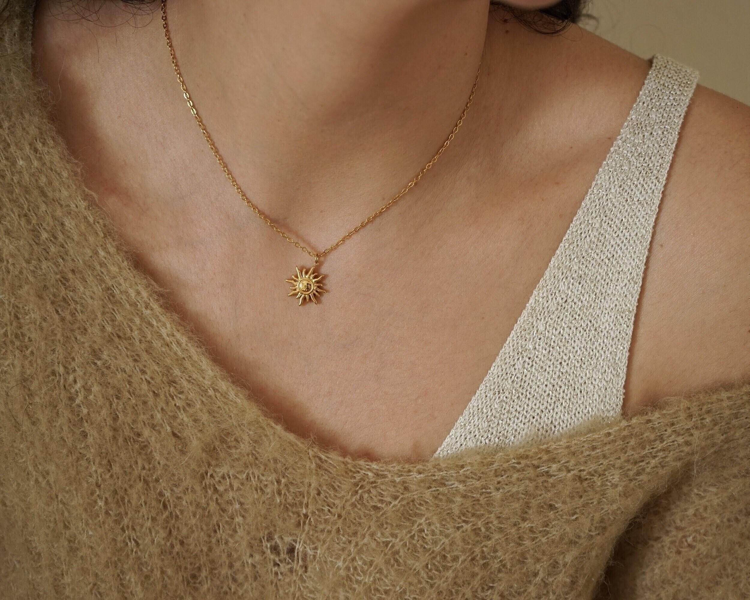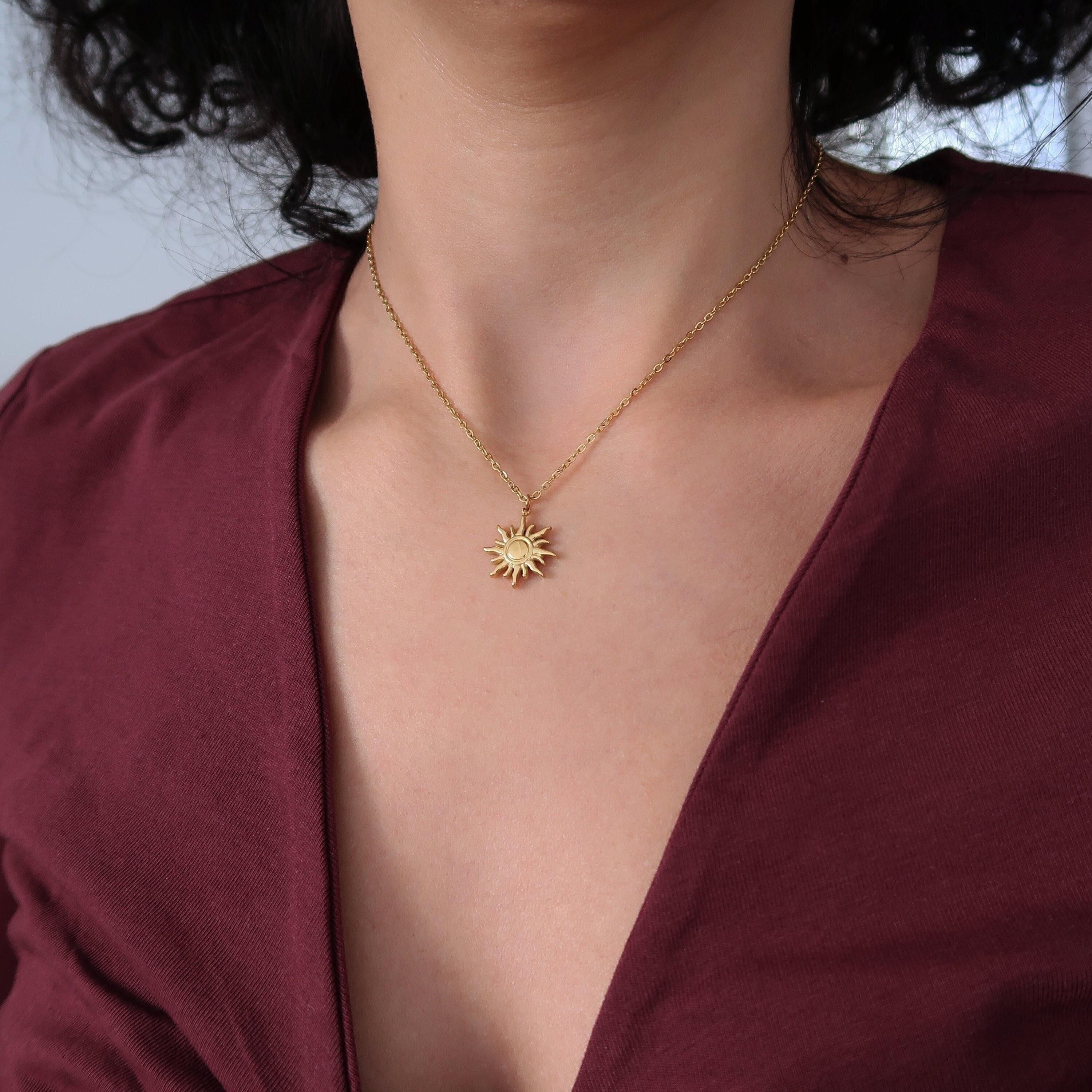 Gold Stainless Steel Sun Pendant Necklace