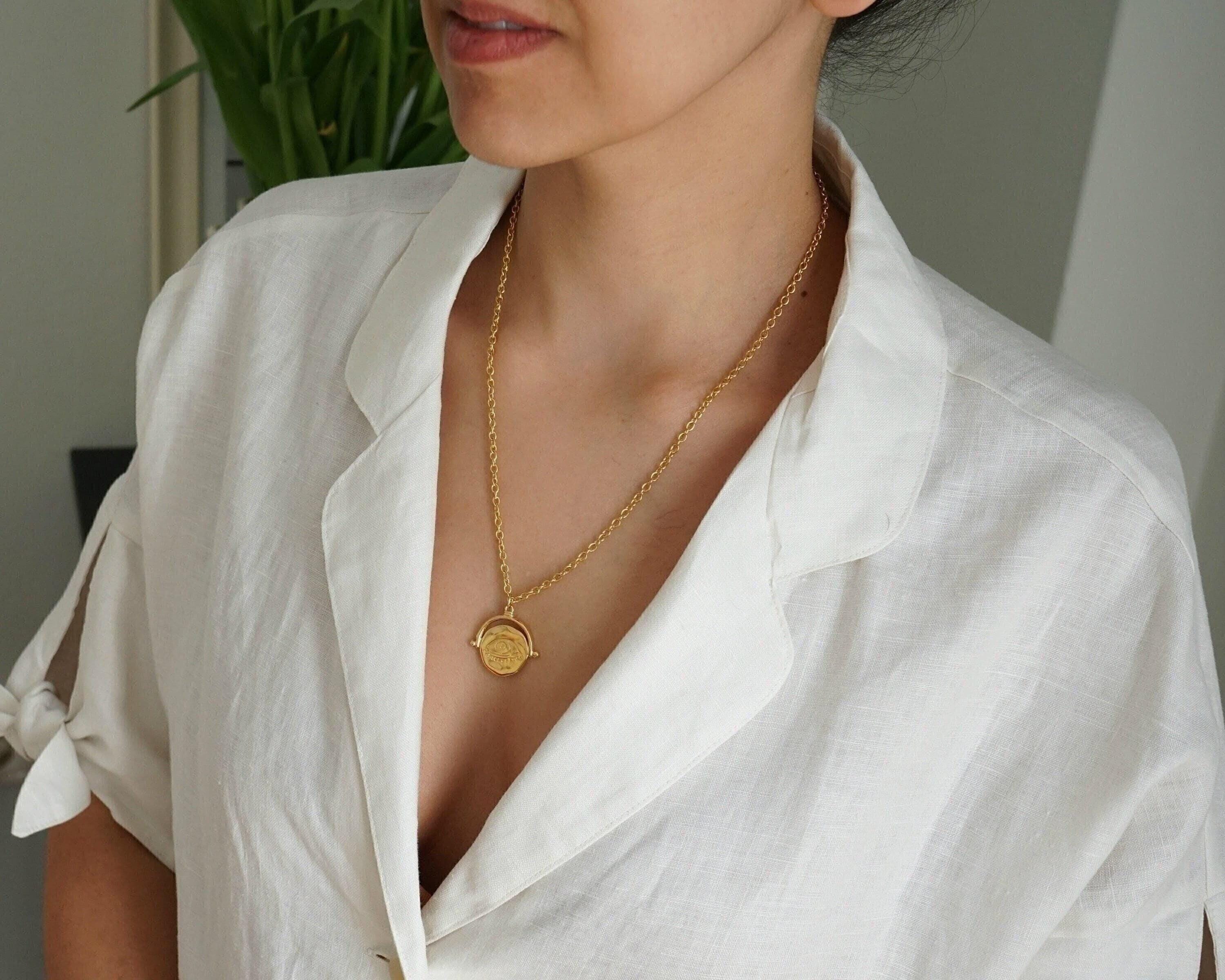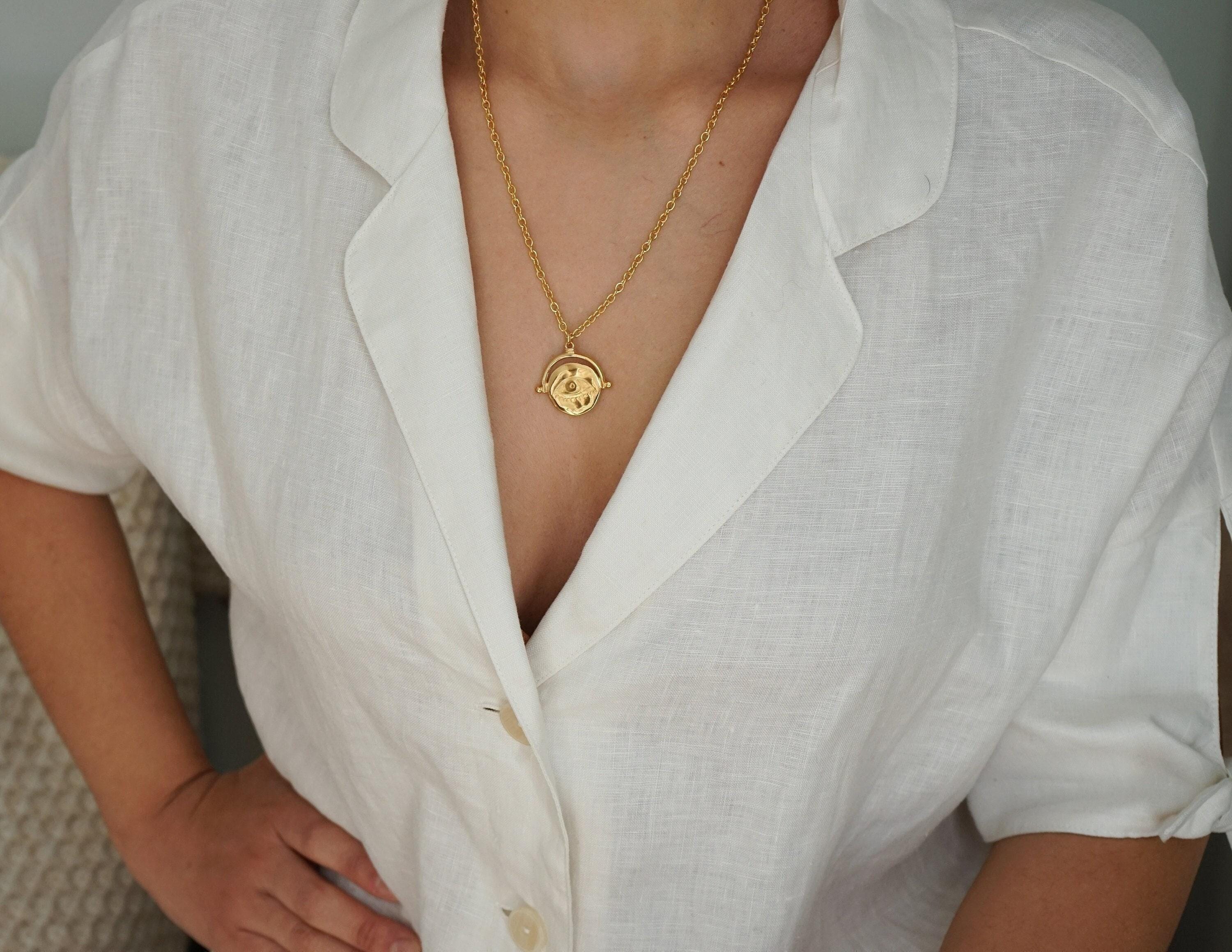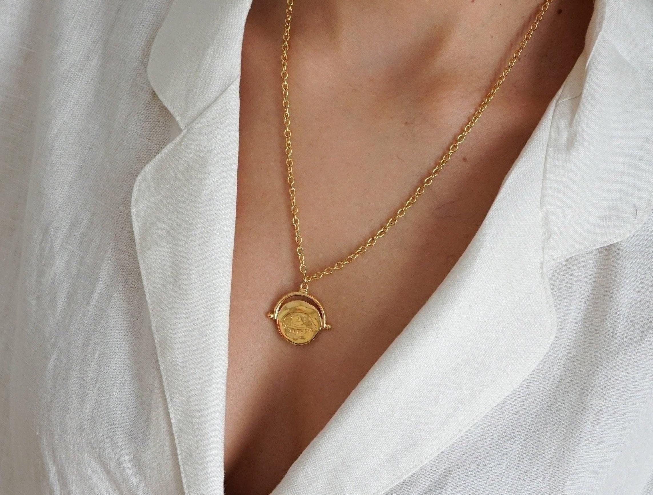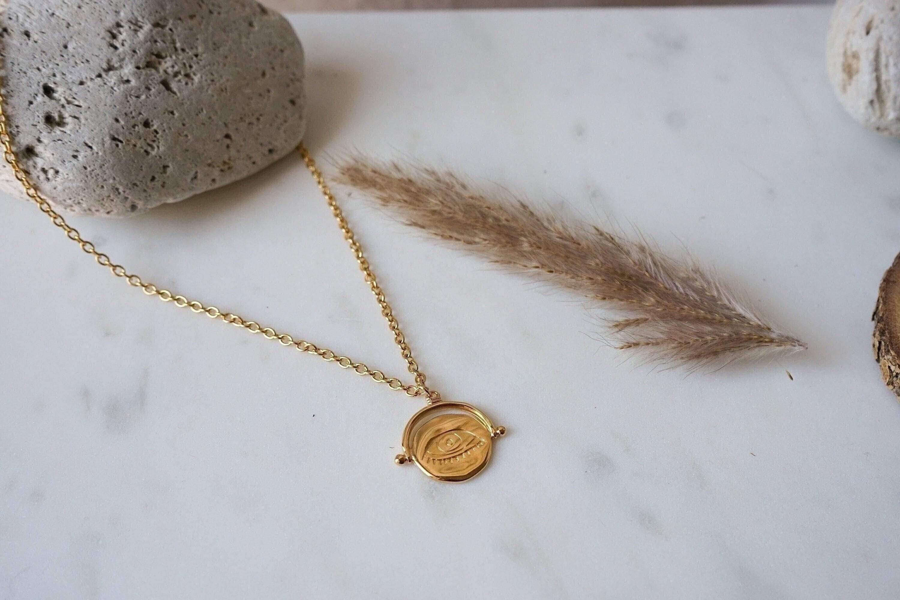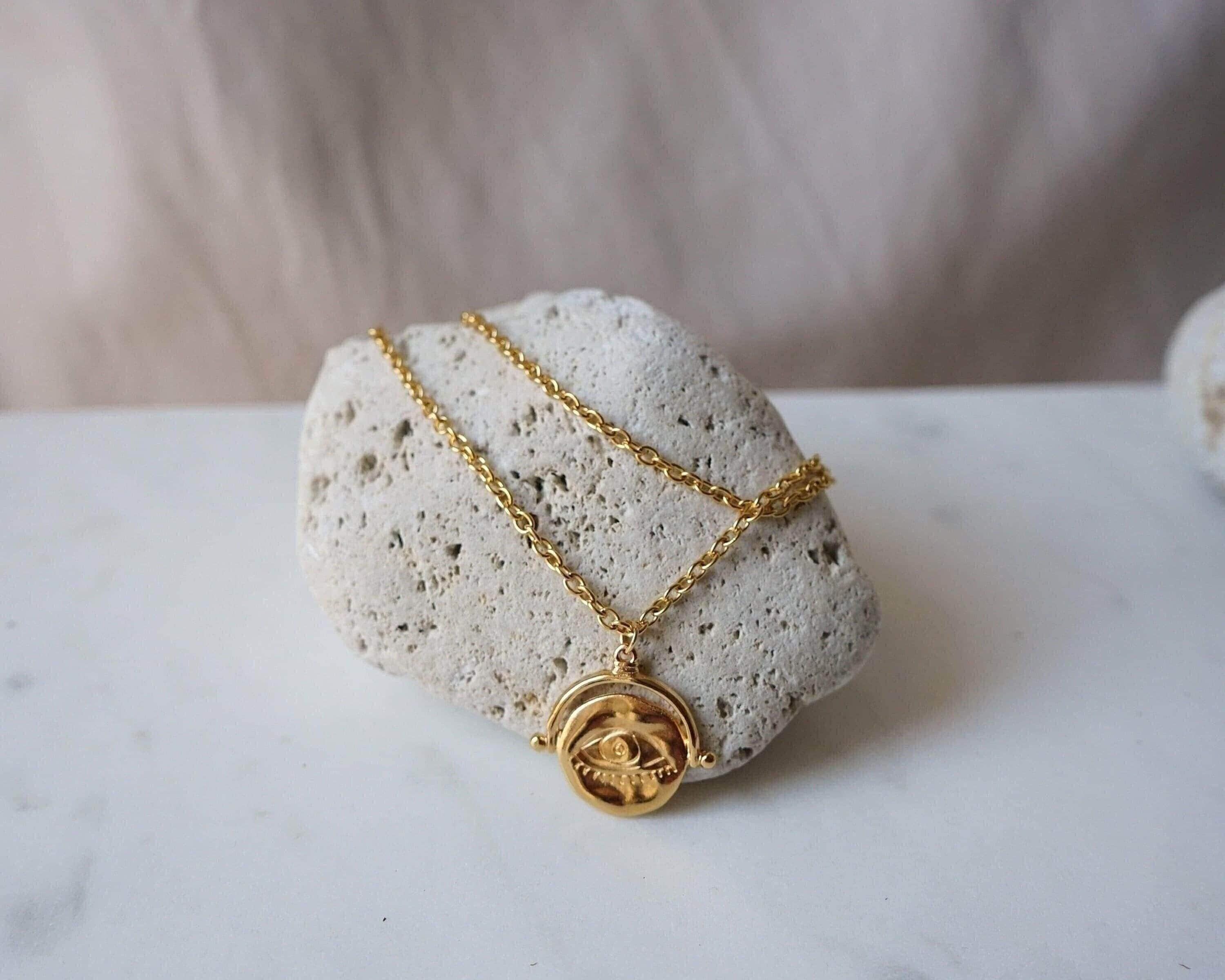 Gold Vintage-Style Evil Eye Protection Engraved Pendant