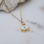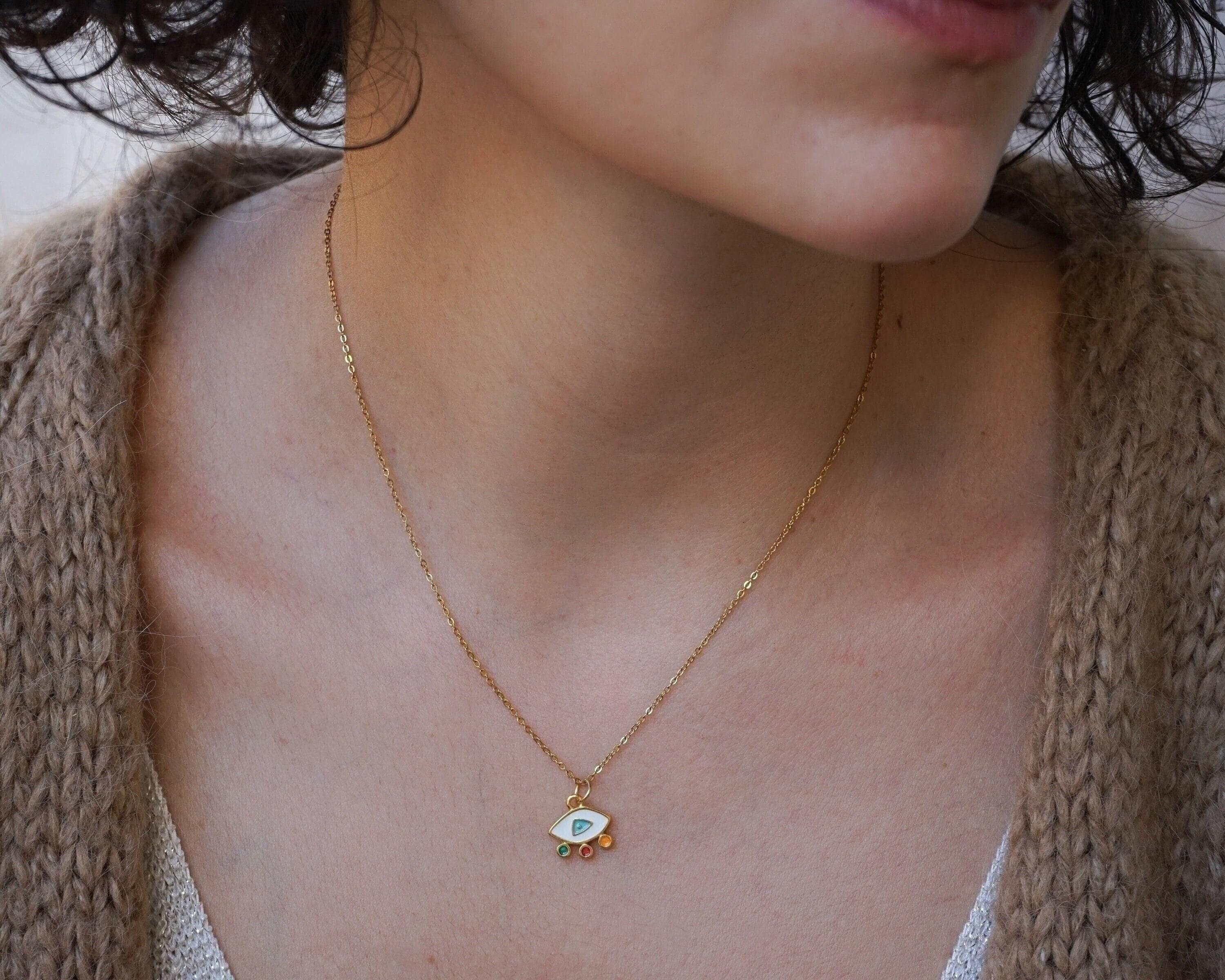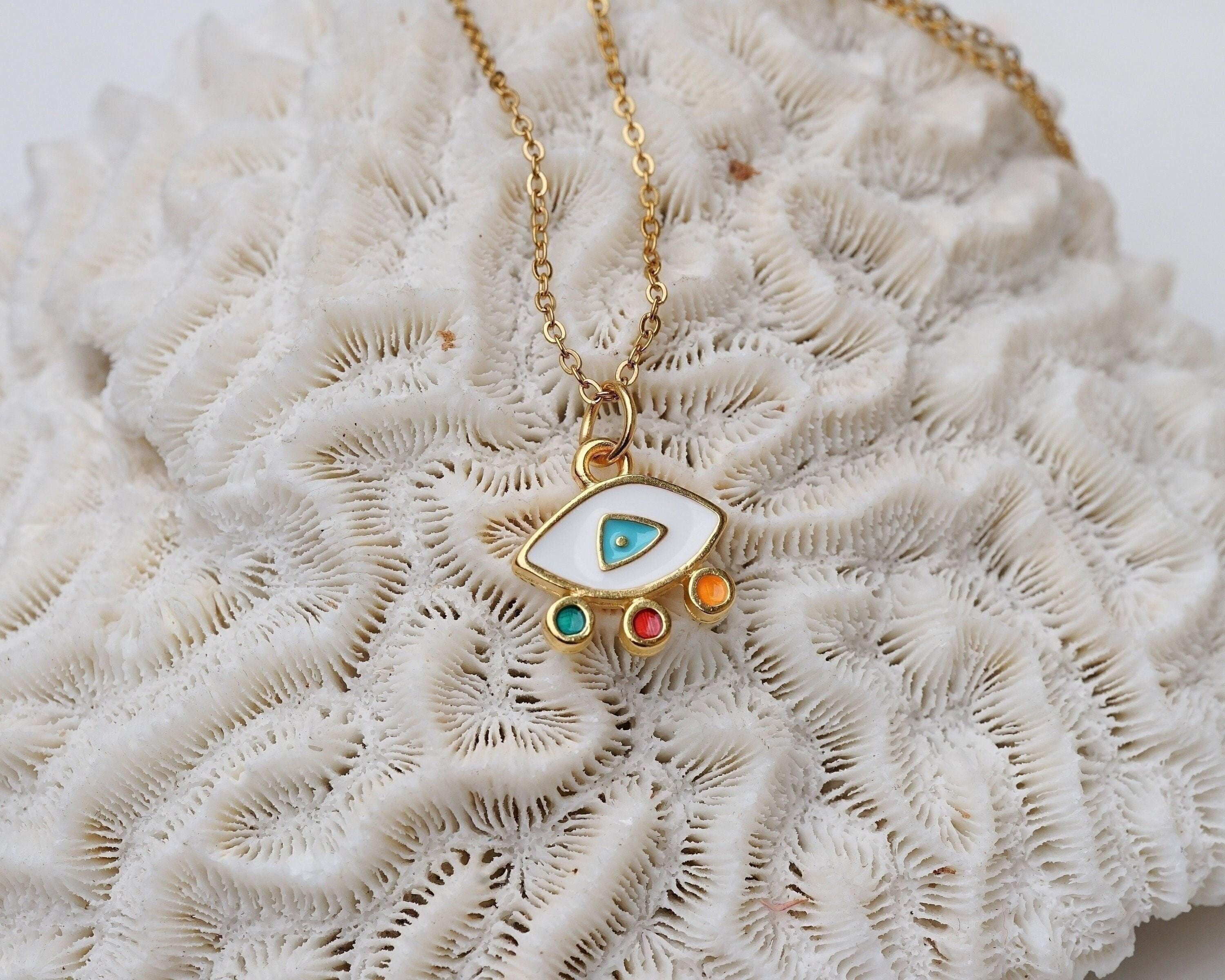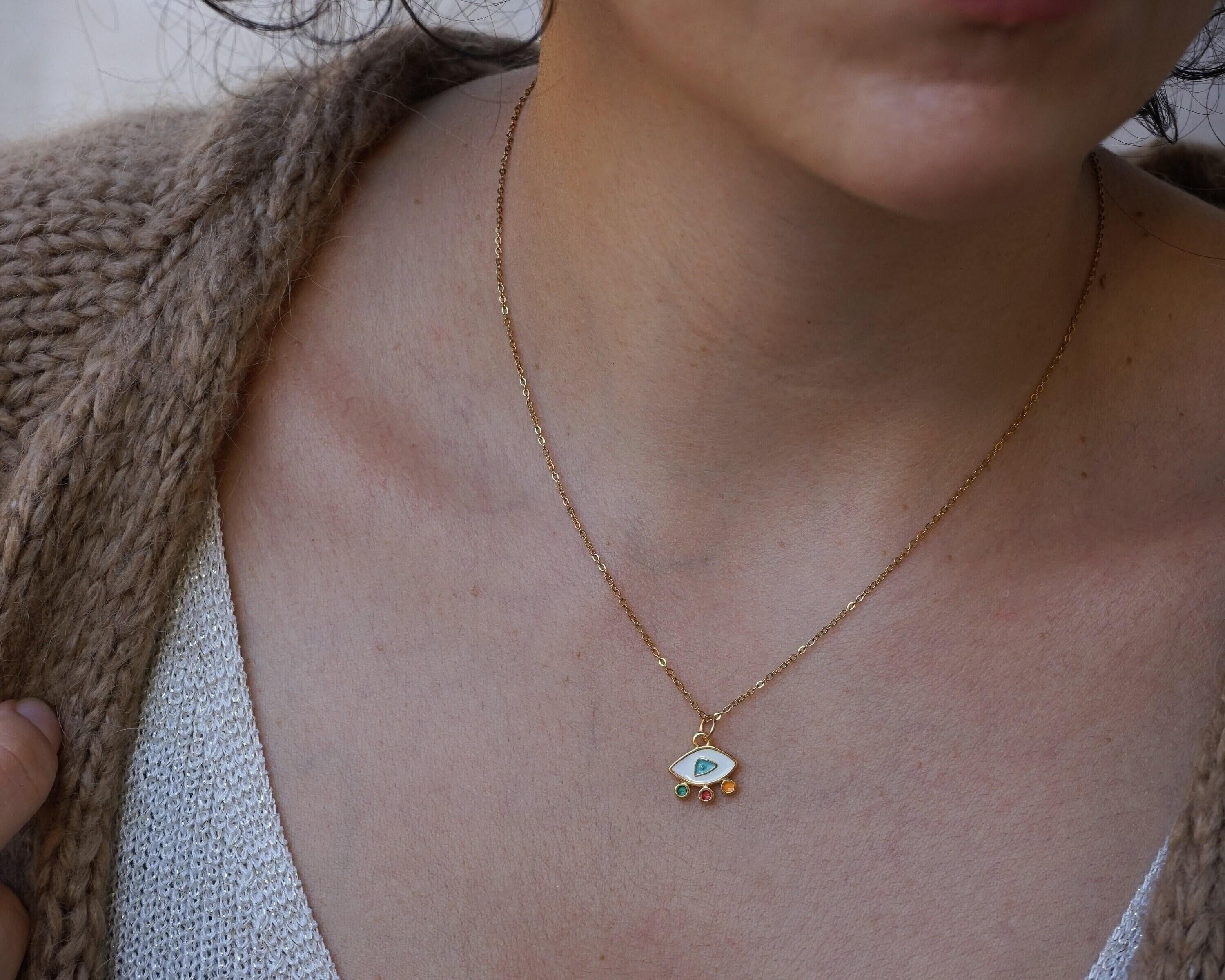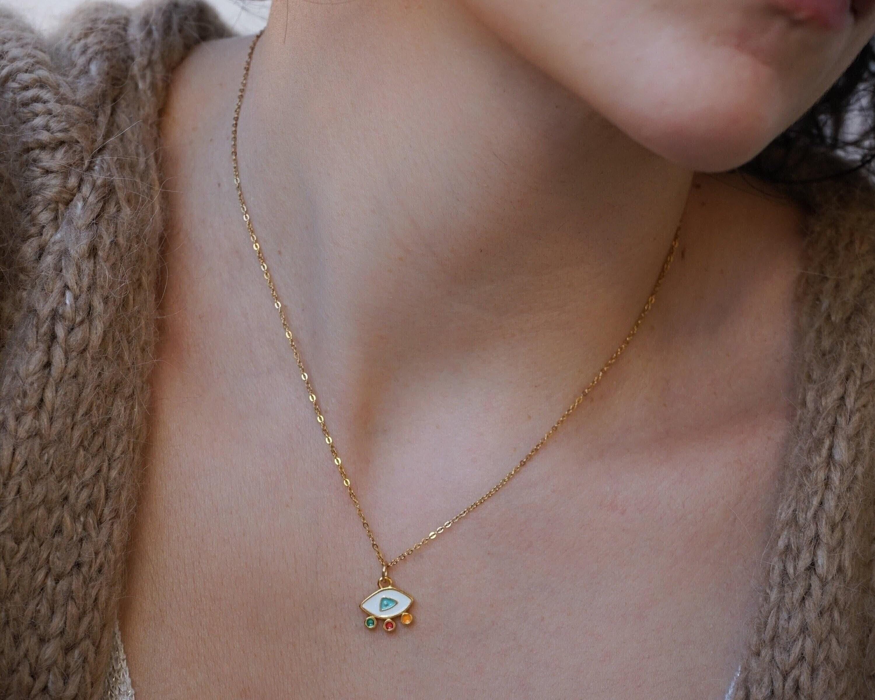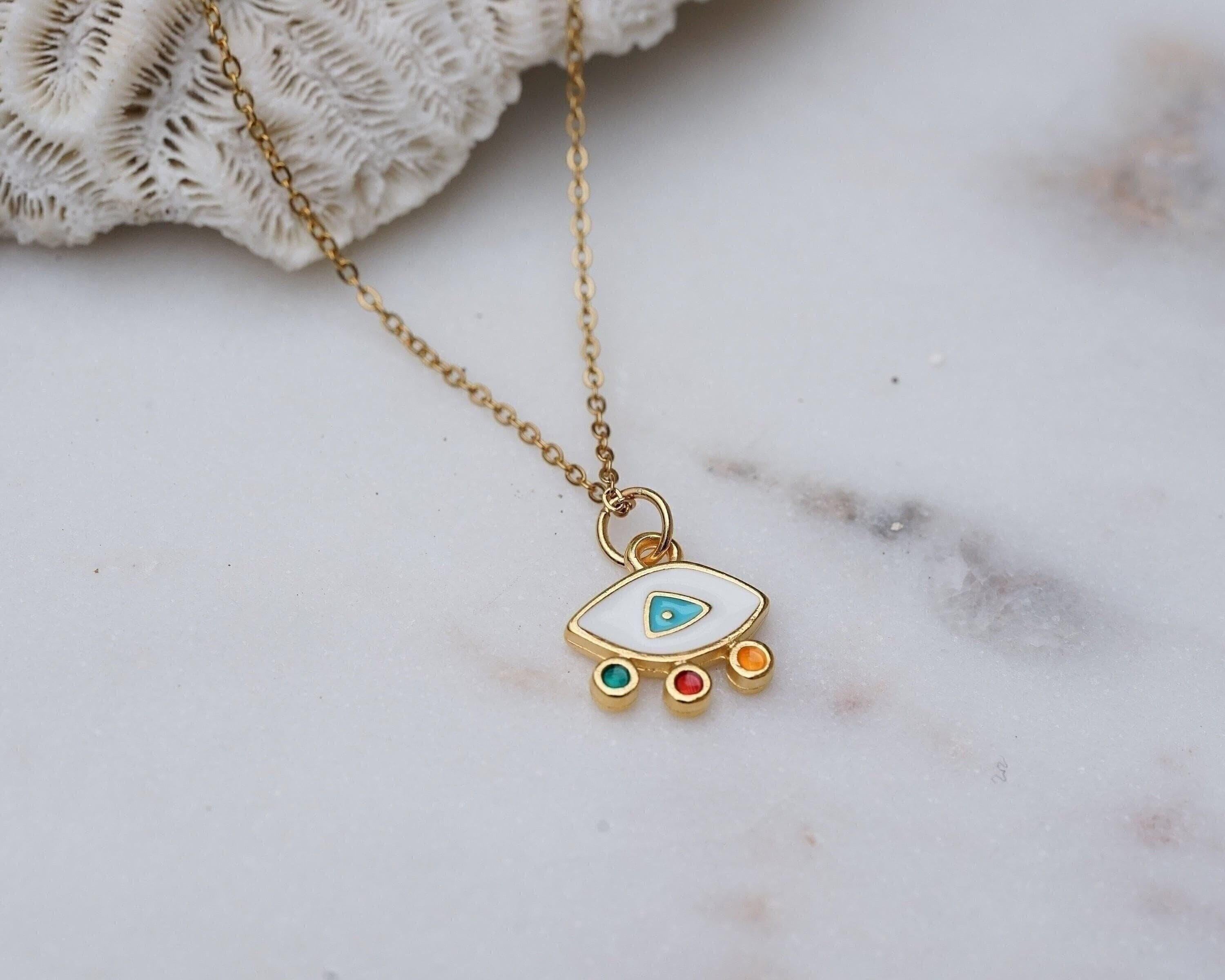 Elevate your everyday style with our stunning Mini Gold Evil Eye Necklace, a modern and vibrant piece that effortlessly combines beauty and meaning. Adorned with colorful enamel against a delicate stainless steel chain, this necklace is not just an accessory—it's a statement of protection and positivity. Perfect for layering with your favorite chains or wearing solo, its unique charm shines in any setting, making it ideal for both casual outings and special occasions.