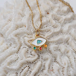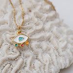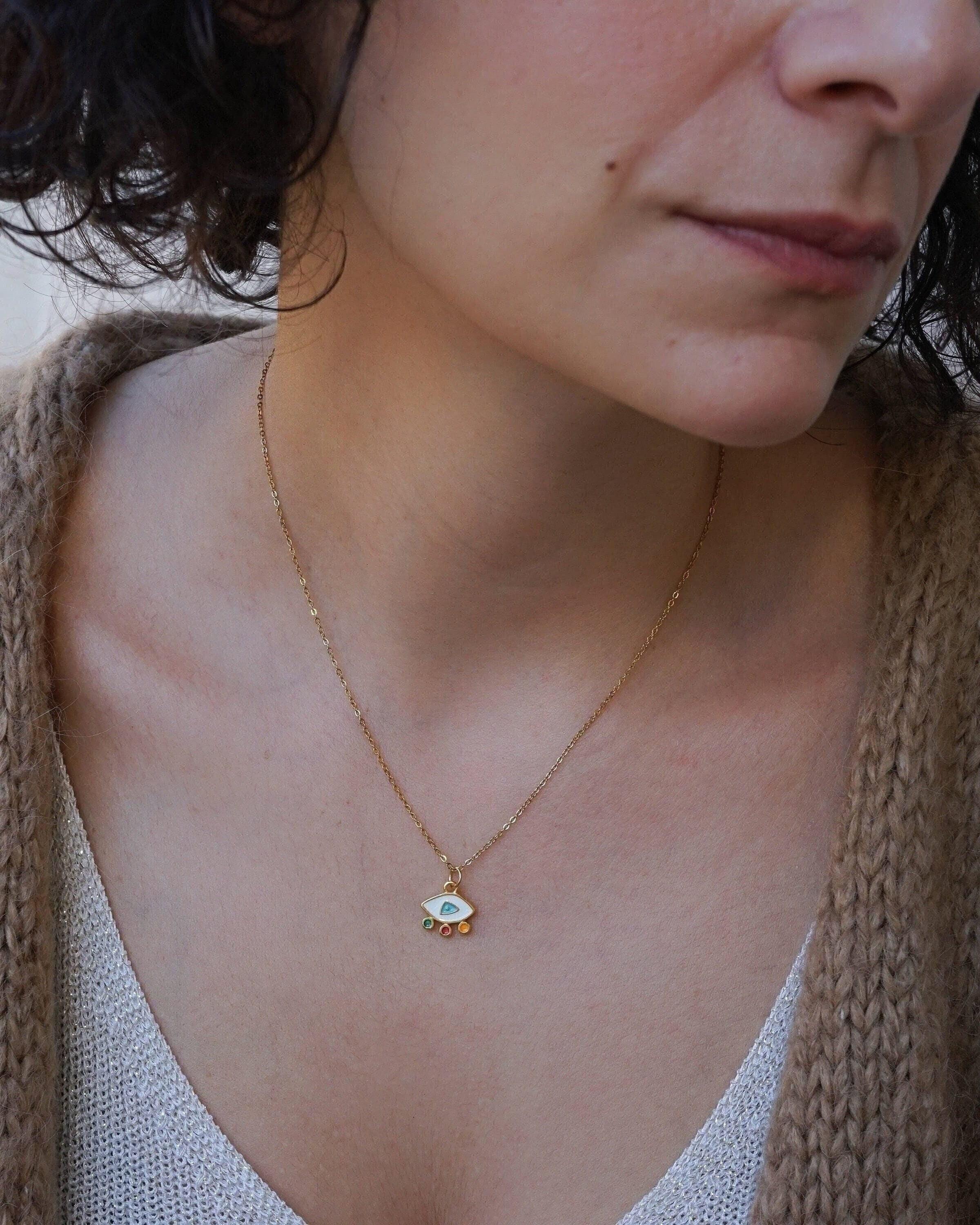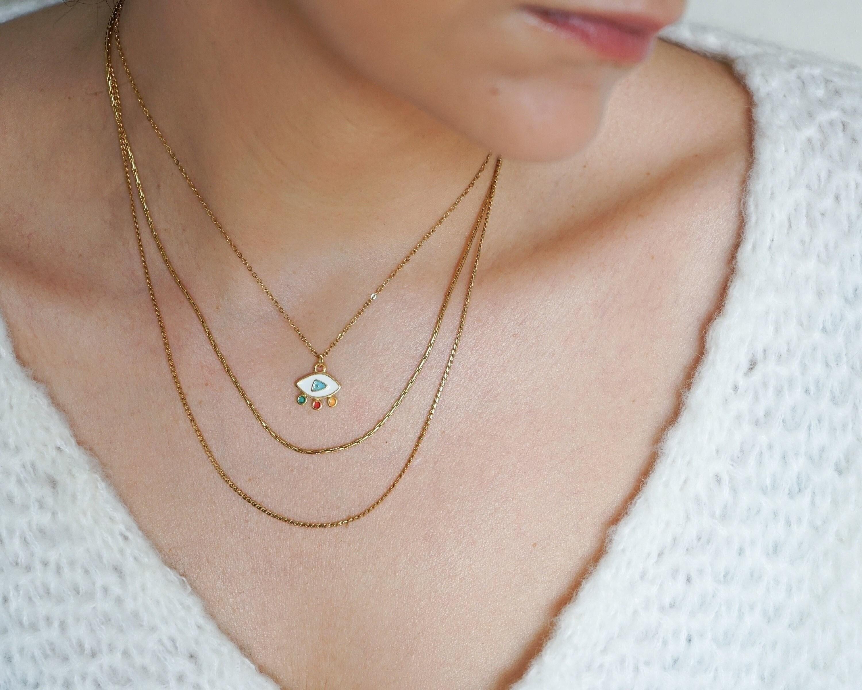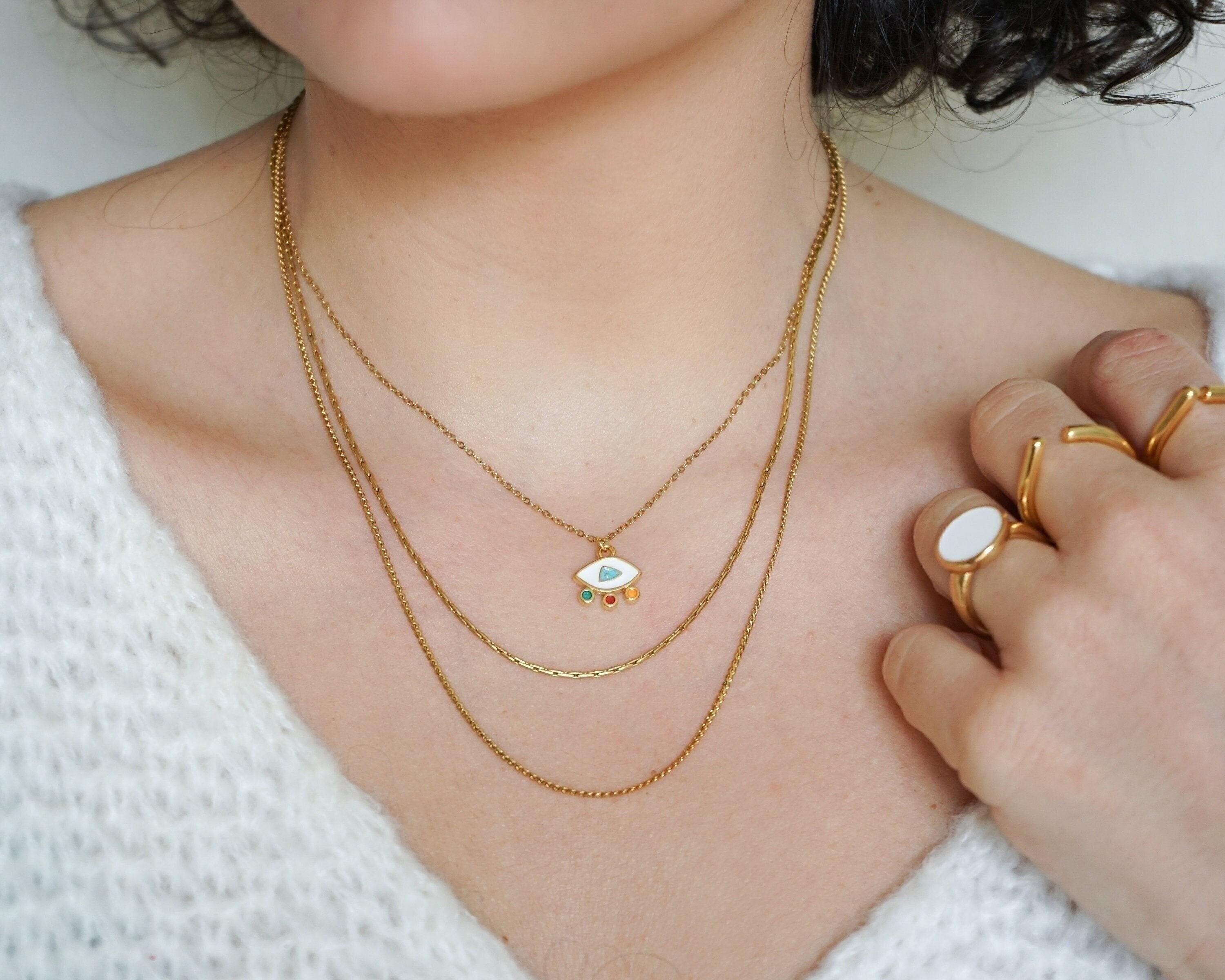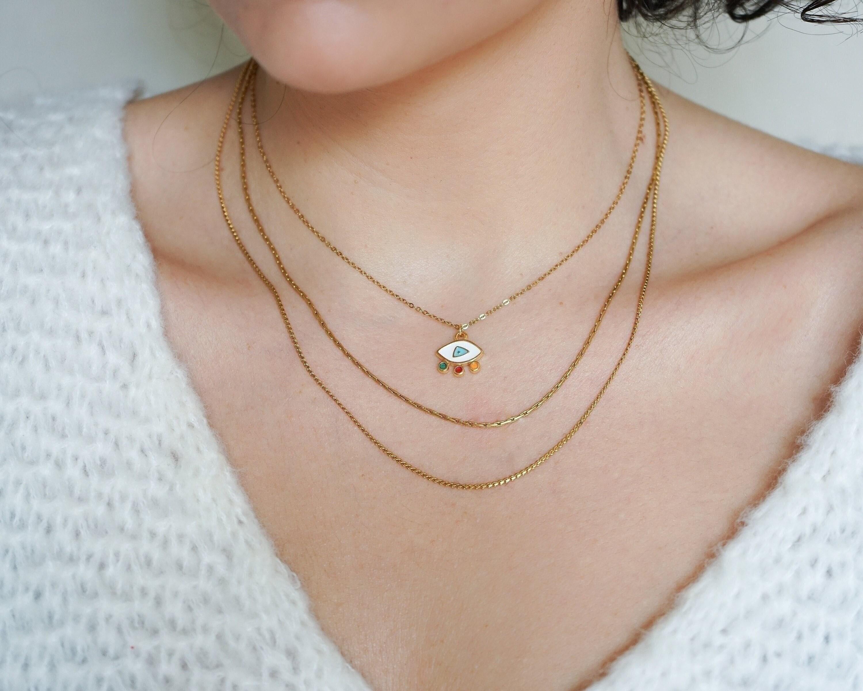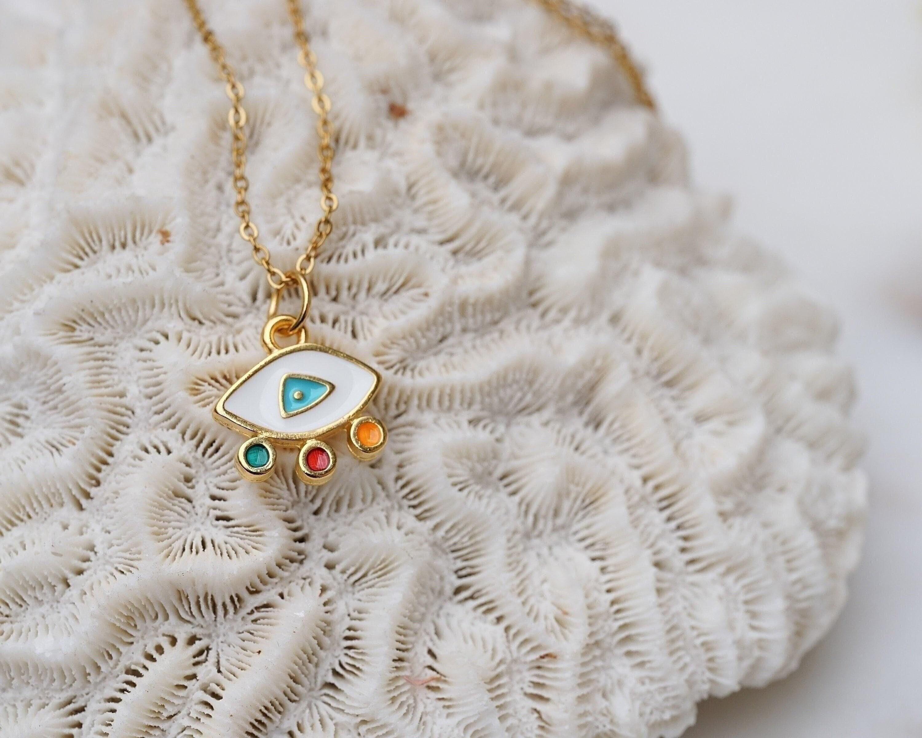 Elevate your everyday style with our stunning Mini Gold Evil Eye Necklace, a modern and vibrant piece that effortlessly combines beauty and meaning. Adorned with colorful enamel against a delicate stainless steel chain, this necklace is not just an accessory—it's a statement of protection and positivity. Perfect for layering with your favorite chains or wearing solo, its unique charm shines in any setting, making it ideal for both casual outings and special occasions.