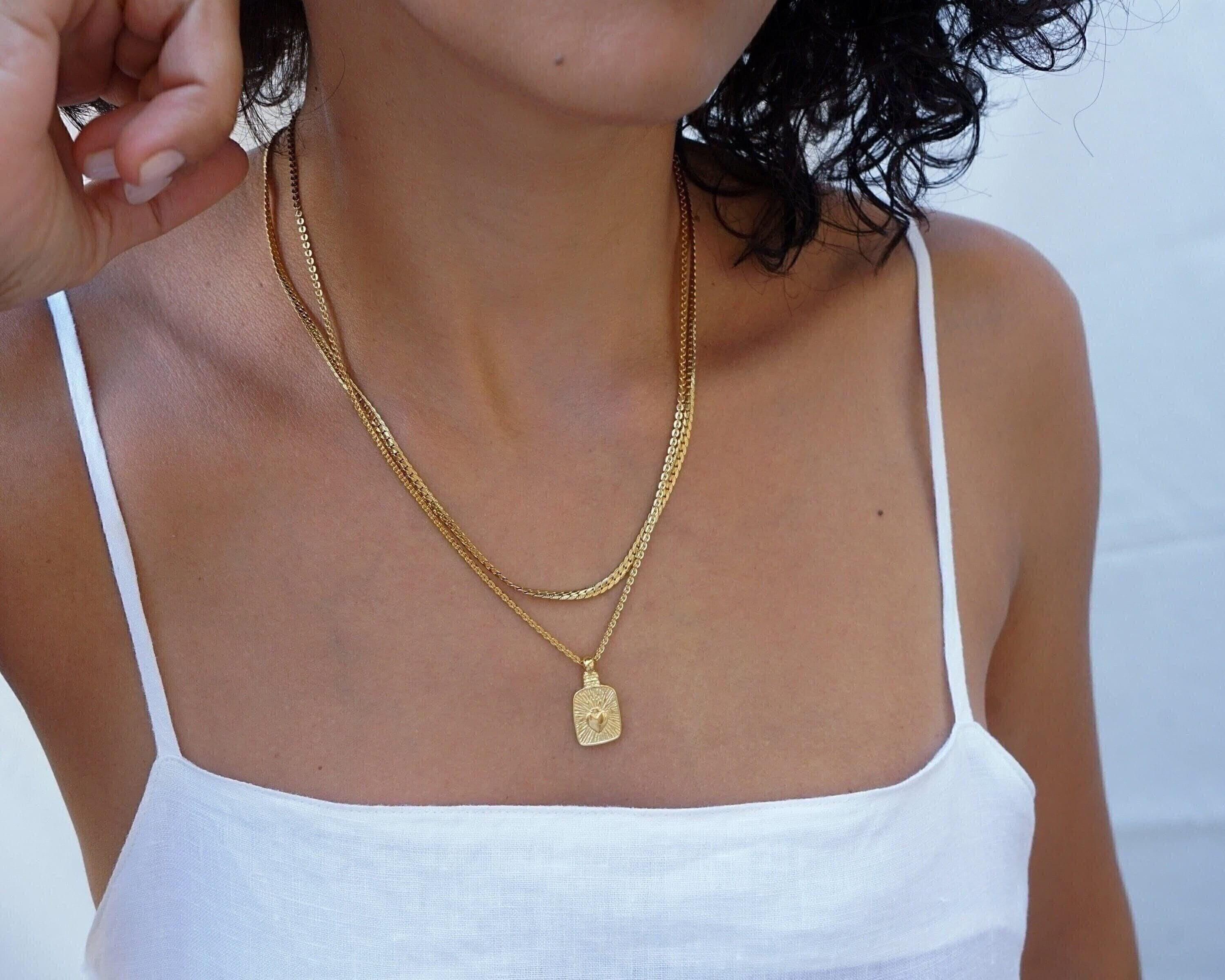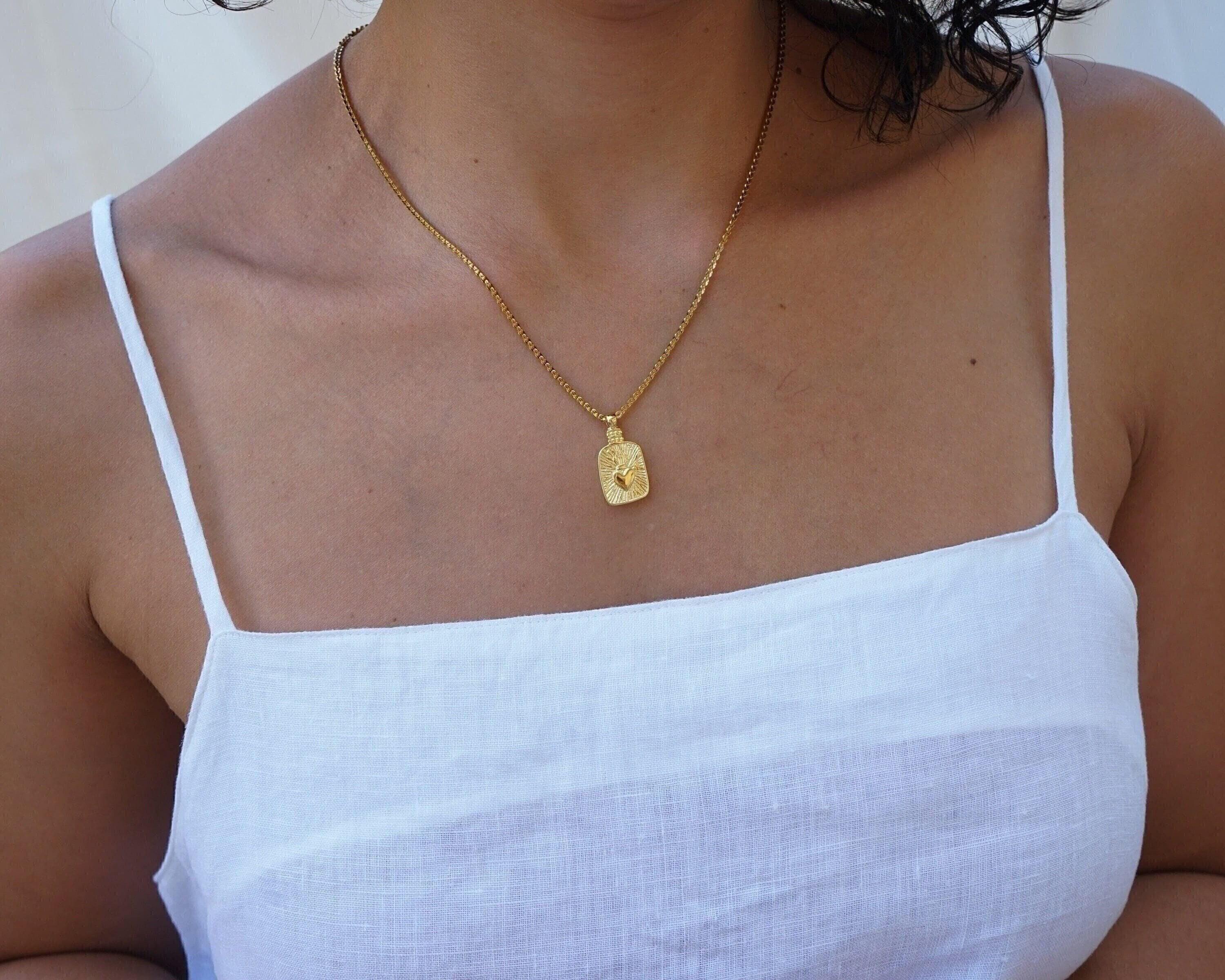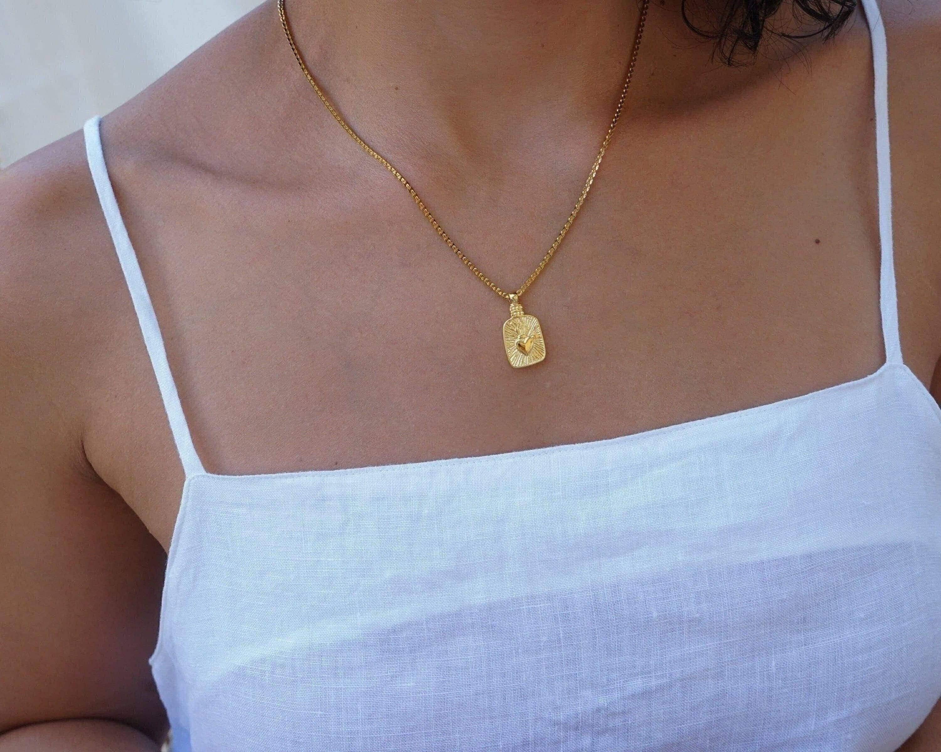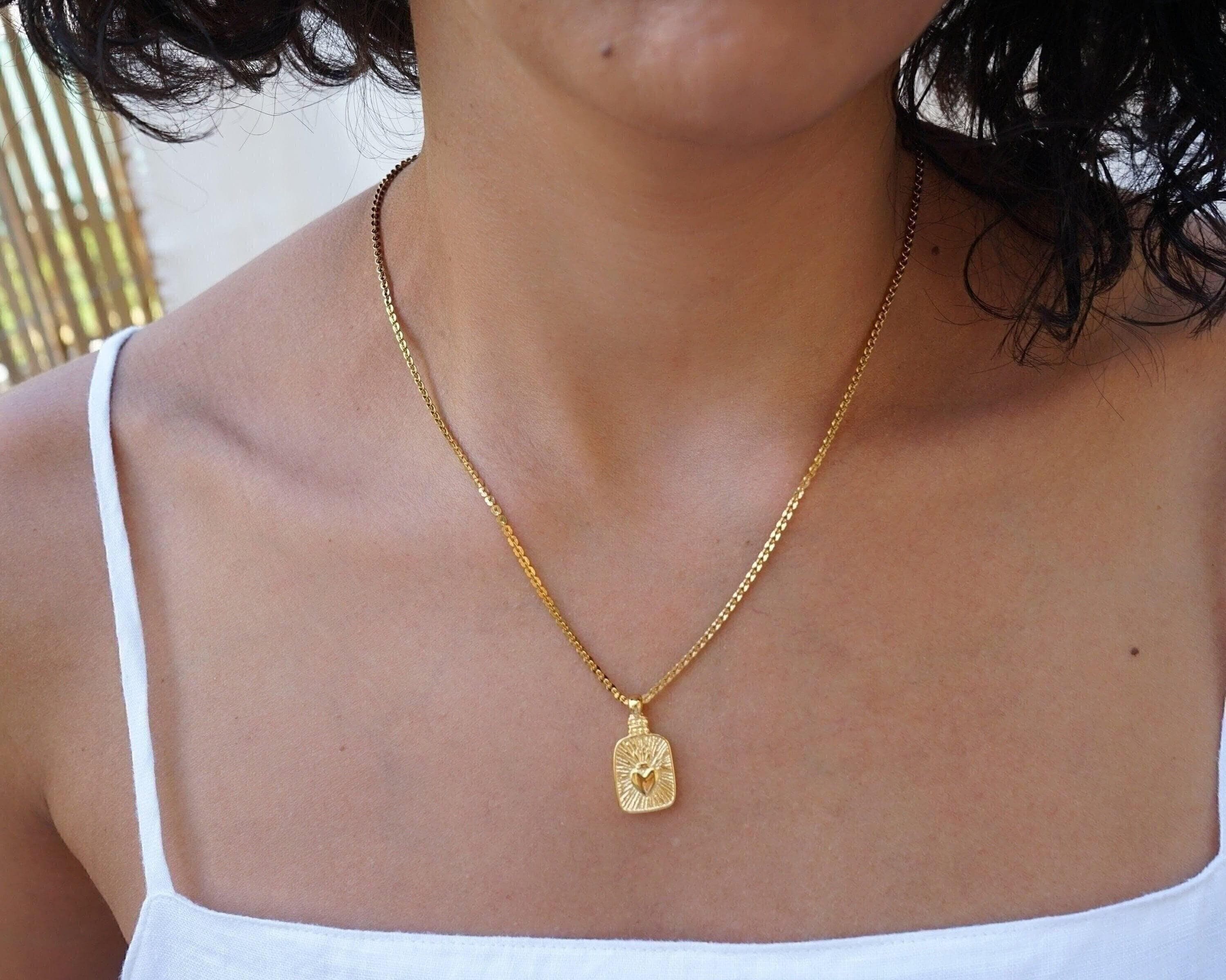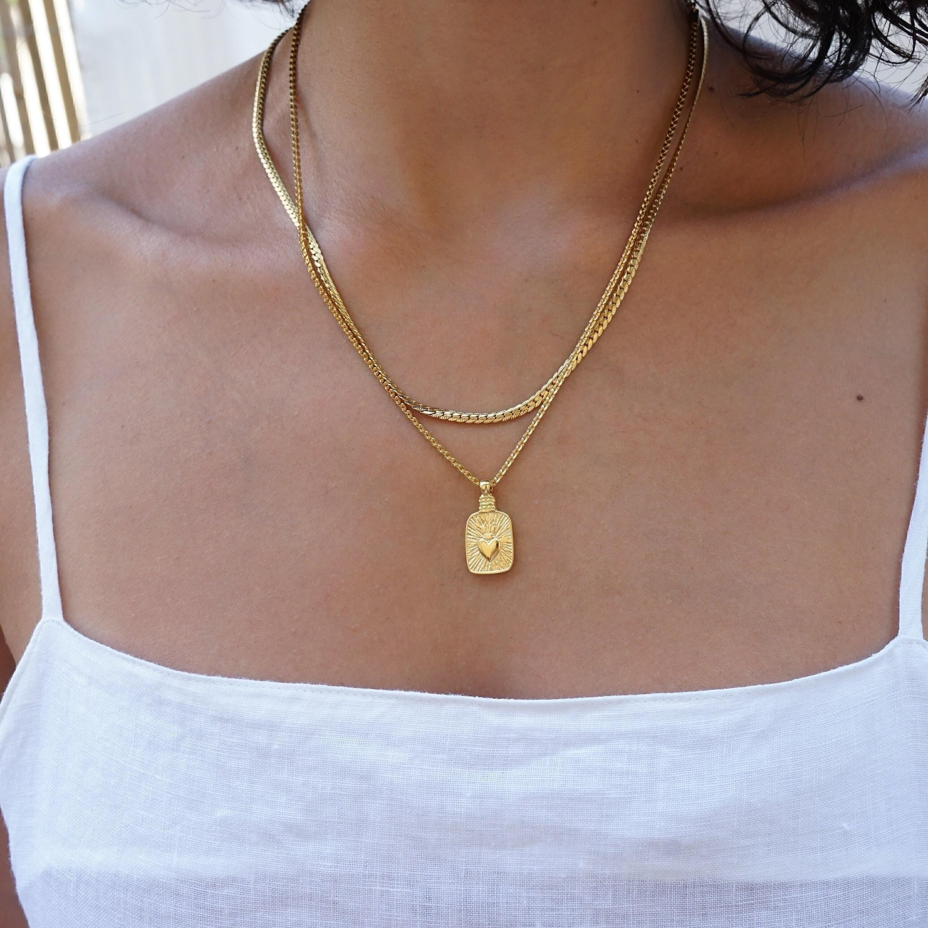 Discover this distinctive necklace featuring a rectangular Mexican Heart pendant, elegantly paired with a durable stainless steel sequin-crossed chain measuring 2mm. Ideal for achieving a feminine aesthetic, this heart-shaped jewelry serves as a timeless symbol of love, making it a thoughtful gift for special occasions. Explore our collection to find the perfect piece, whether it's a necklace or bracelet, for your loved ones. Crafted from high-quality materials, this jewelry maintains its beauty and does not wear off over time.