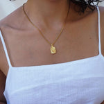 Rectangular Mexican Heart Pendant with Gold Sequin-Crossed Chain