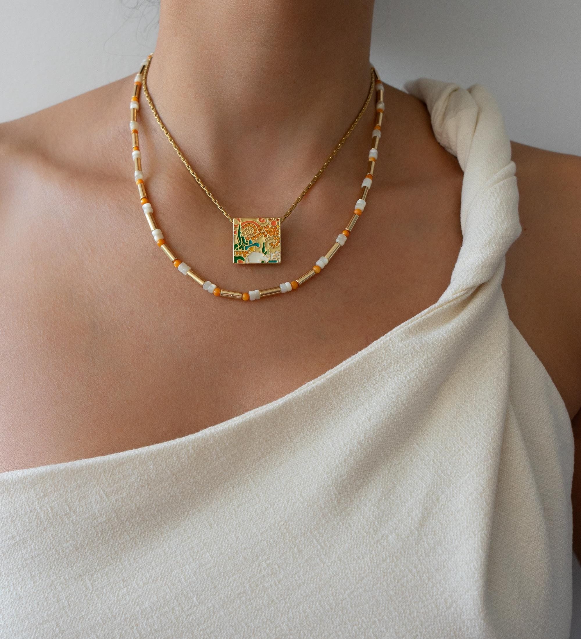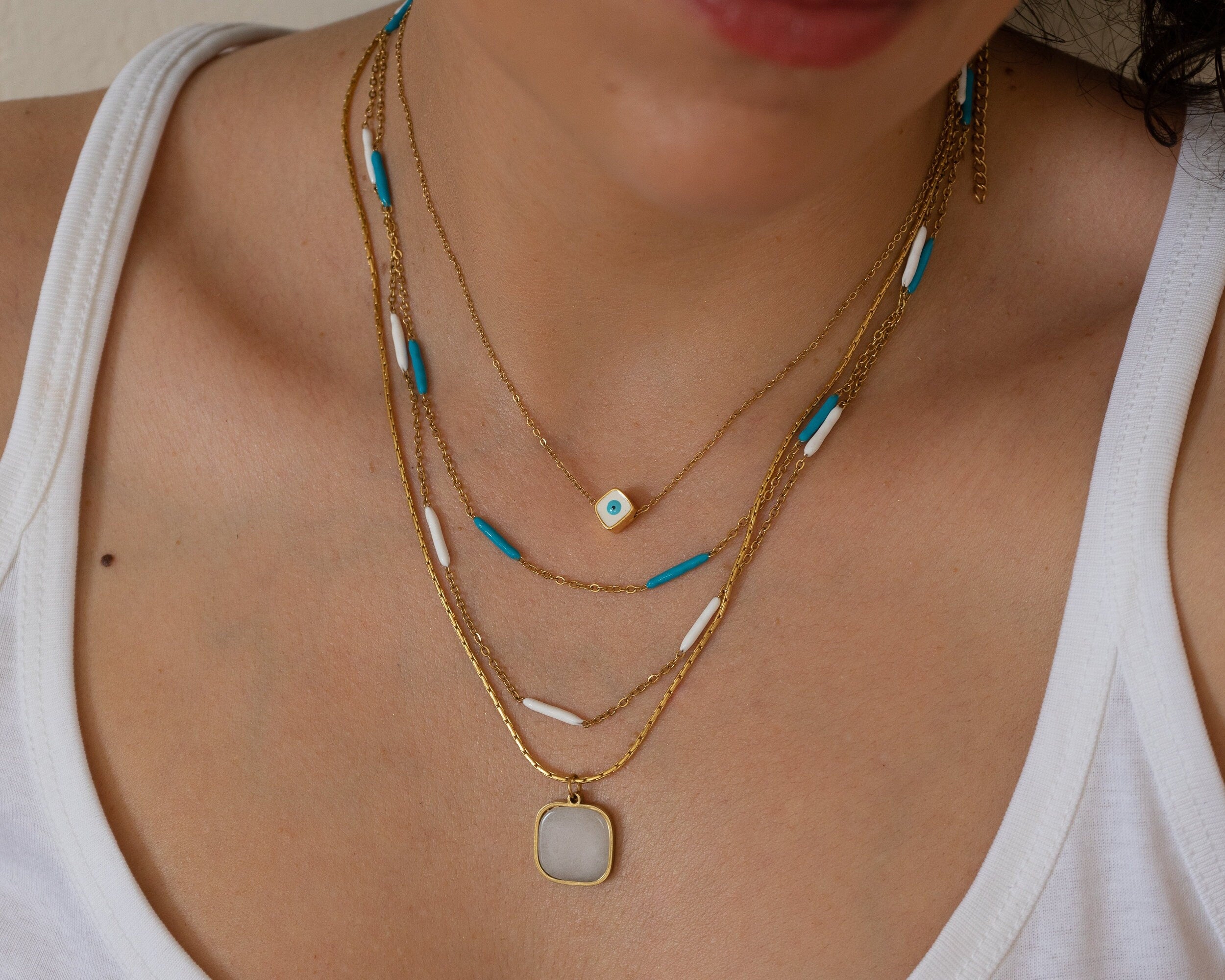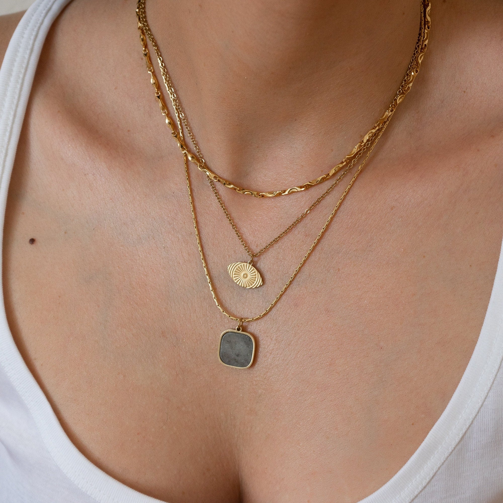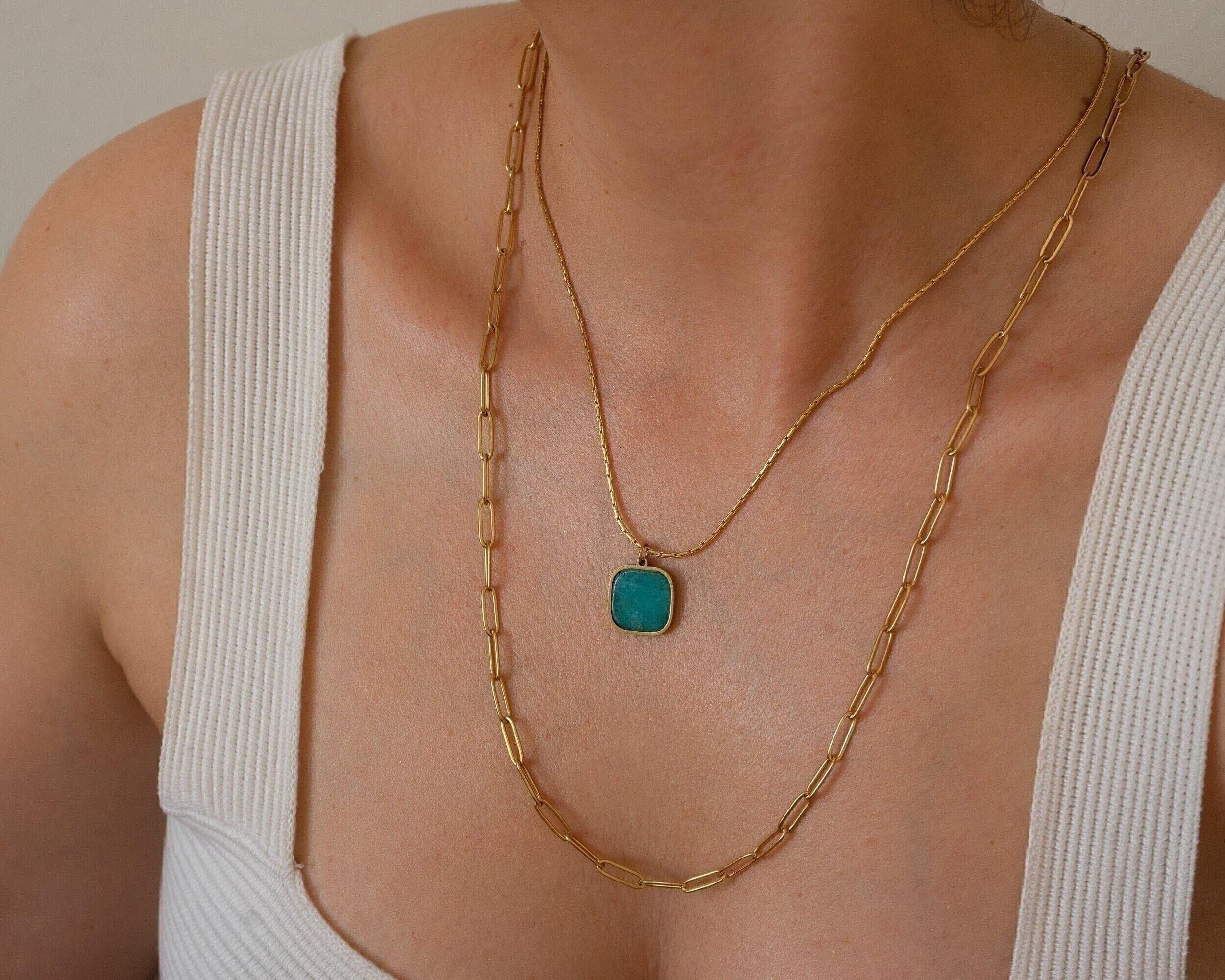 Gold Labradorite/Moonstone/Turquoise Stainless Steel Necklace