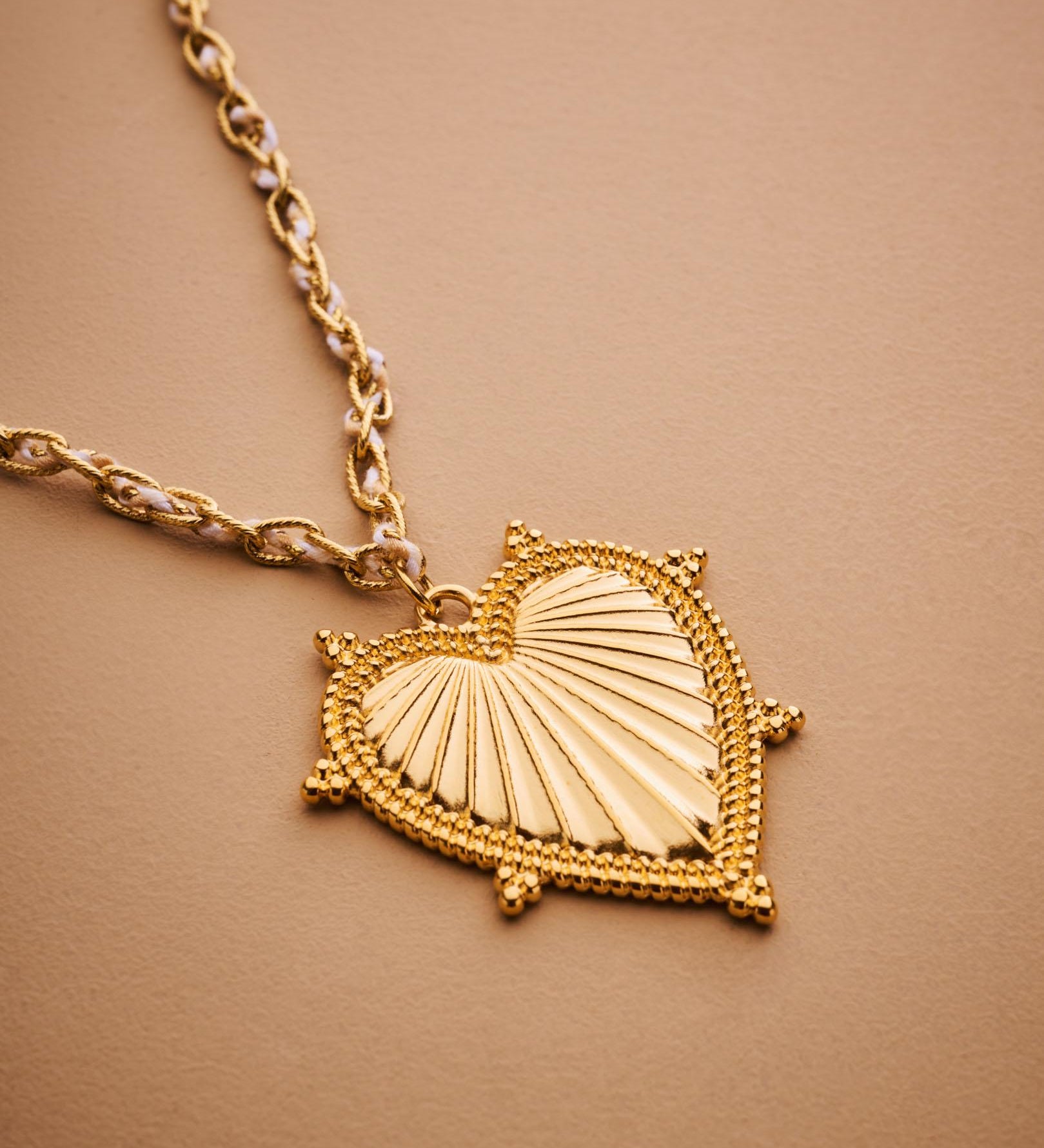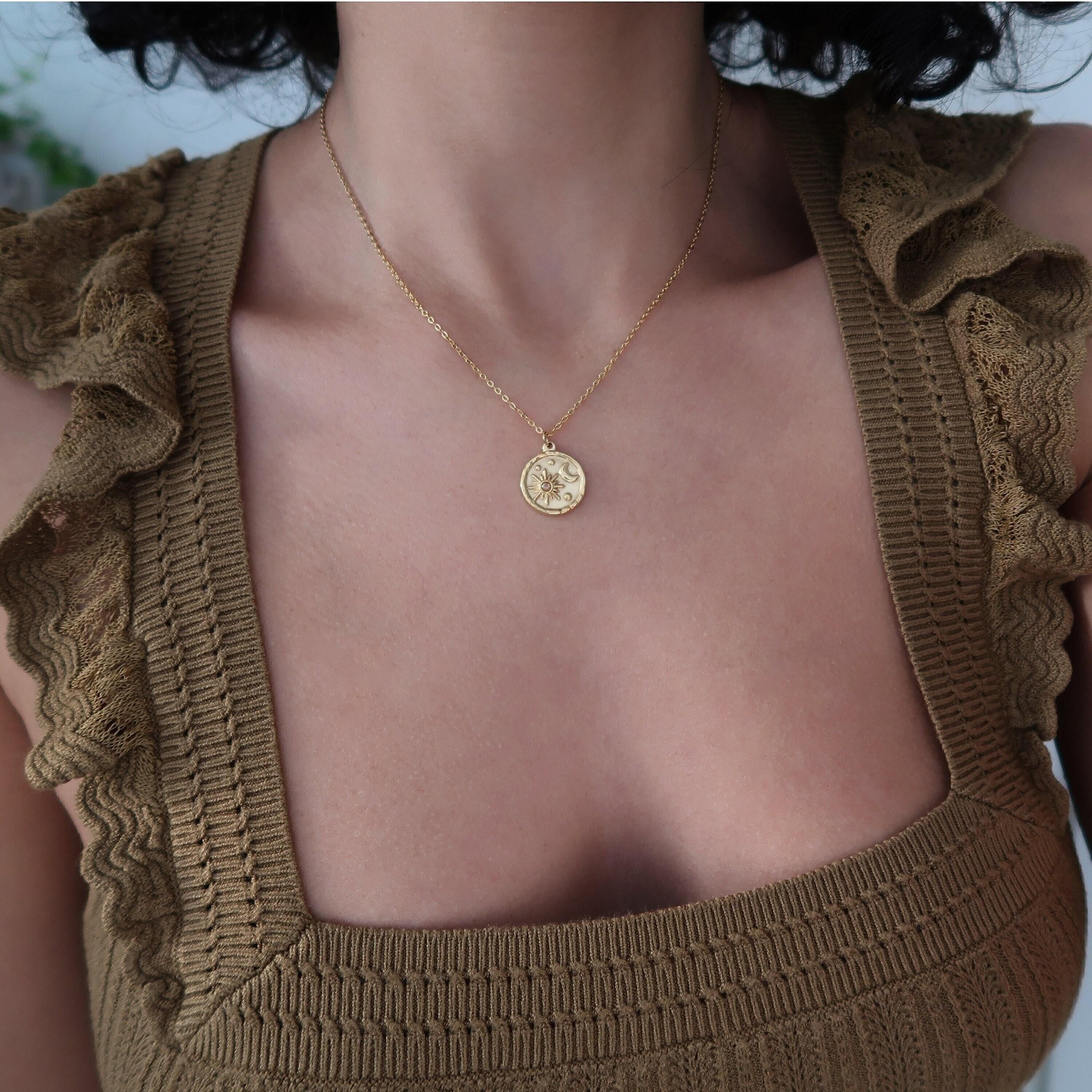 Gold Stainless Steel Sun-Moon Pendant Necklace