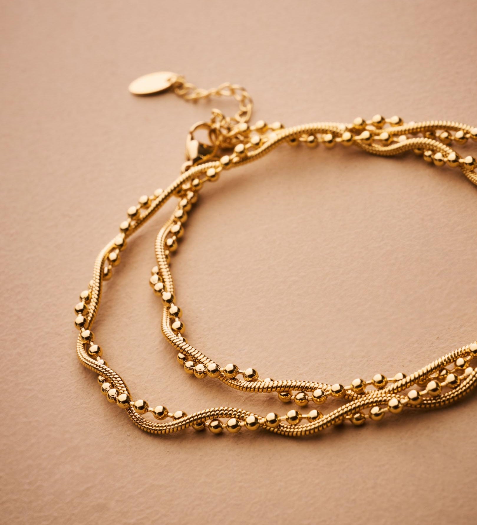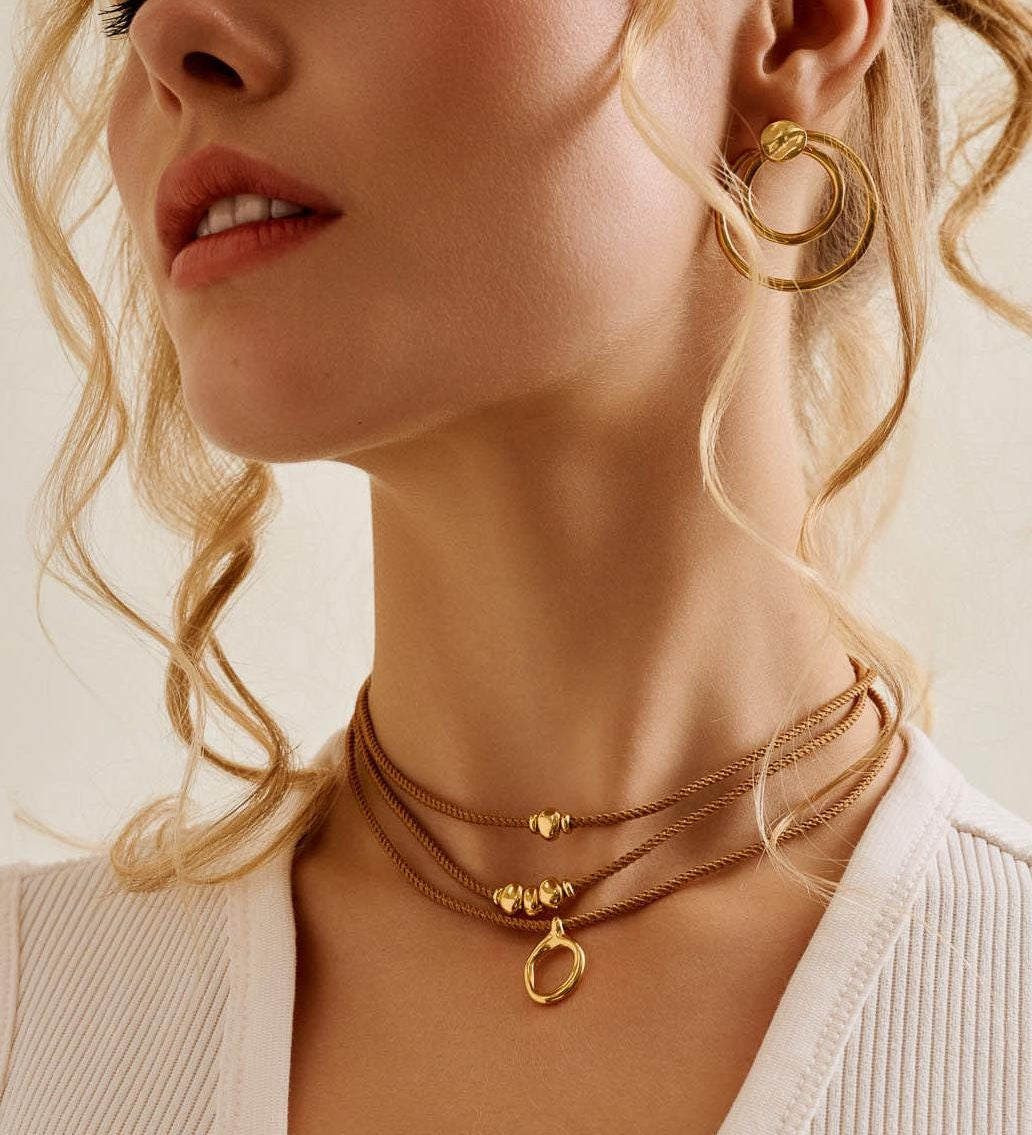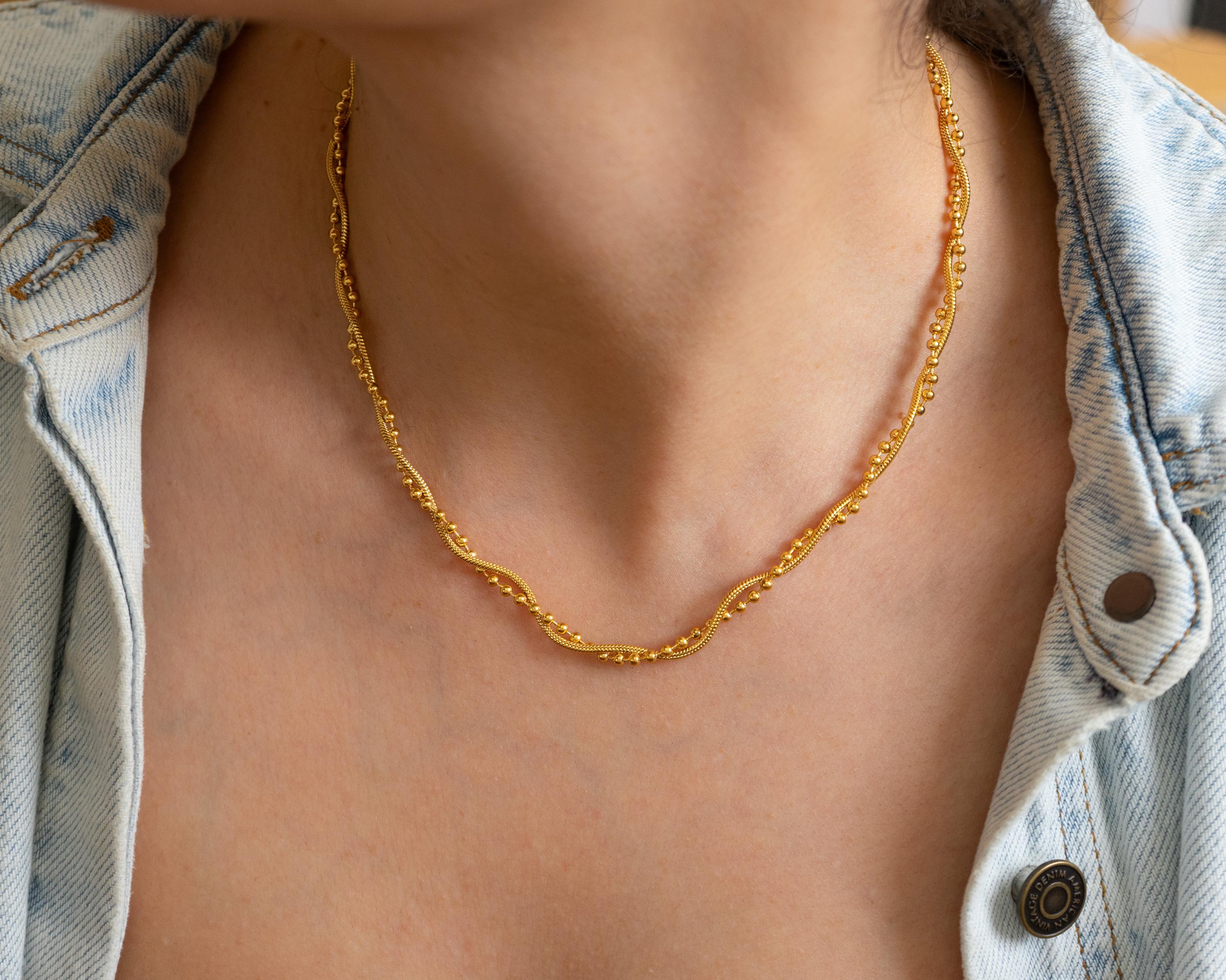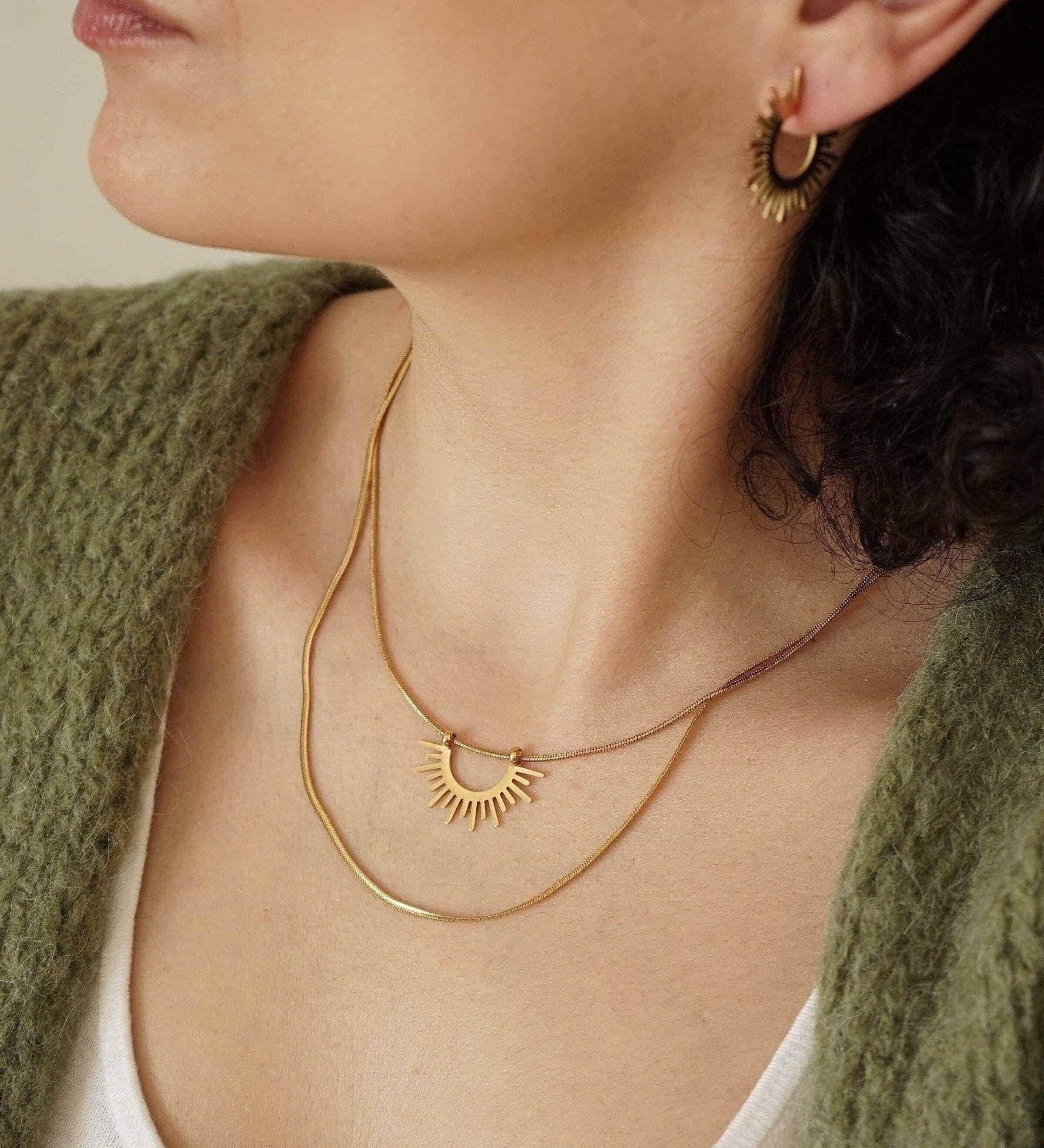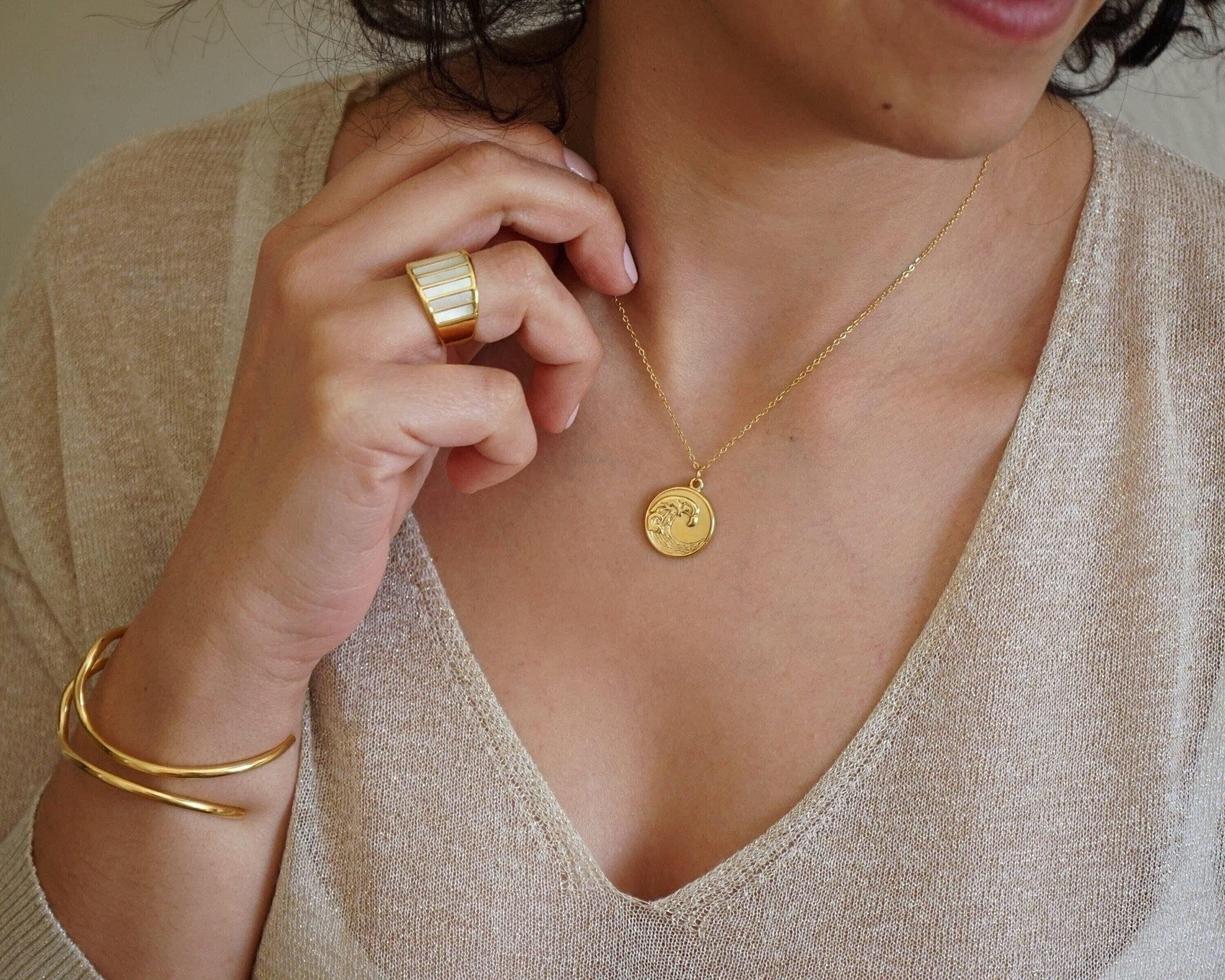 Gold Wave Pendant Necklace - 18k Gold Plated Stainless Steel Dainty Boho Layering Jewelry