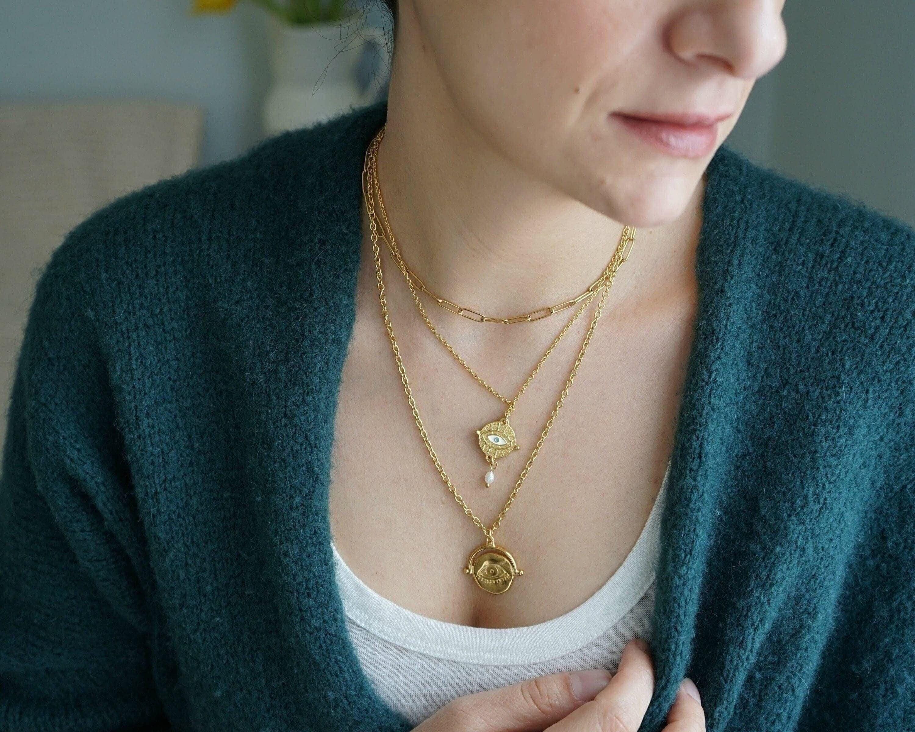 Gold Vintage-Style Evil Eye Protection Engraved Pendant