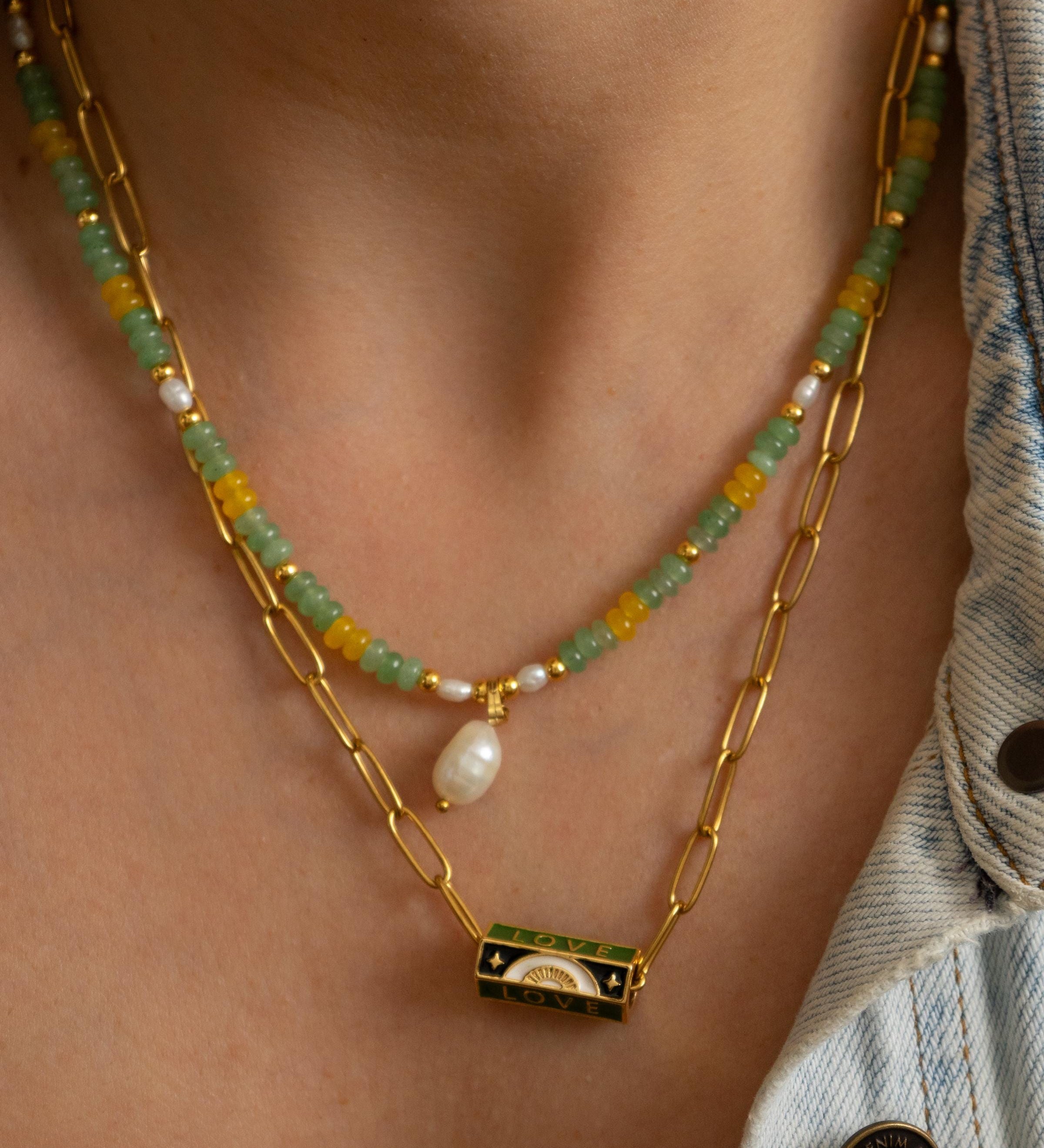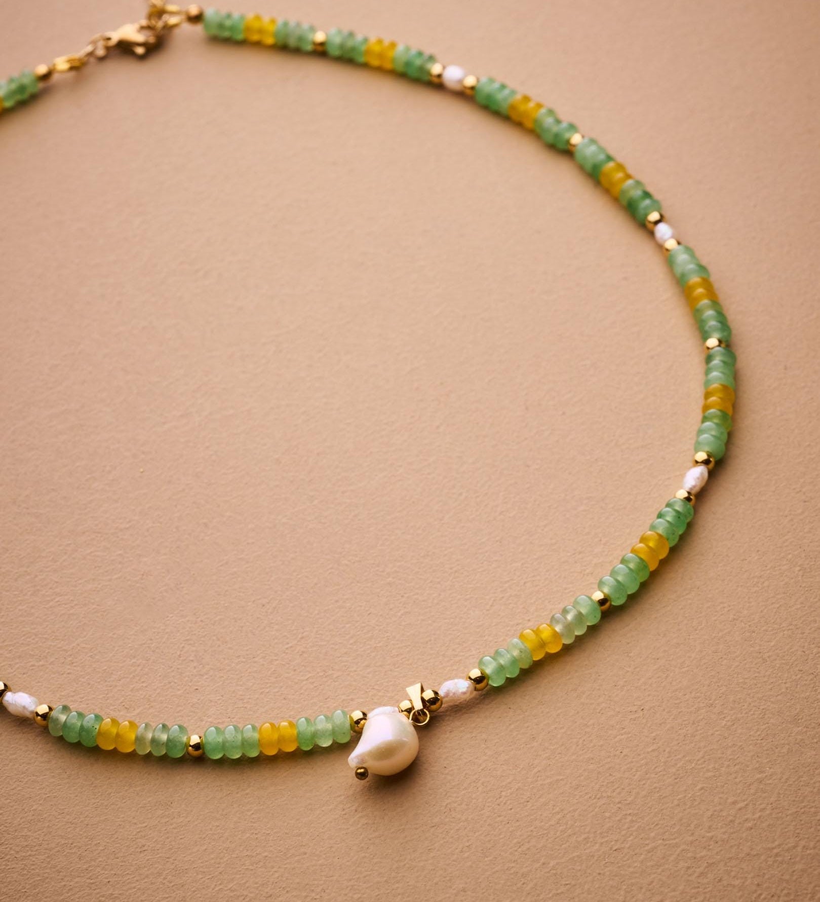 Green & Yellow Jade Beaded Necklace wt Freshwater Pearls