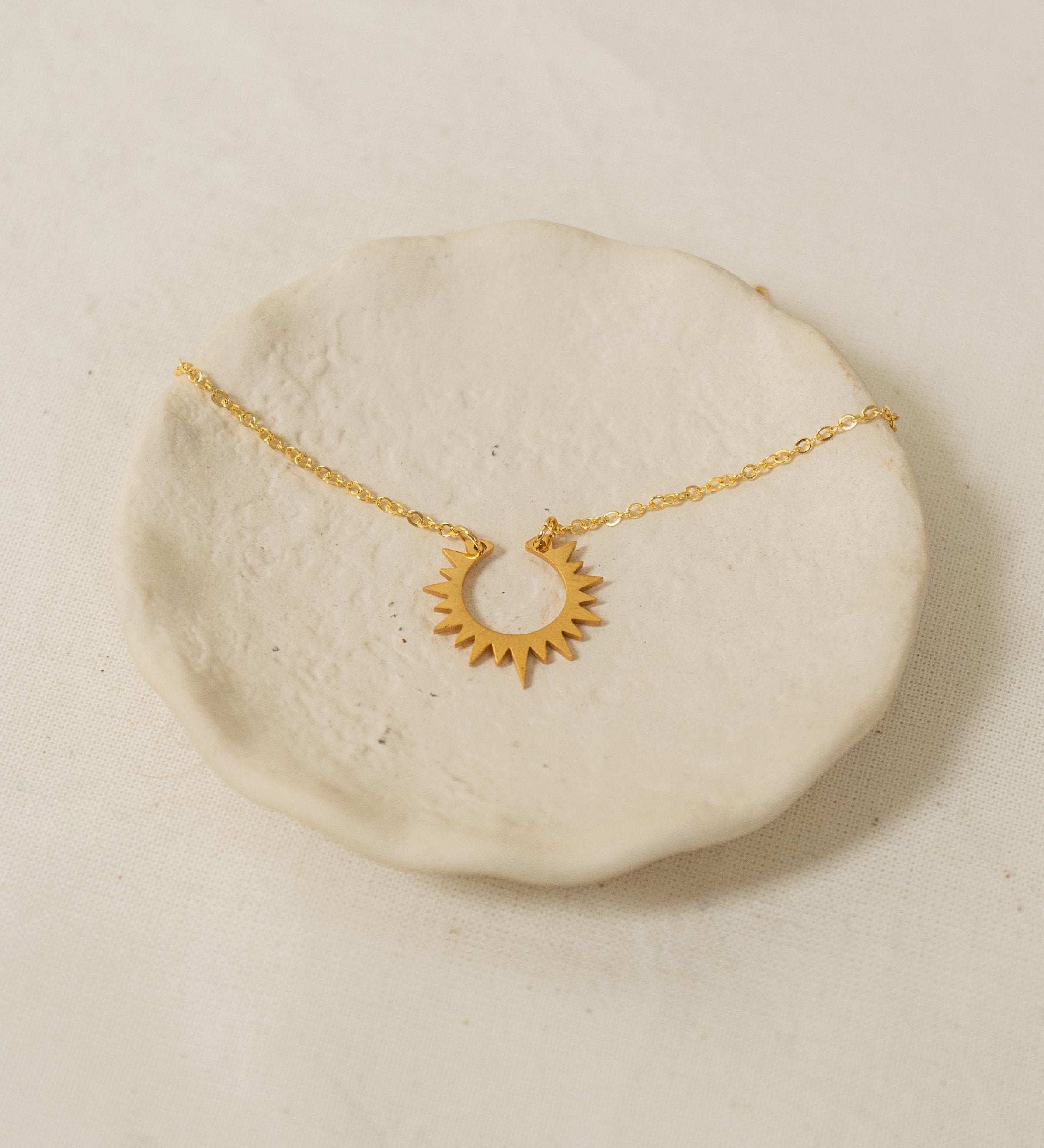 Gold Stainless Steel Sun Necklace with Turquoise Howlite Sun Pendant Necklace