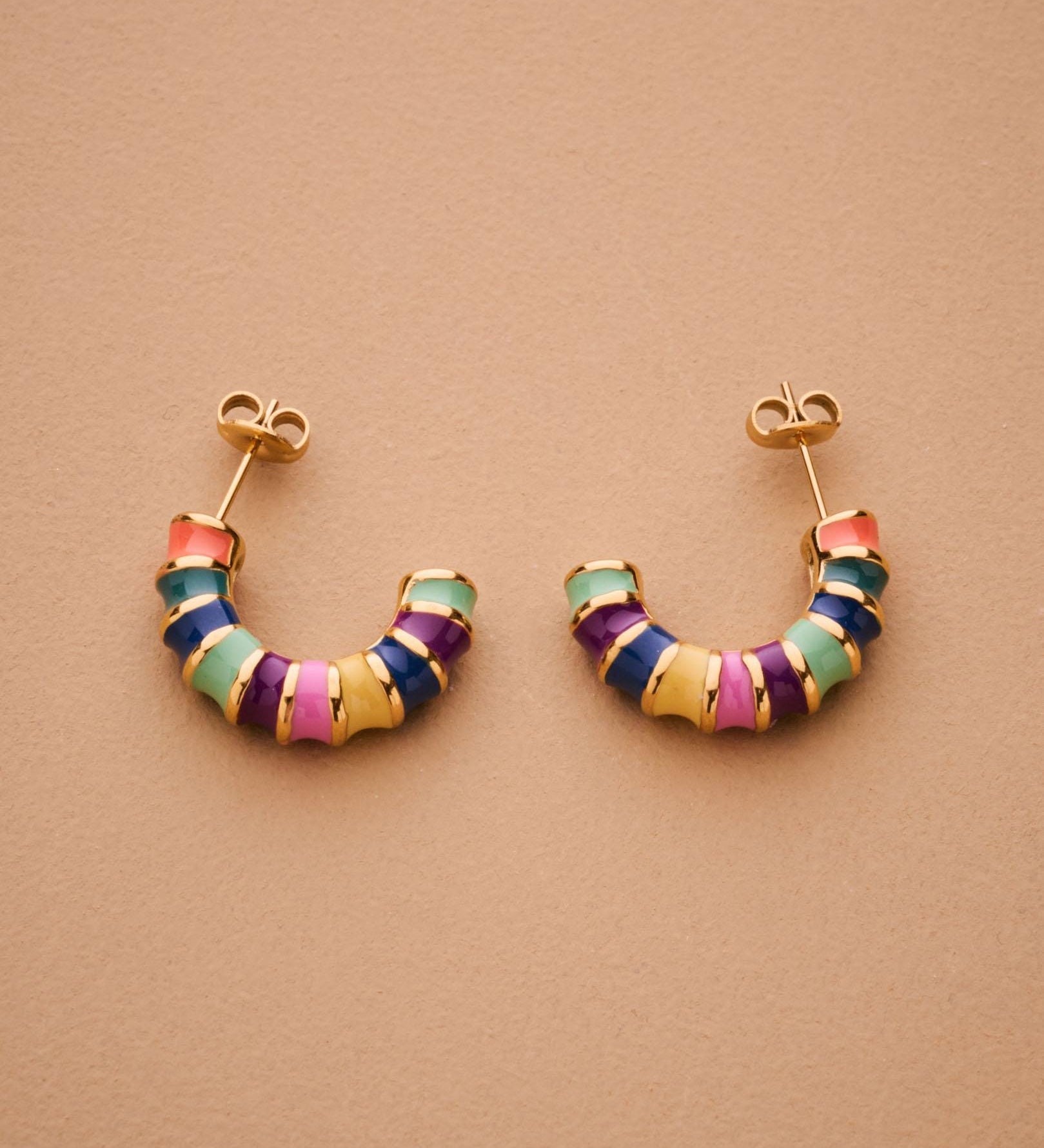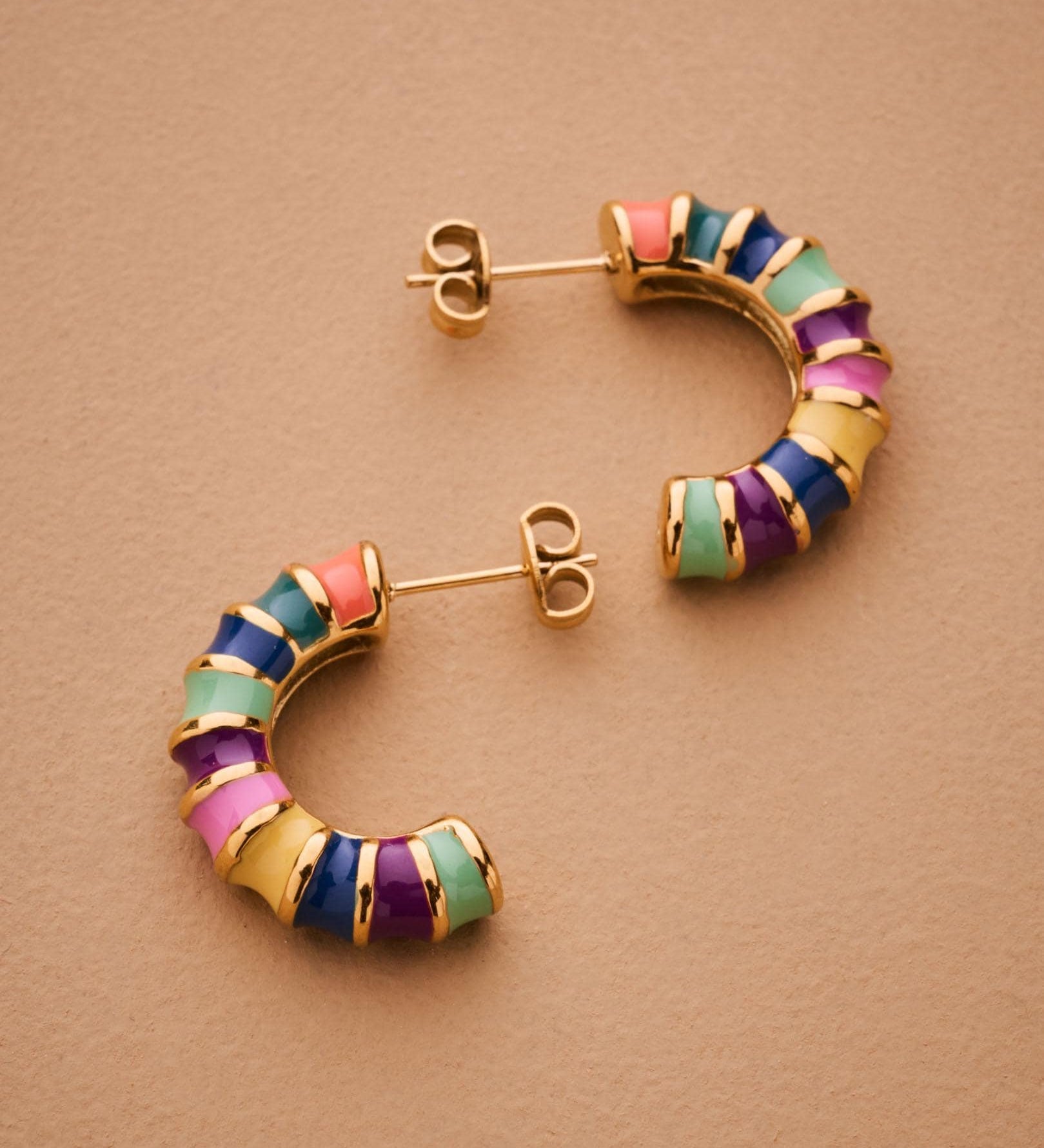 Rainbow Enamel Hoop Earrings
