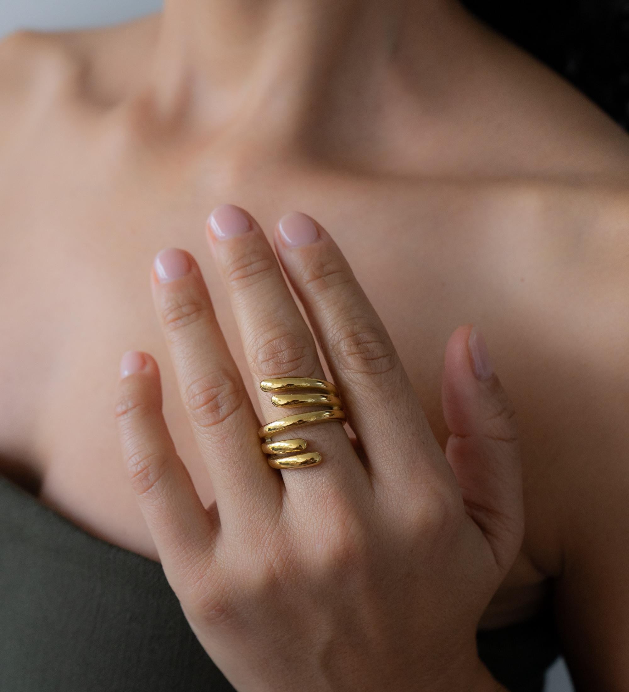 Gold Stainless Spiral Ring