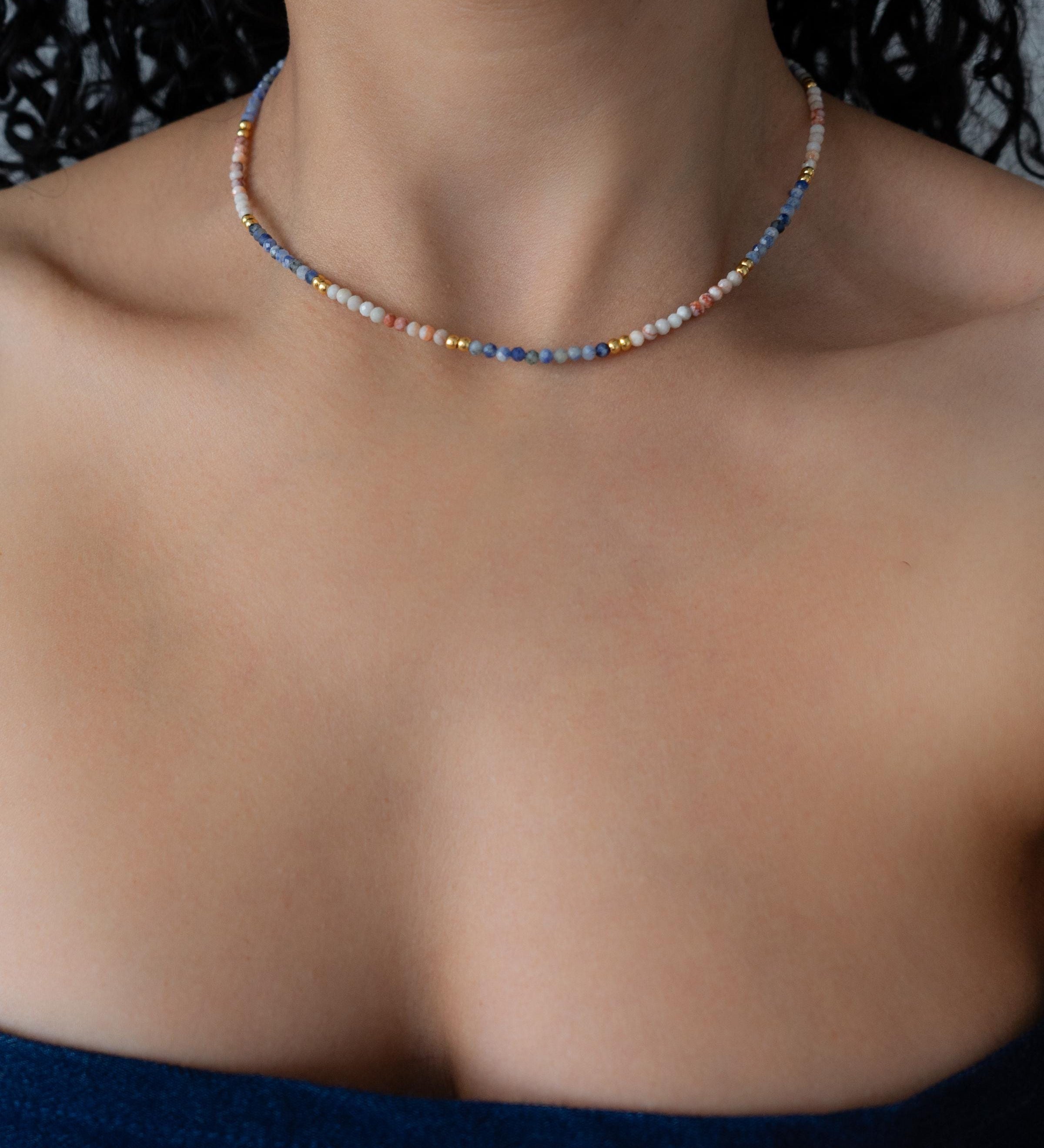 Κολιέ Με Χάντρες Σονταλίτη Σε Μπλε Και Πορτοκαλί Αποχρώσεις