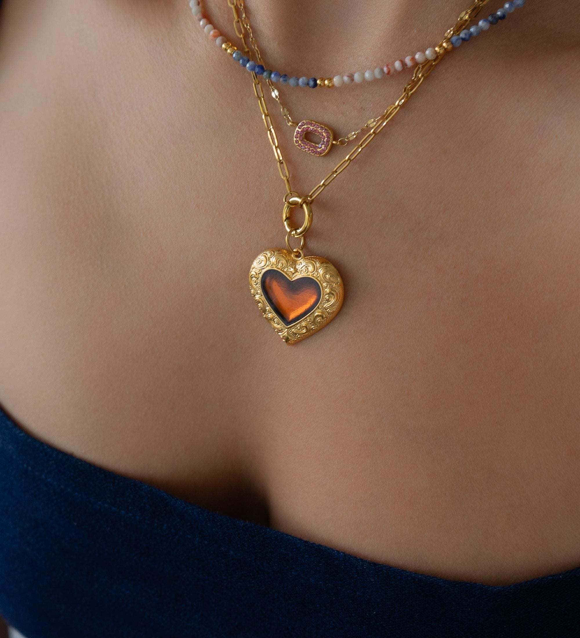 Interchangeable Gold Heart Necklace with Enamel Pendant