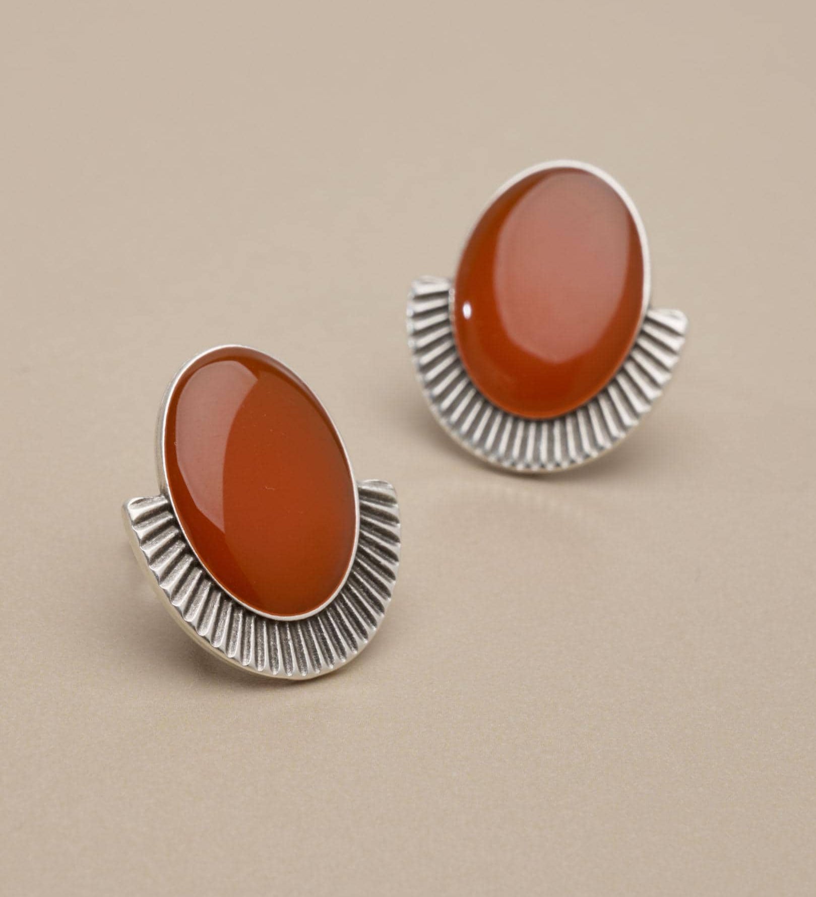 Silver Oval Enamel Stud Earrings