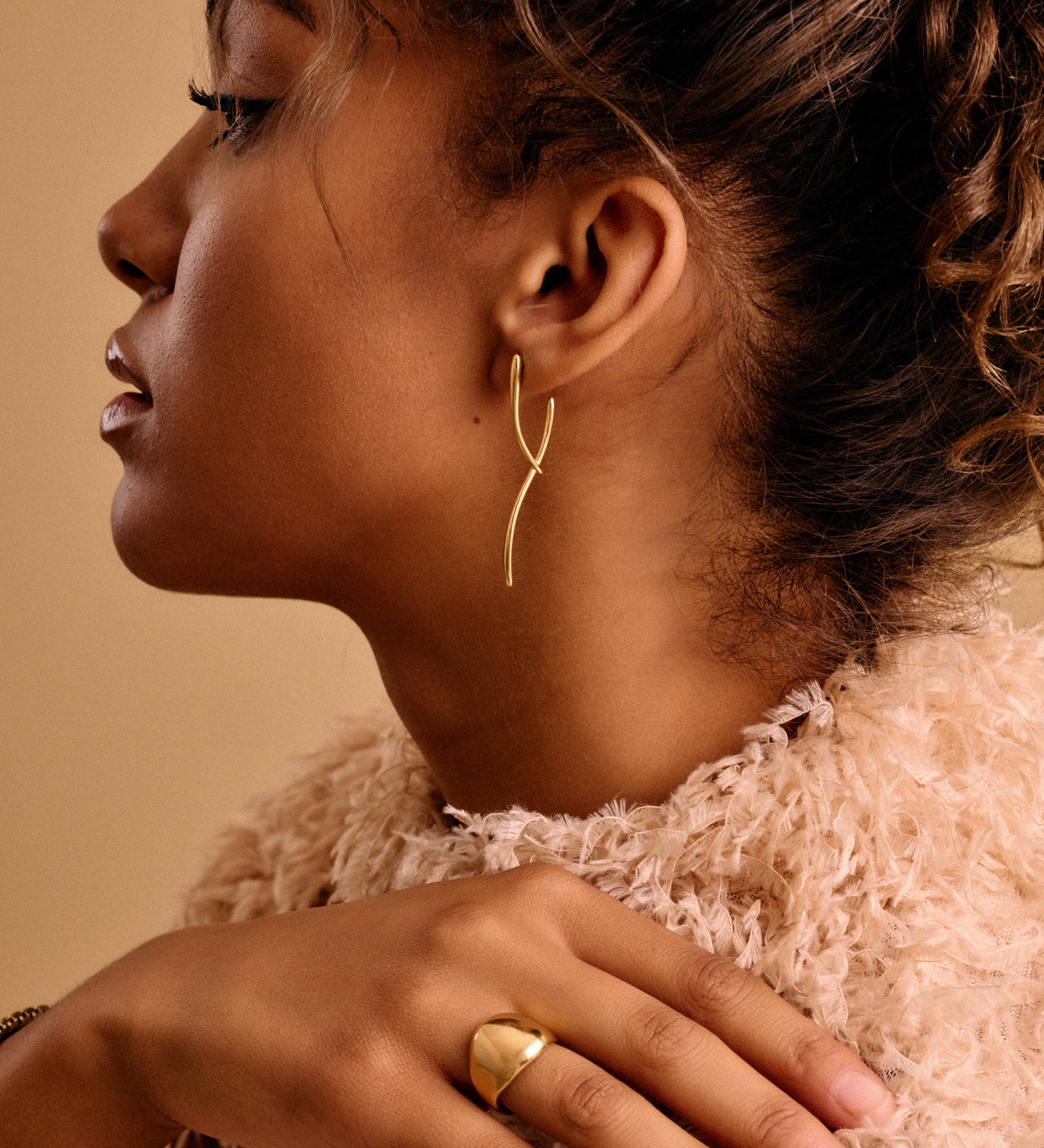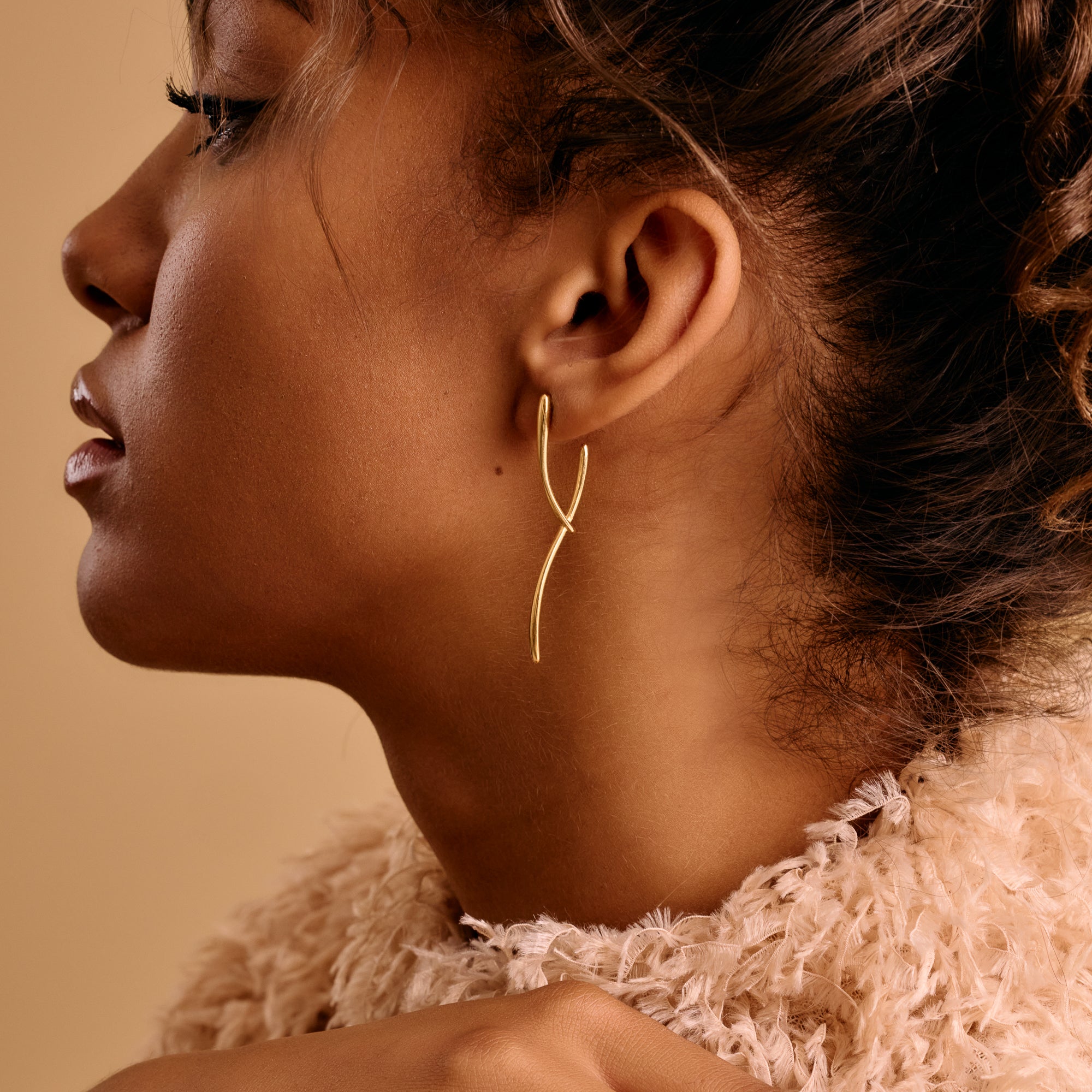 Modern Gold Long Curved Earrings