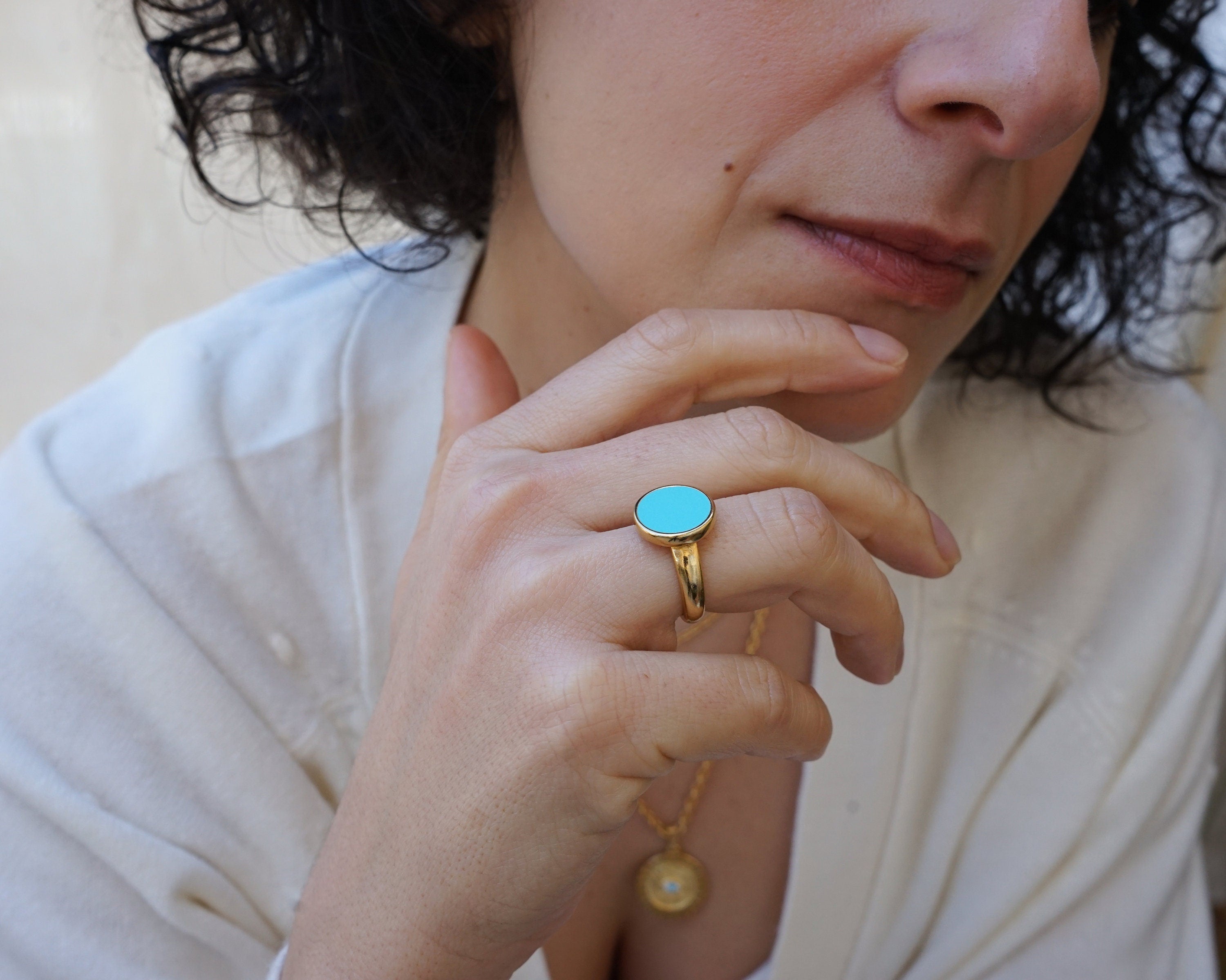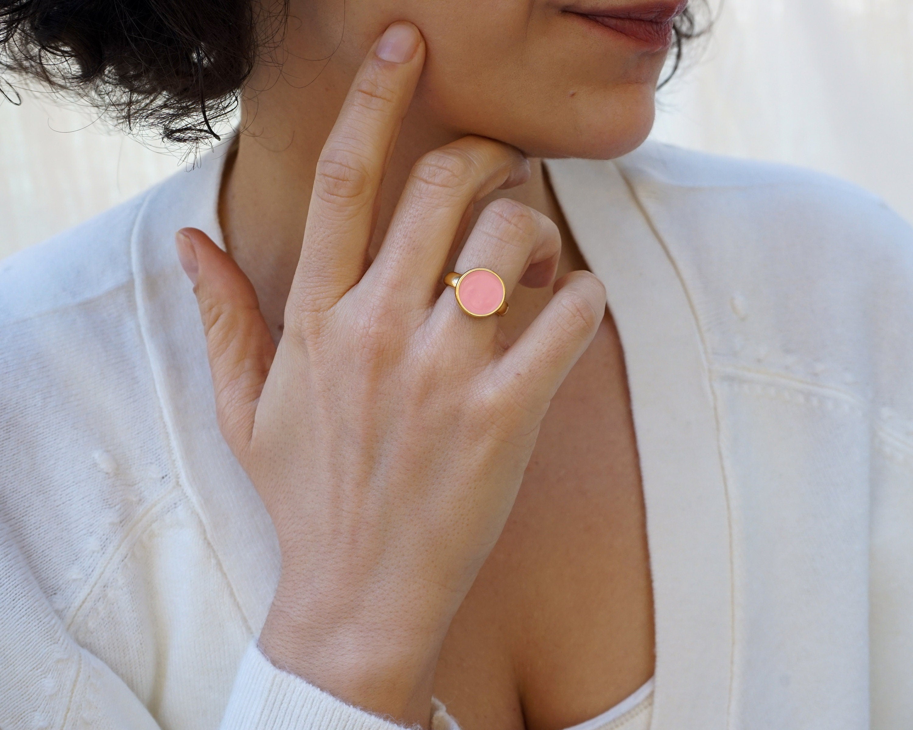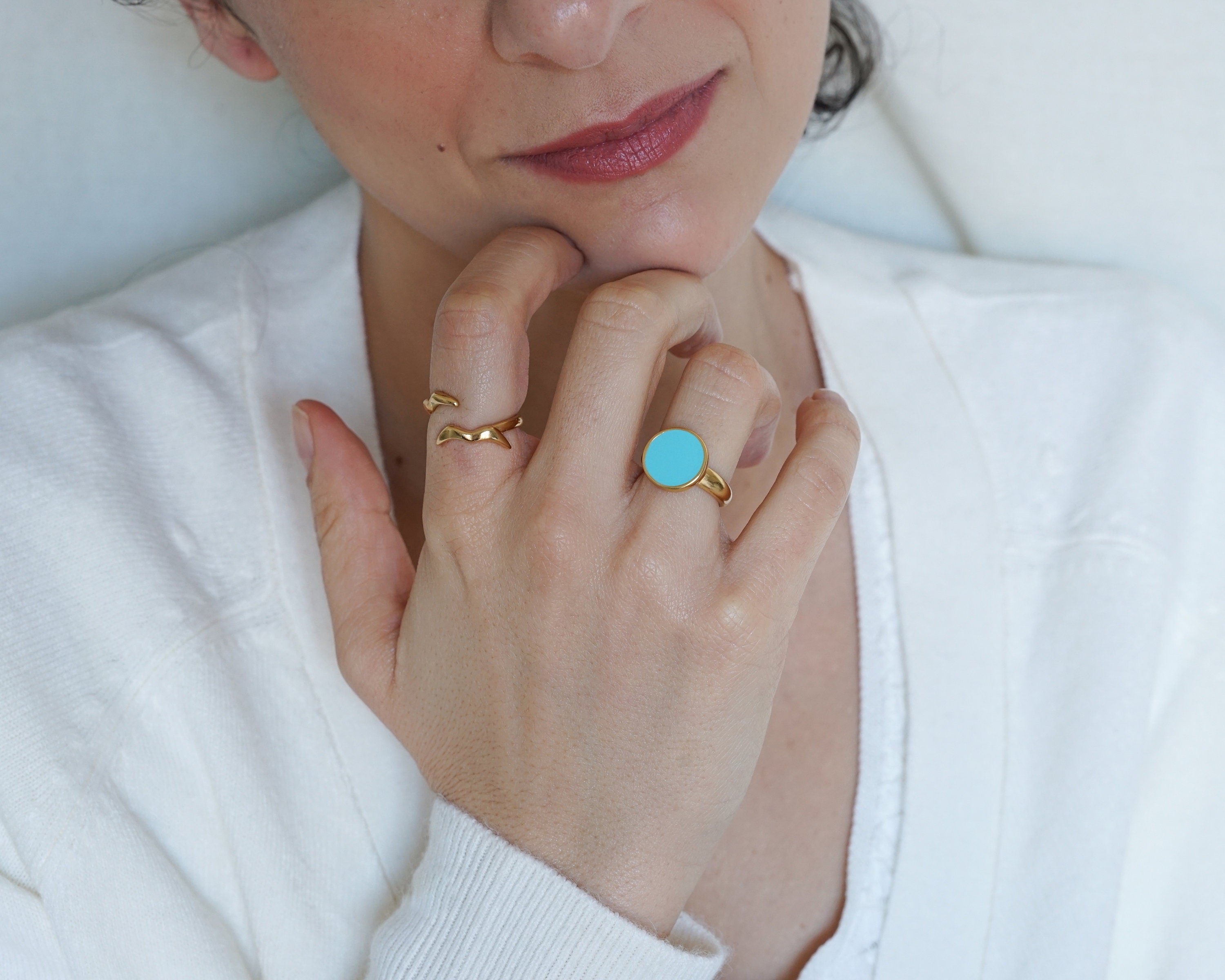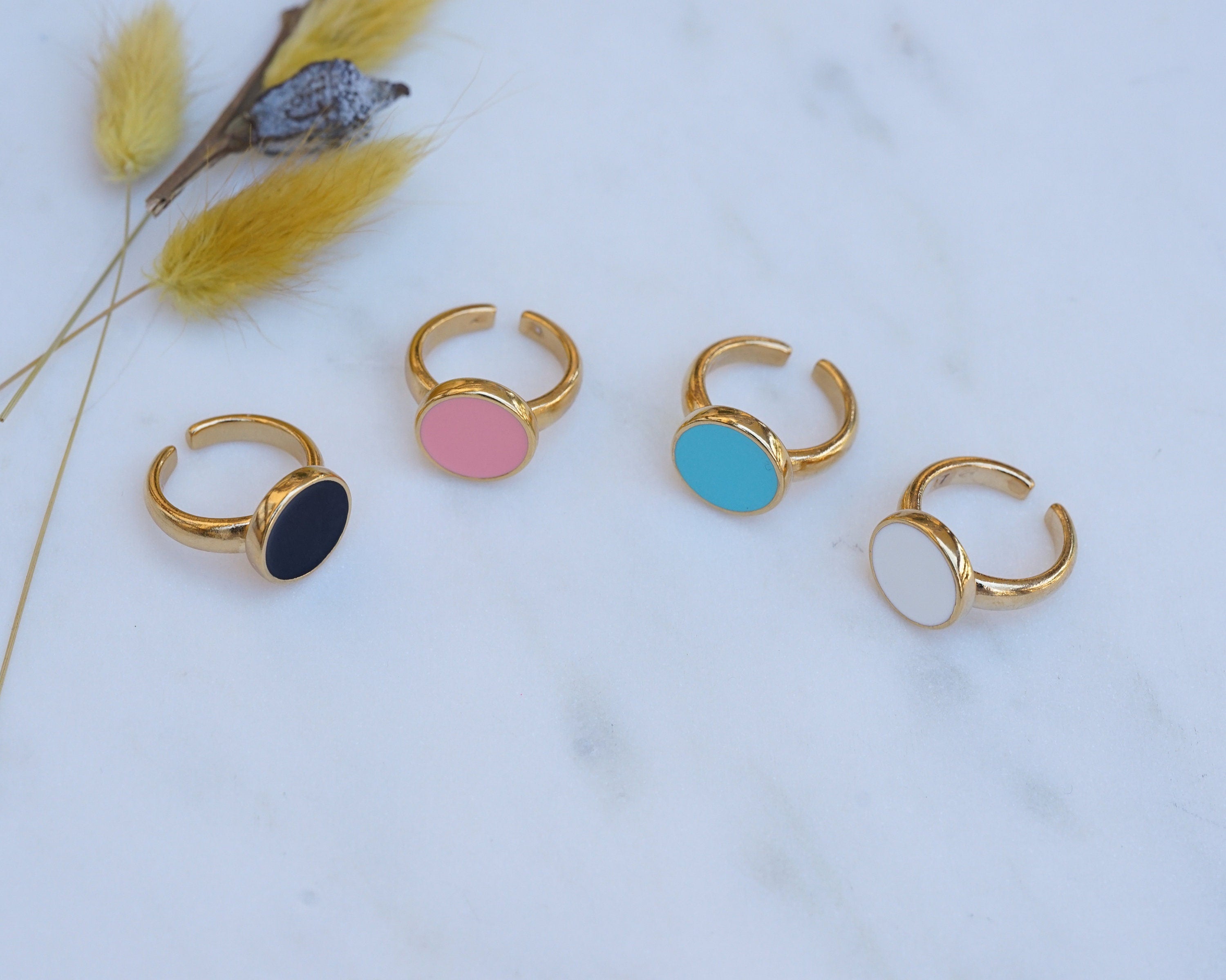 Discover the elegance of this chic solitaire ring, featuring an enamel setting available in white, black, coral, or turquoise. Its minimalist design makes it a versatile addition to your jewelry collection, perfect for enhancing a variety of outfits.