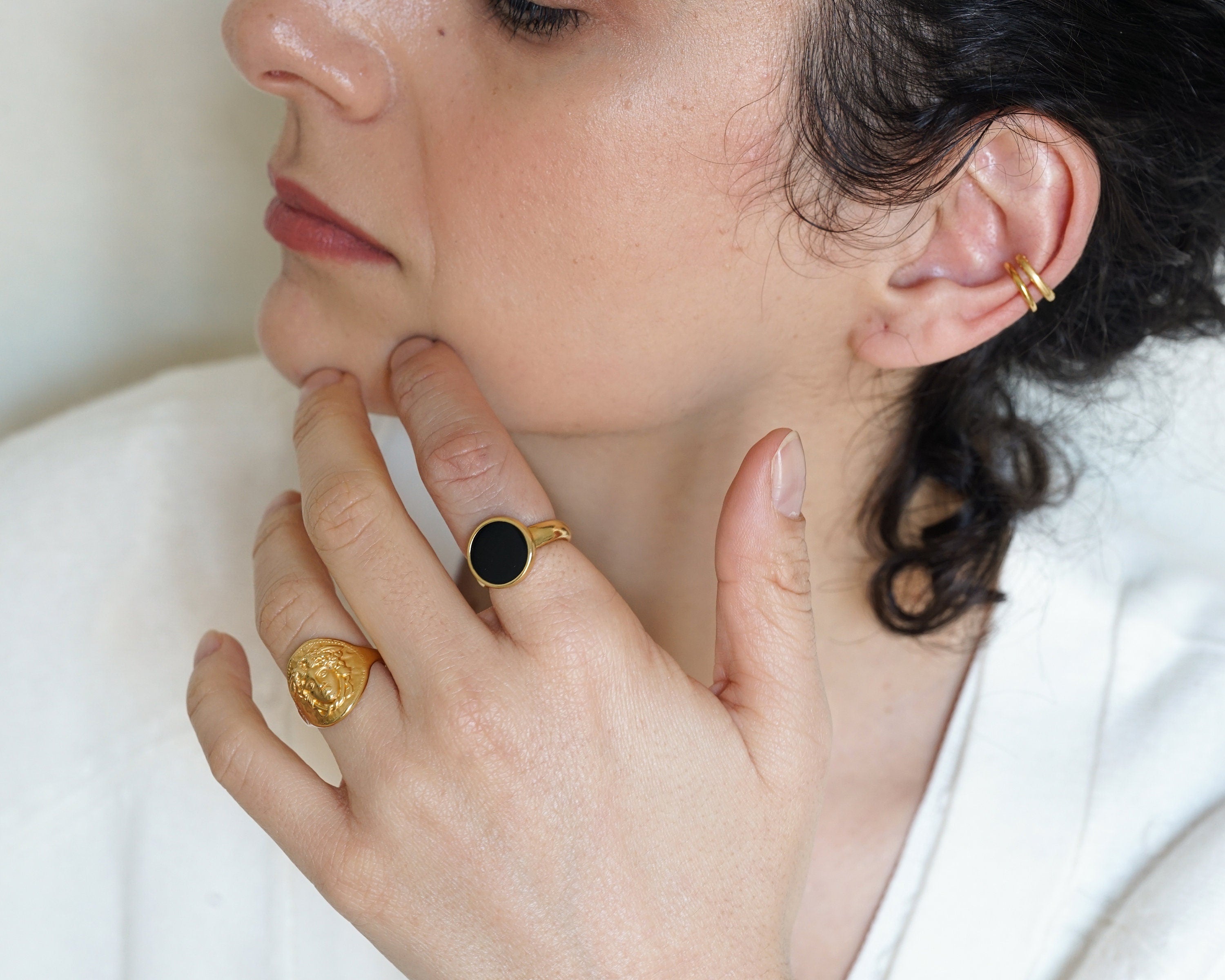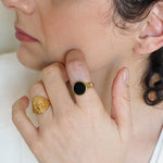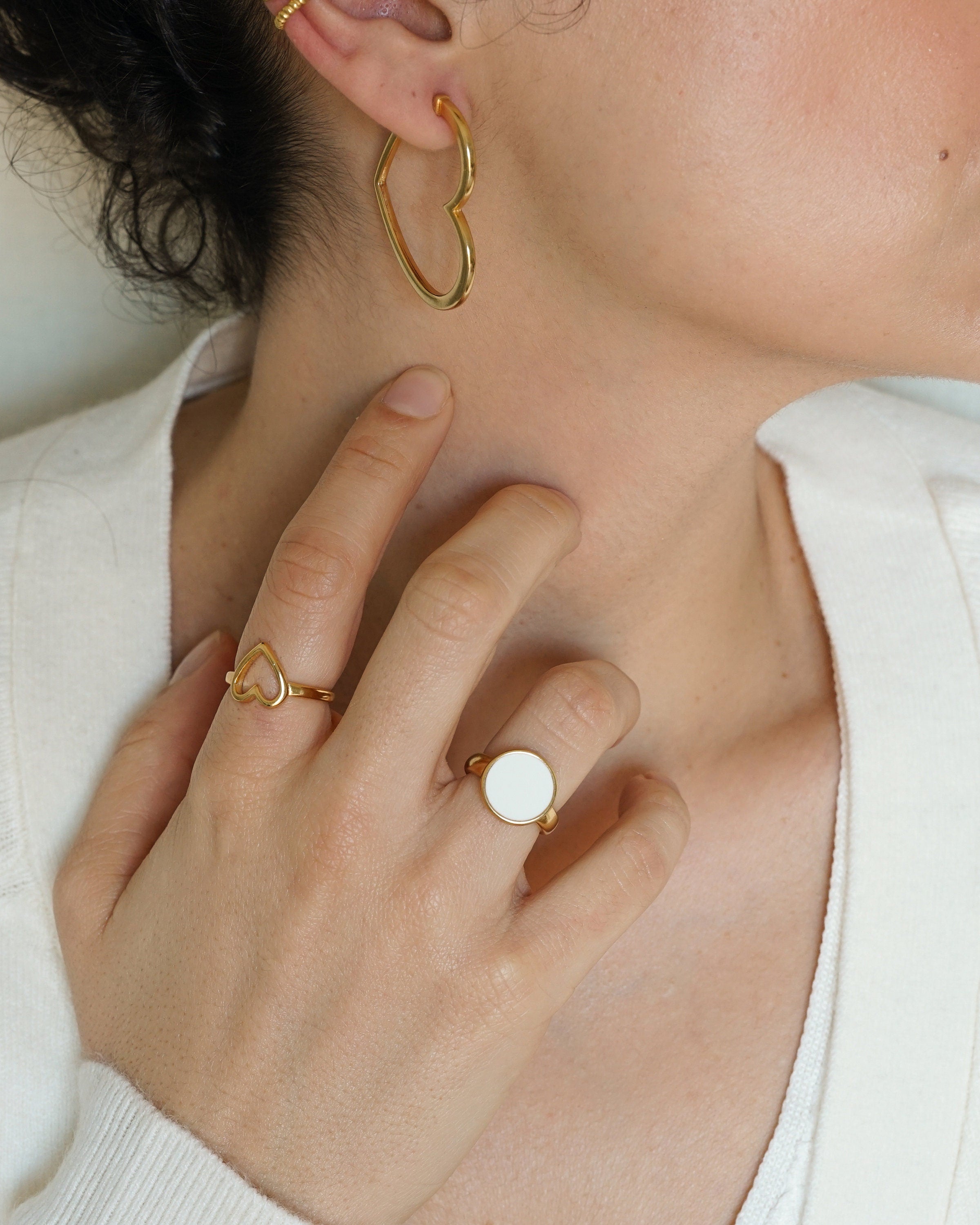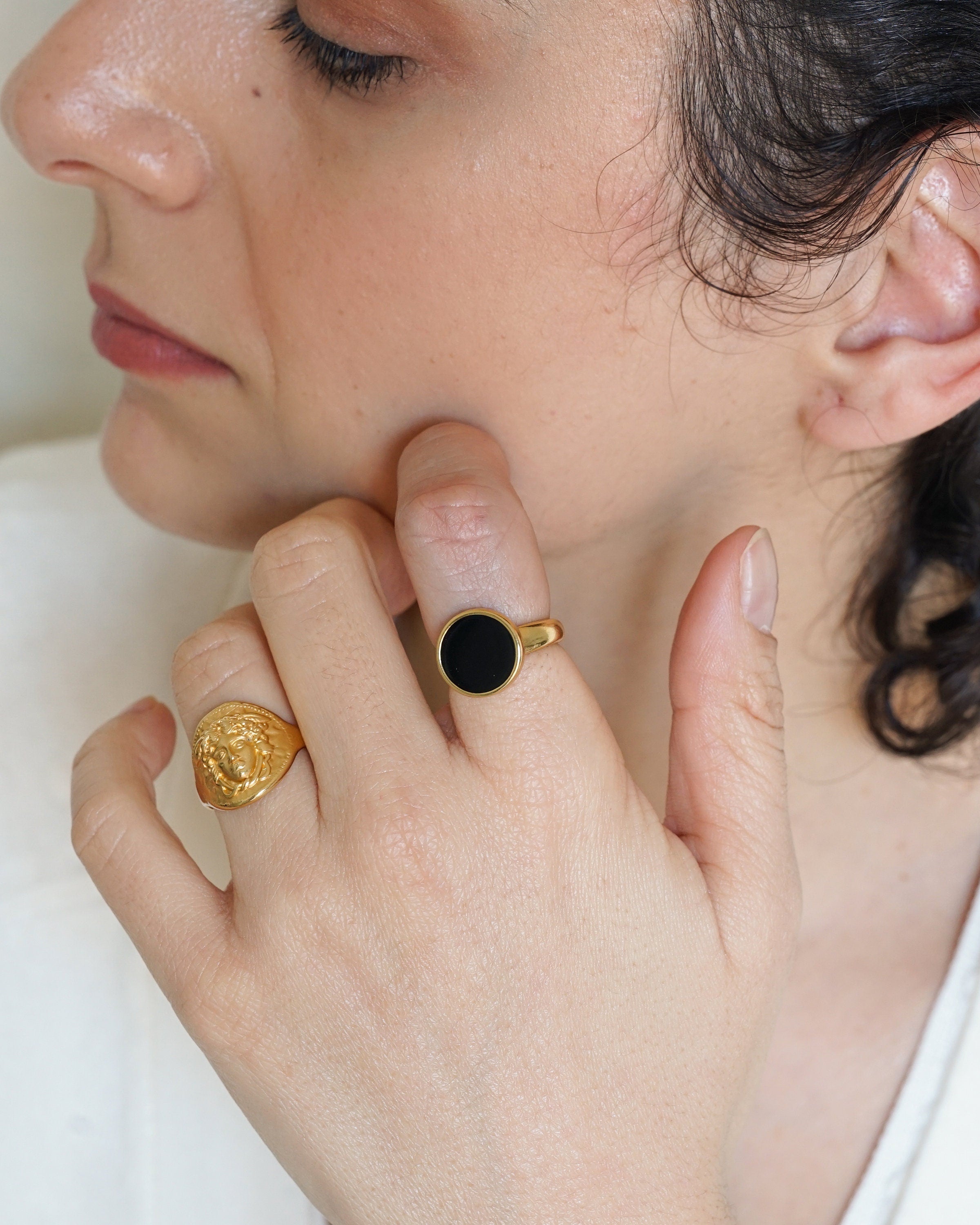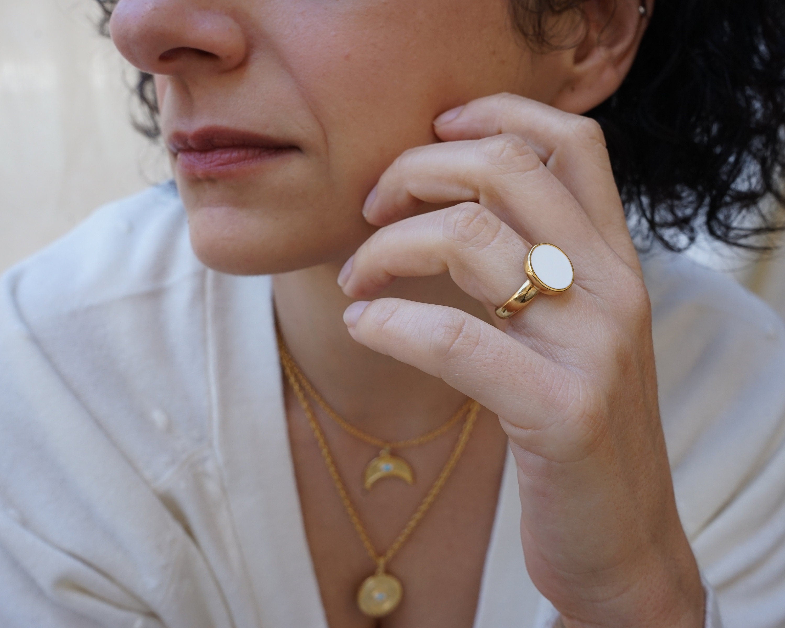 Discover the elegance of this chic solitaire ring, featuring an enamel setting available in white, black, coral, or turquoise. Its minimalist design makes it a versatile addition to your jewelry collection, perfect for enhancing a variety of outfits.