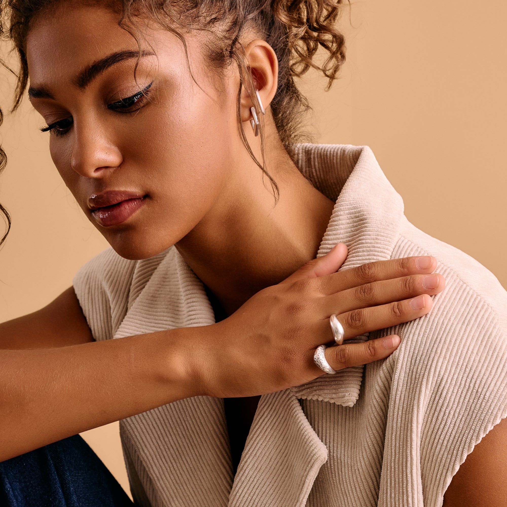 Pair it effortlessly with our best-selling Soft Curve Ring for an elegant layered look. Ideal for any occasion, this ring complements a variety of styles, making it a must-have accessory for the season.