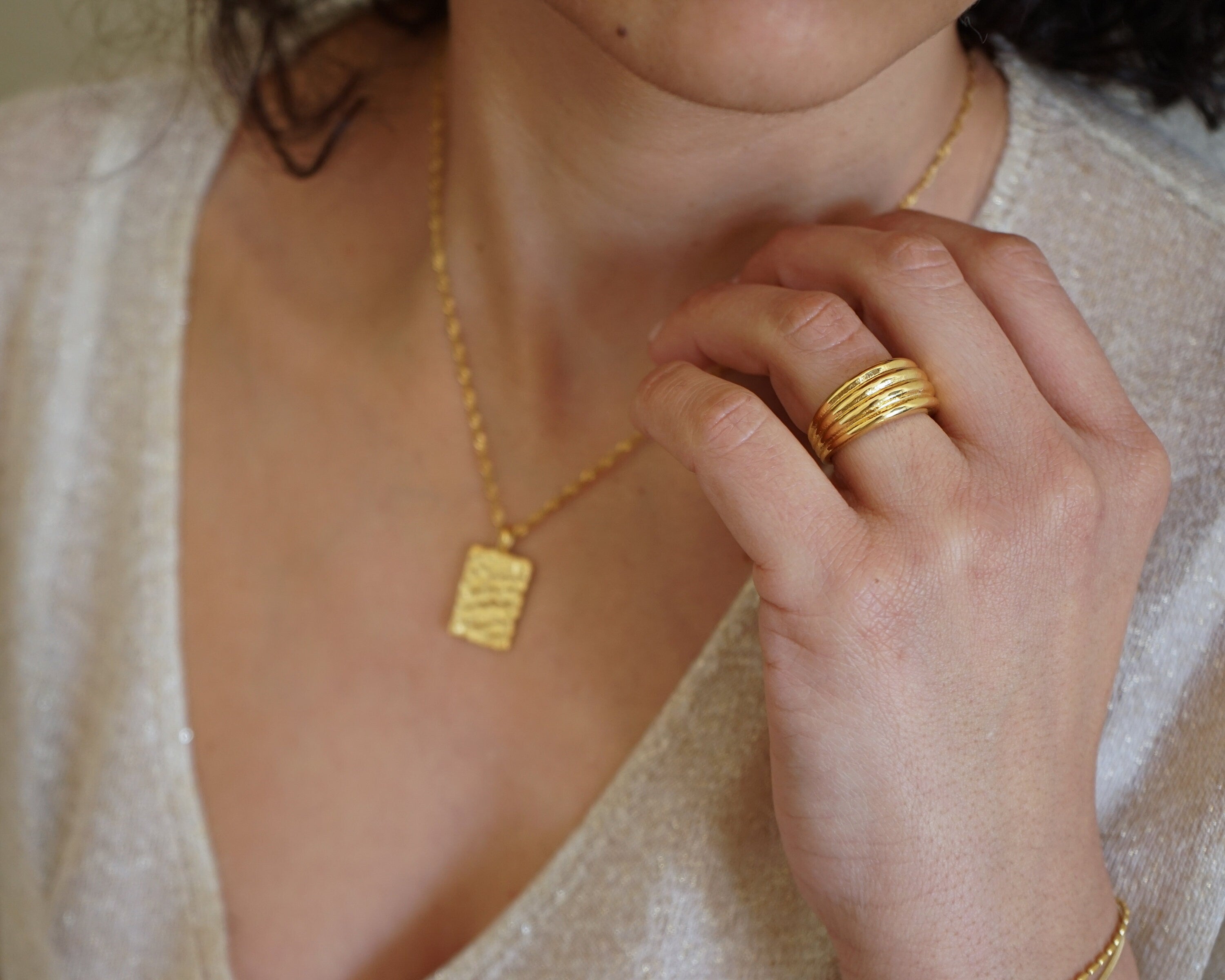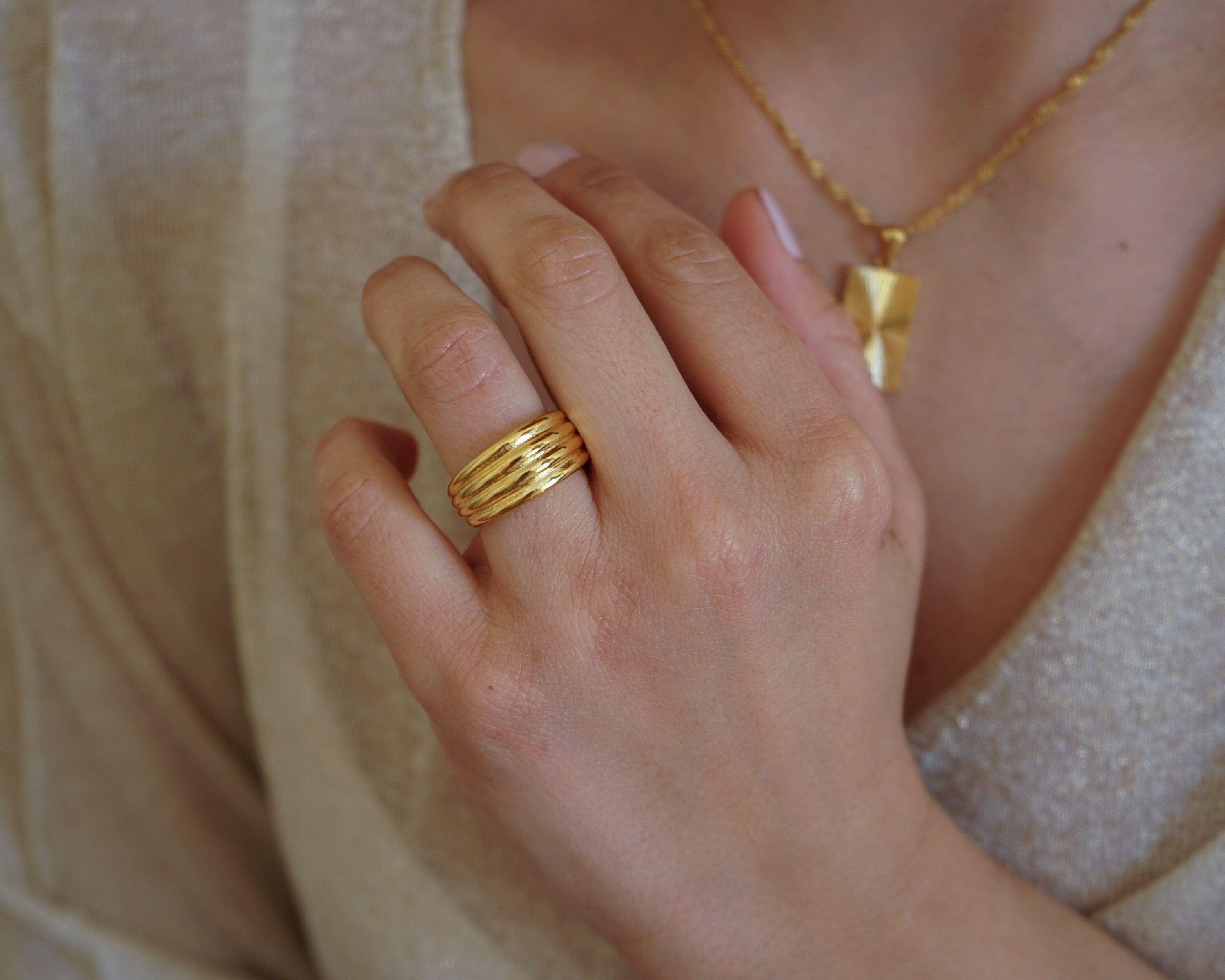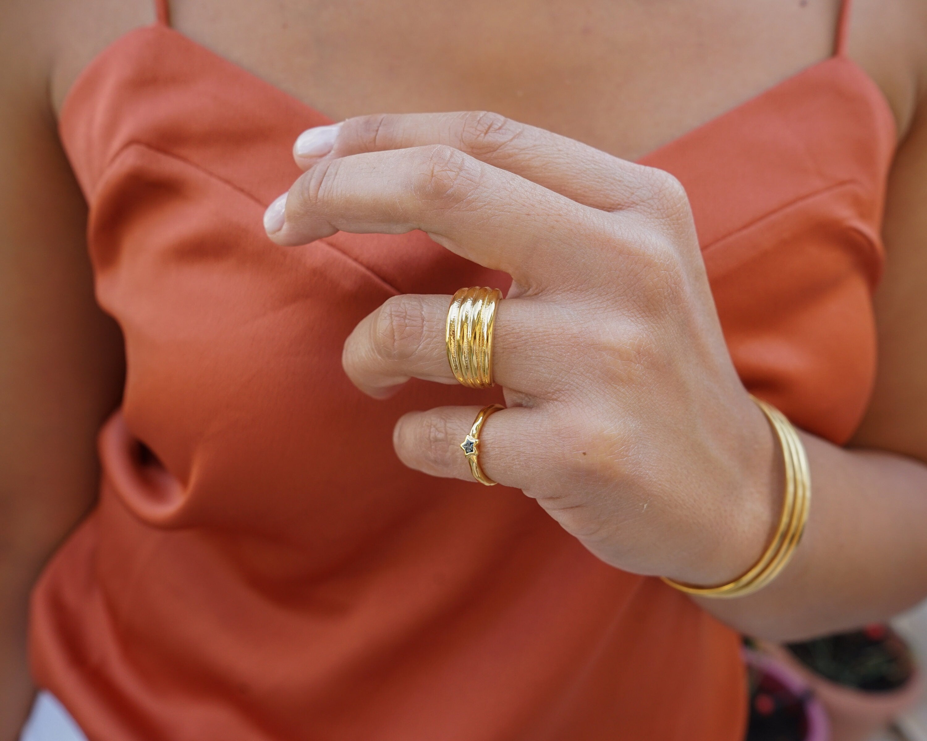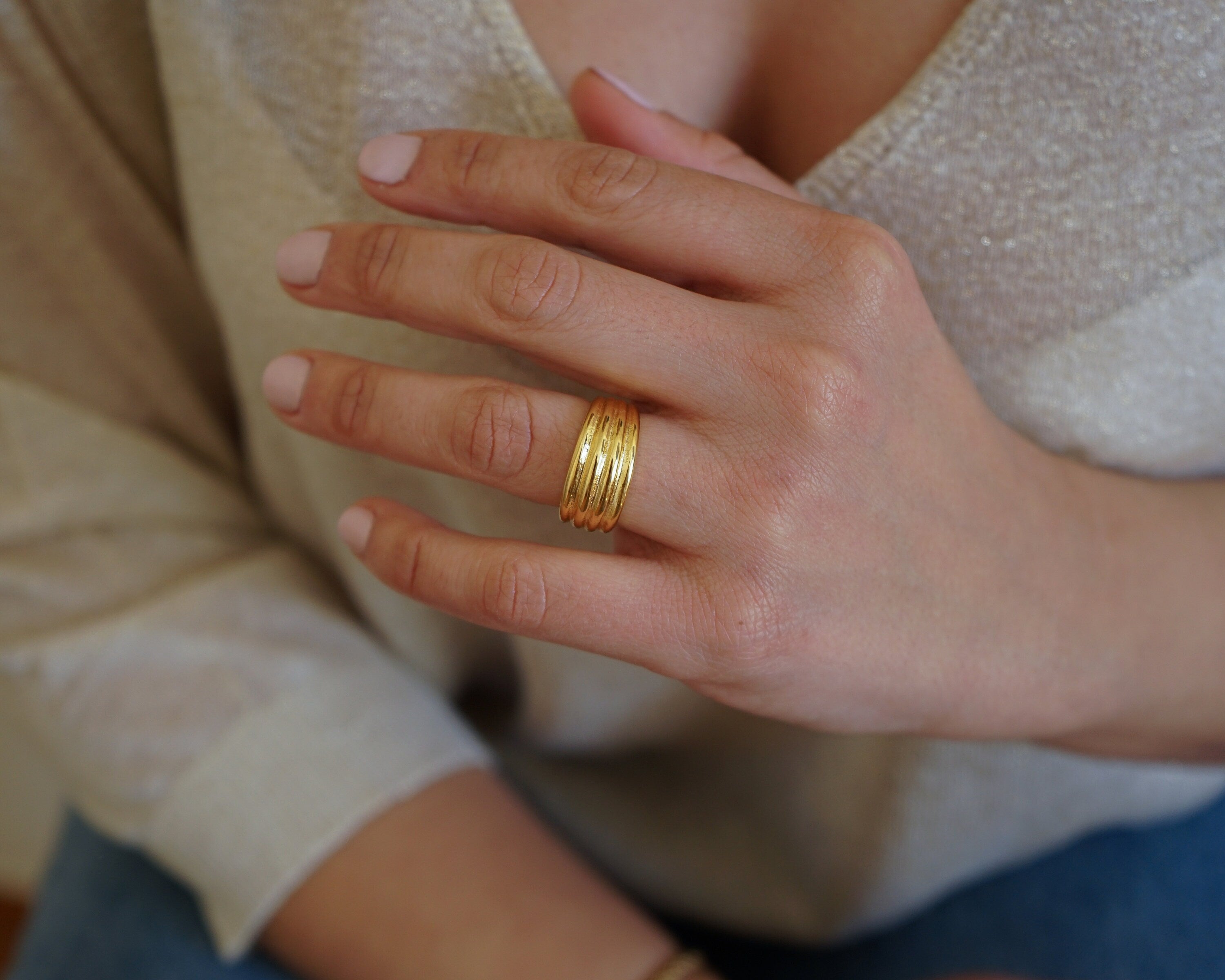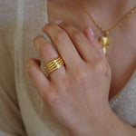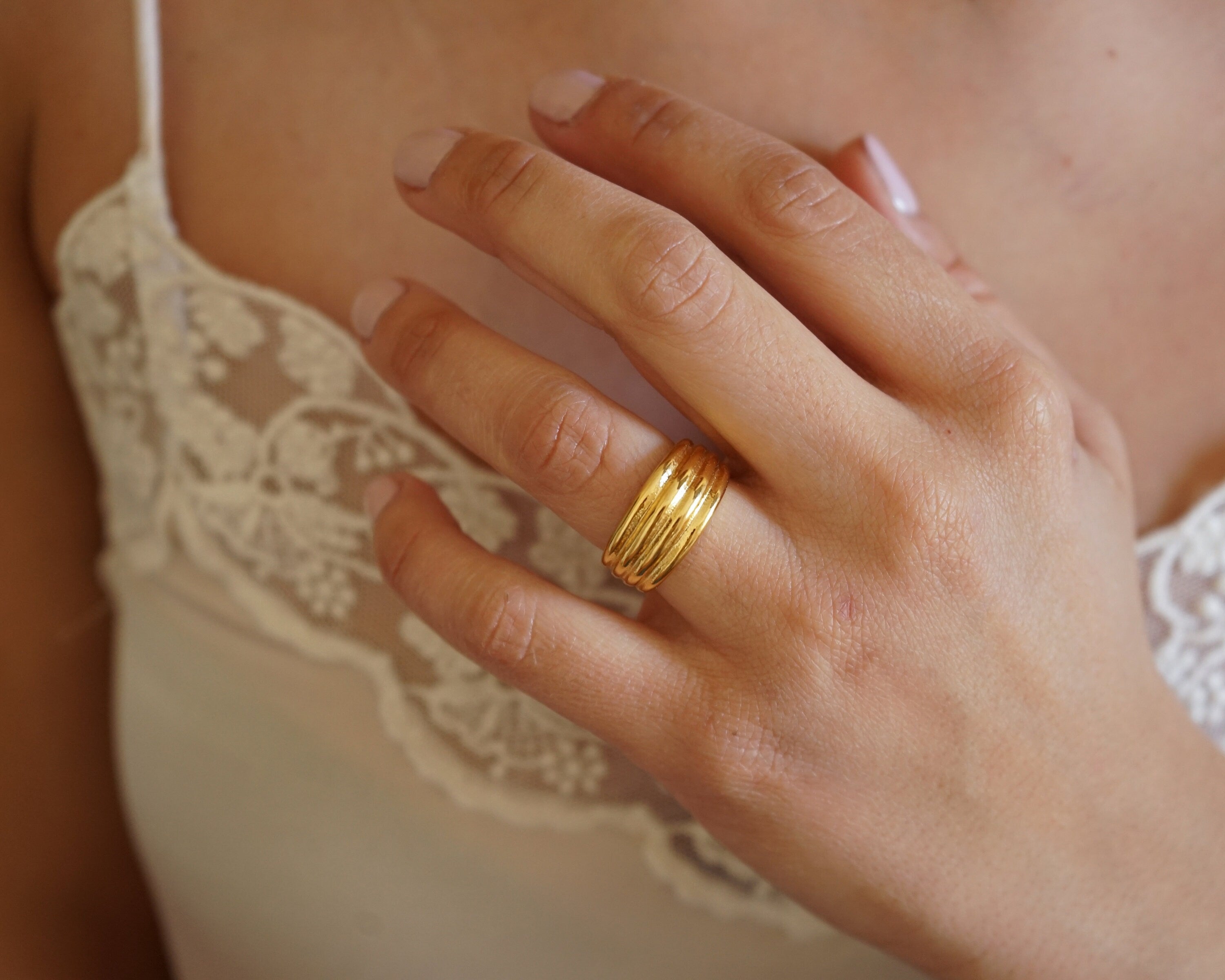 Take a risk and stand out with our one-of-a-kind 18K gold plated stainless steel CROISSANT Ring. Wear it solo or layer it with other rings to create a bold, stacked look. With its unconventional and asymmetrical design, this ring is a statement piece that will elevate your style for years to come.