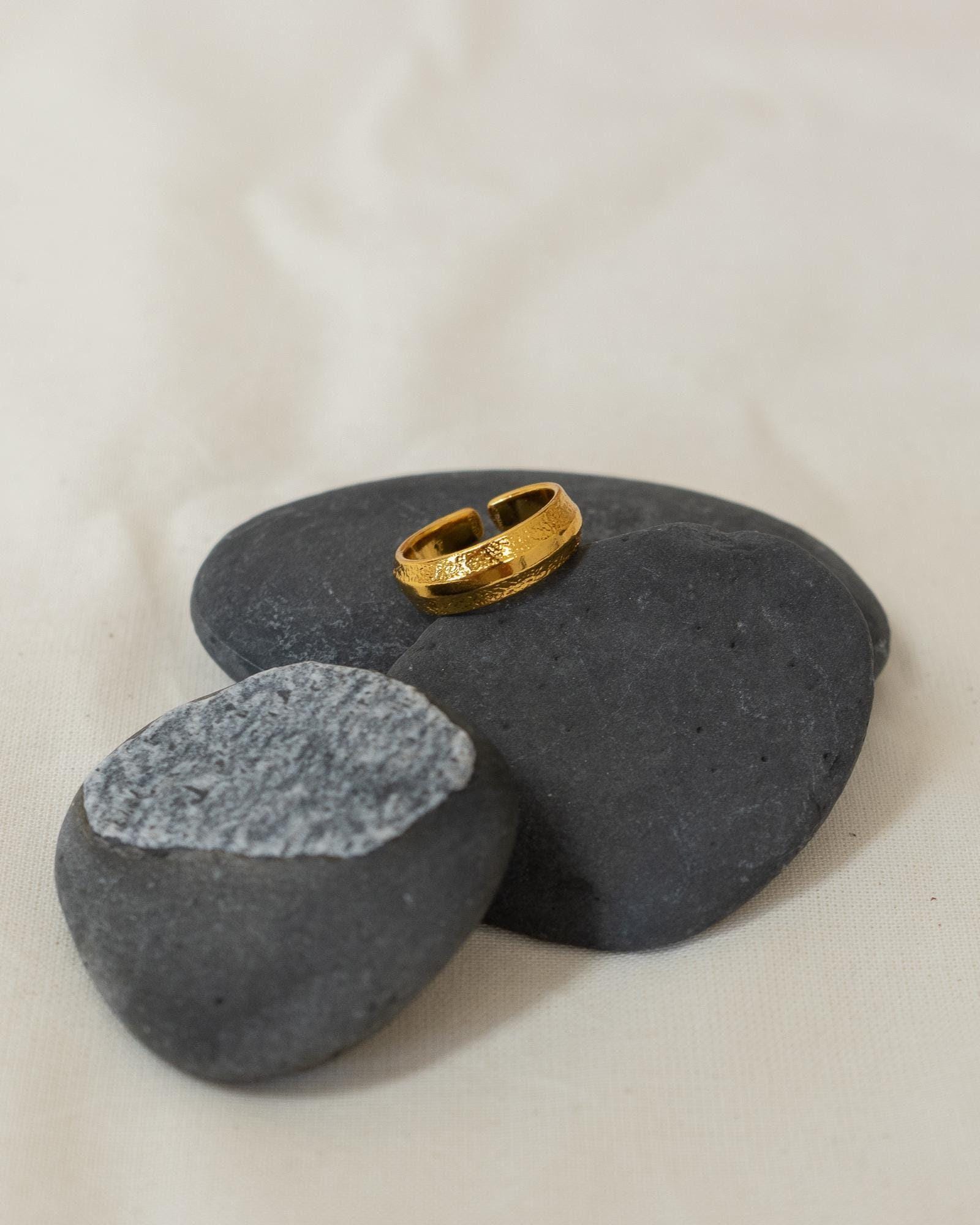Enhance your style effortlessly with this gold-brushed ring, a timeless addition to any jewelry collection.