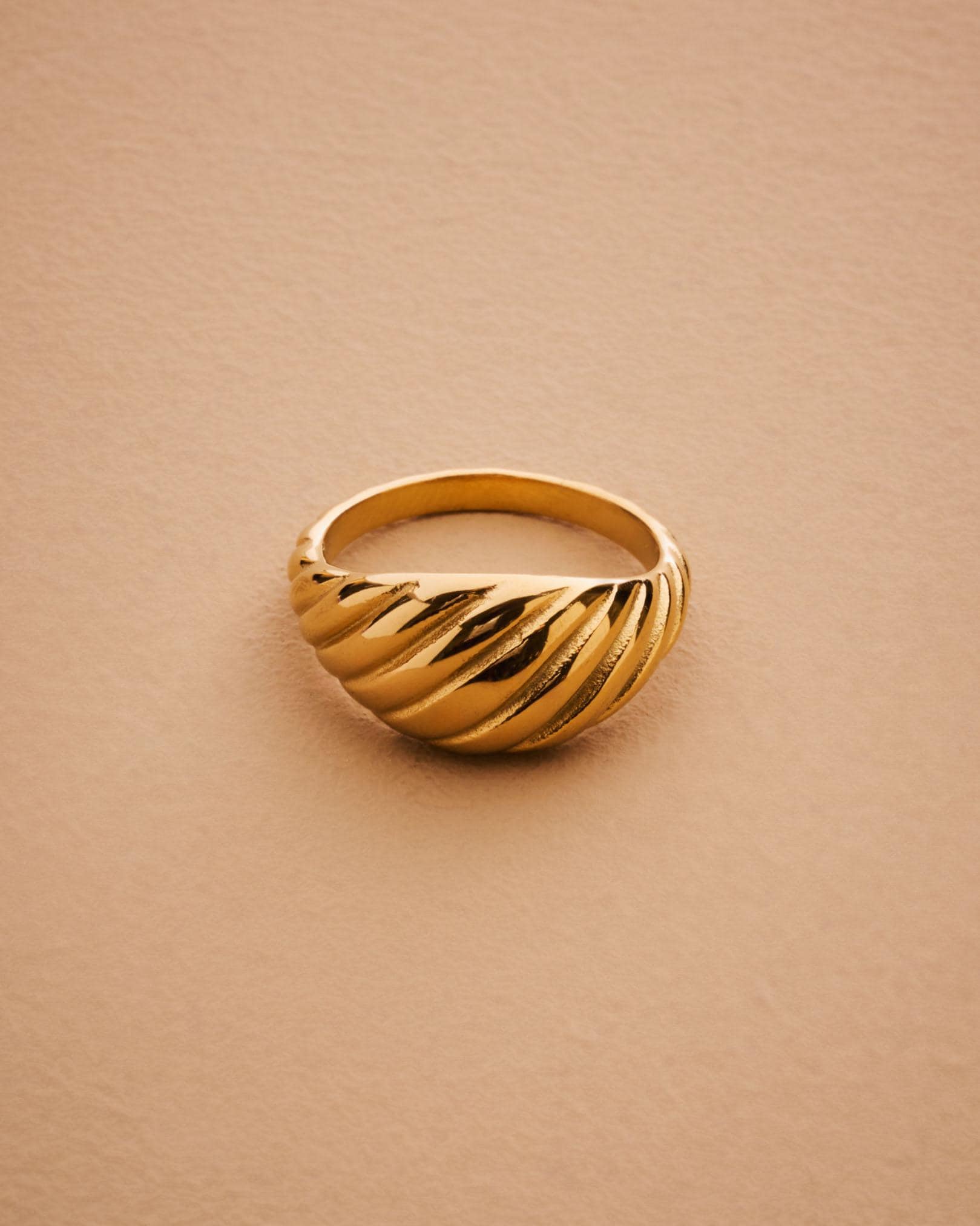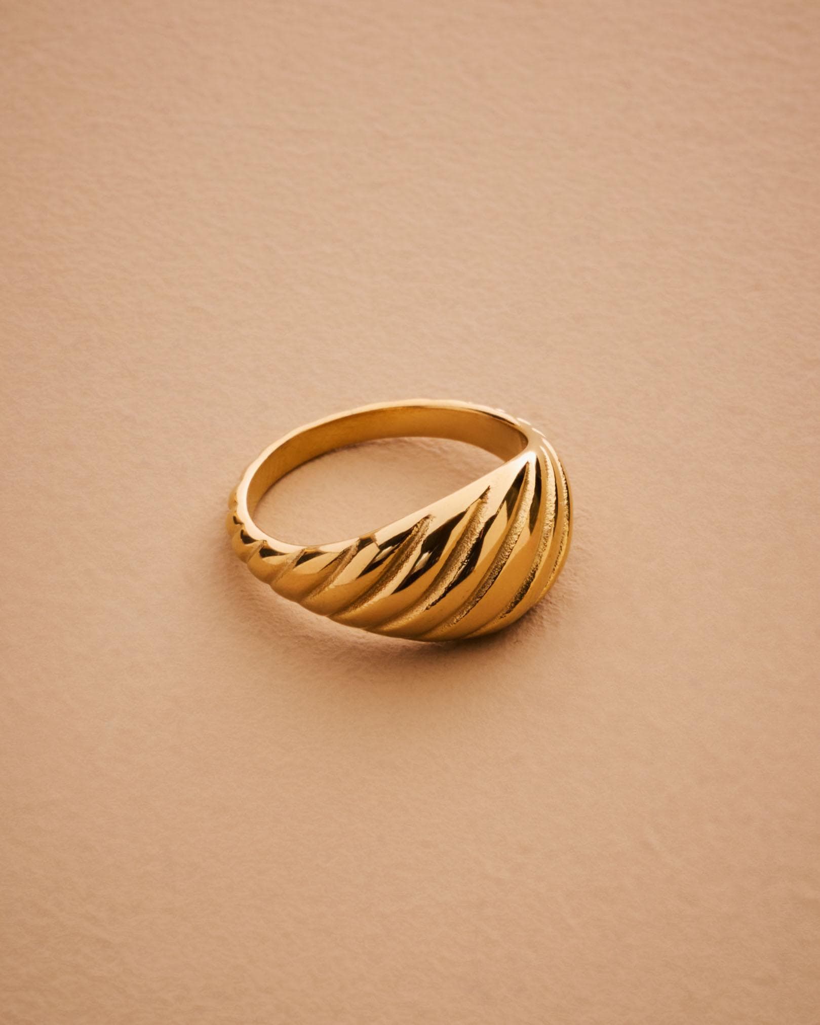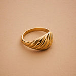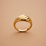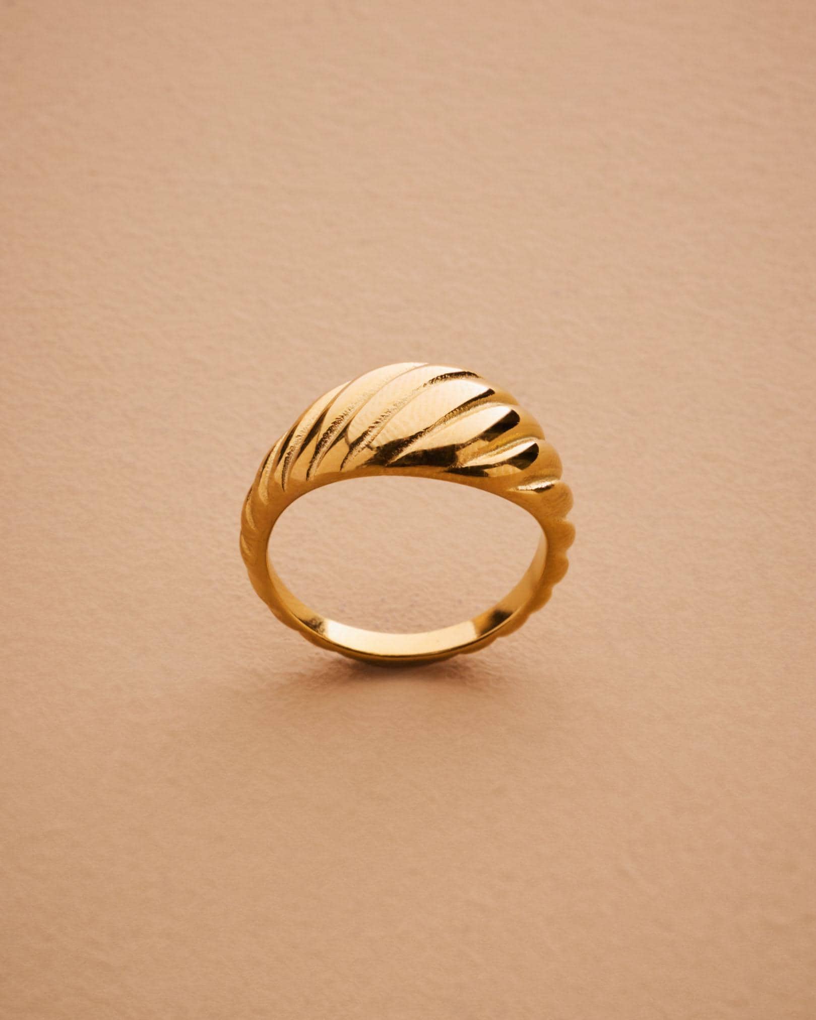 This gold croissant ring brings a touch of modern elegance to any look. With its bold ribbed dome shape and polished finish, it beautifully captures the sculptural curves of the classic French croissant — now reimagined as a timeless jewelry piece.