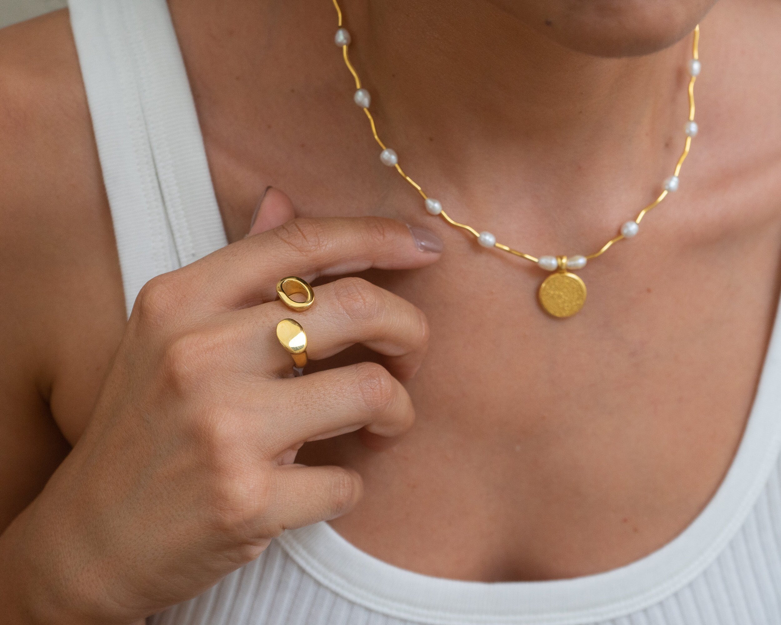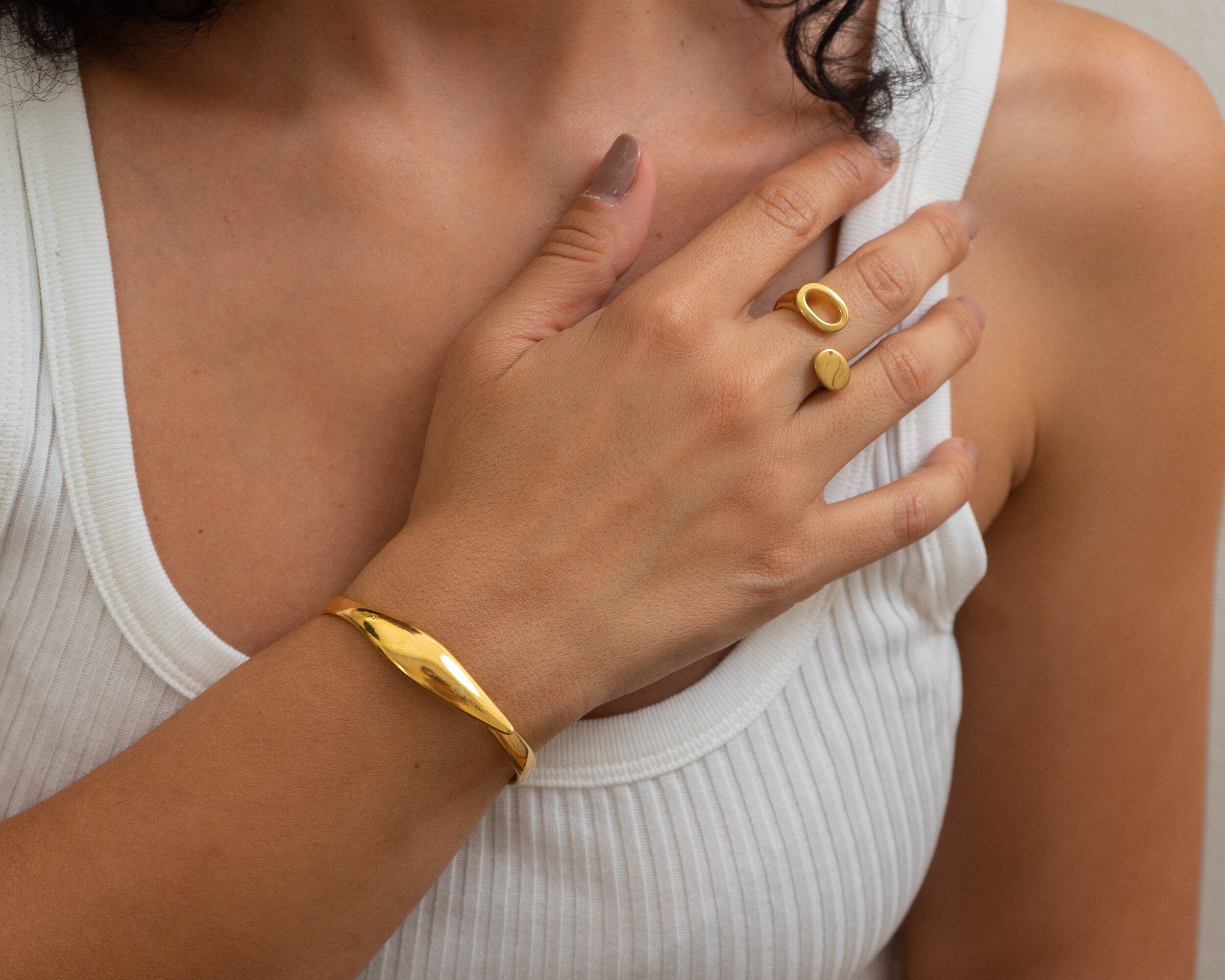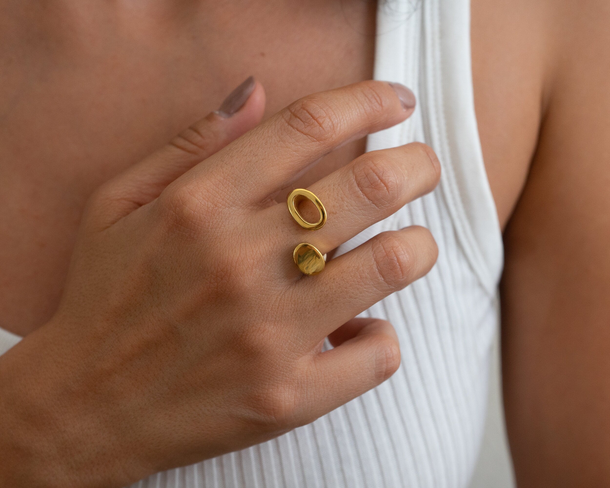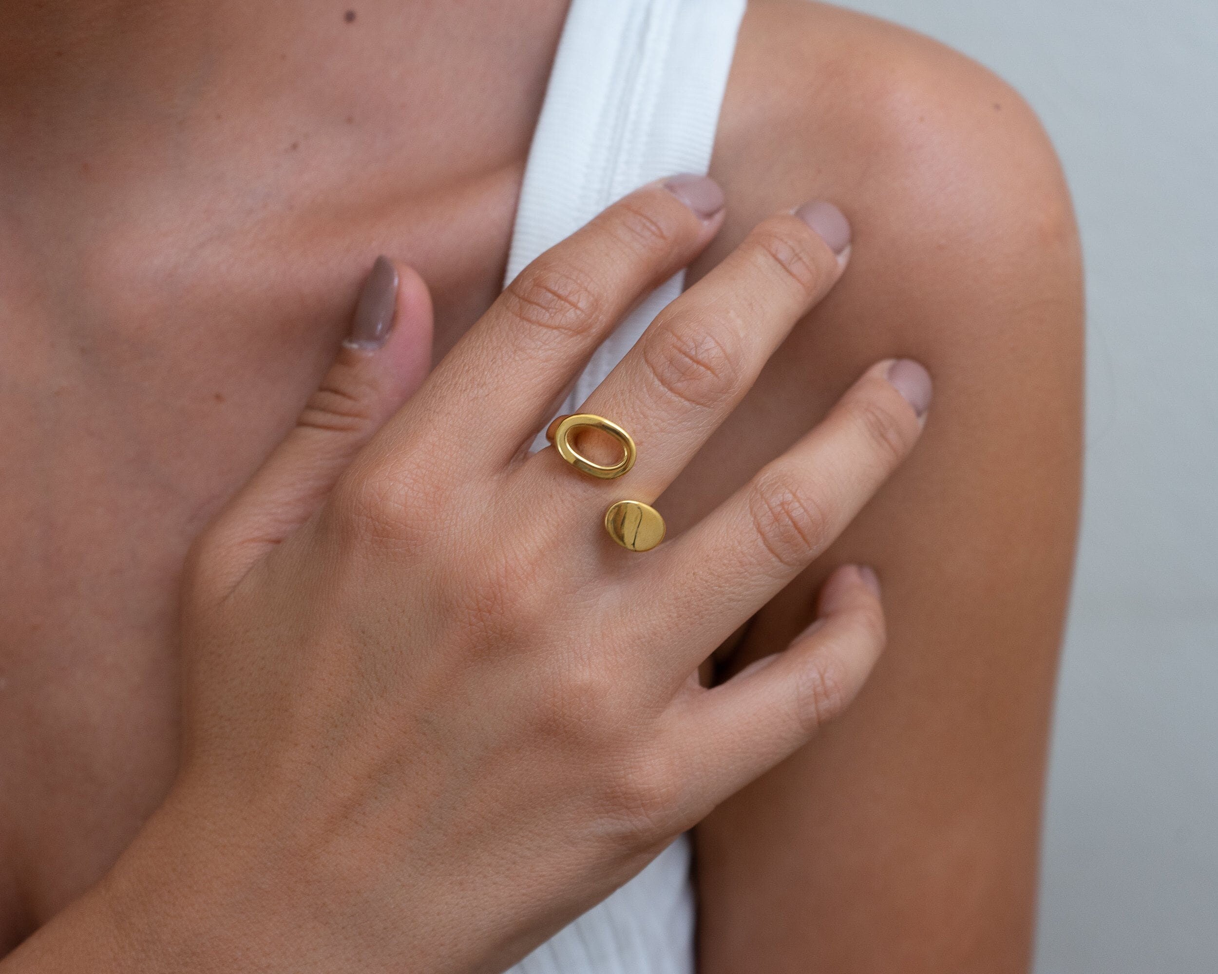 Its unusual, irregular shape makes it a statement piece that you will wear for years to come.This ring is very easily wearable no matter the style. A must for the season.