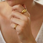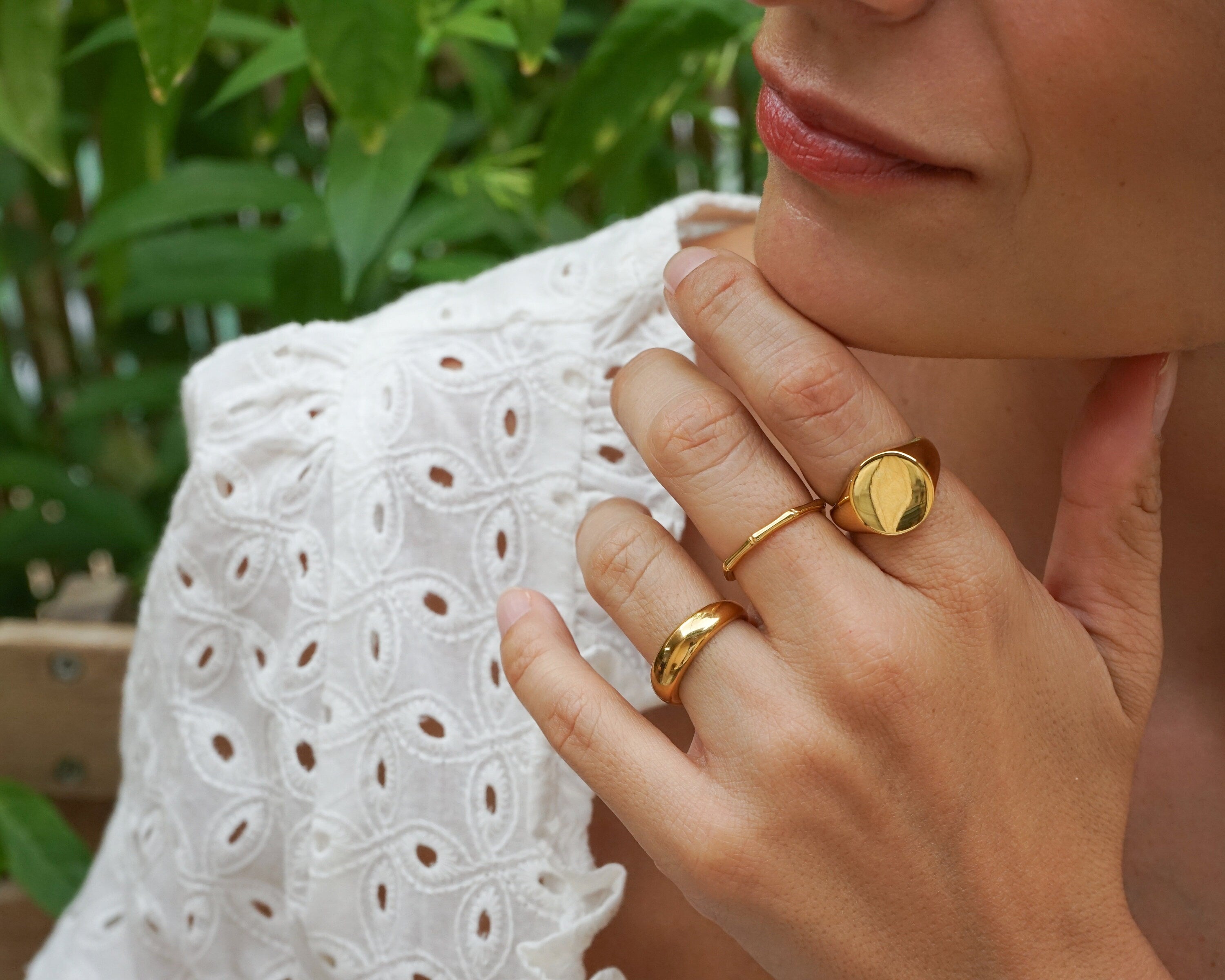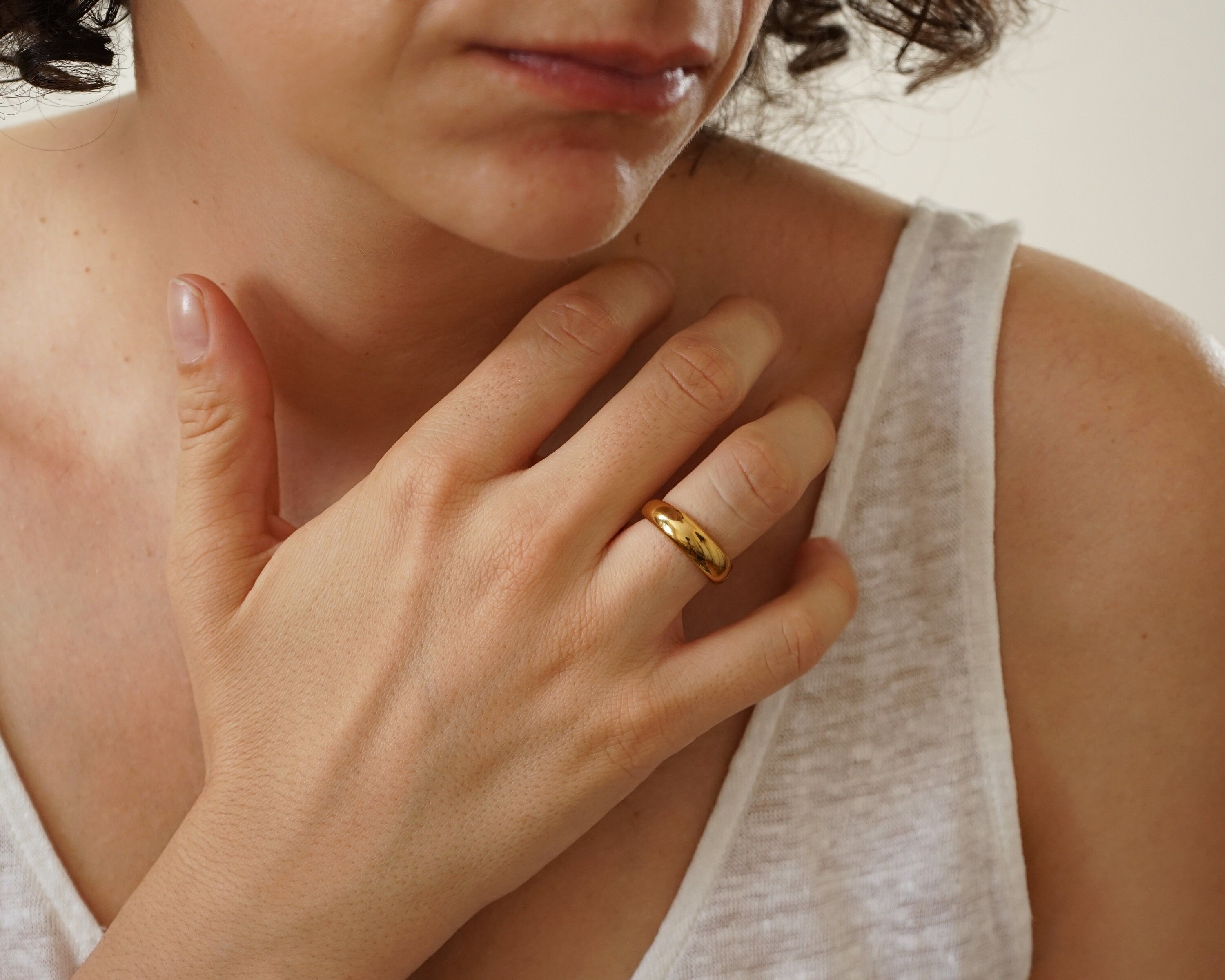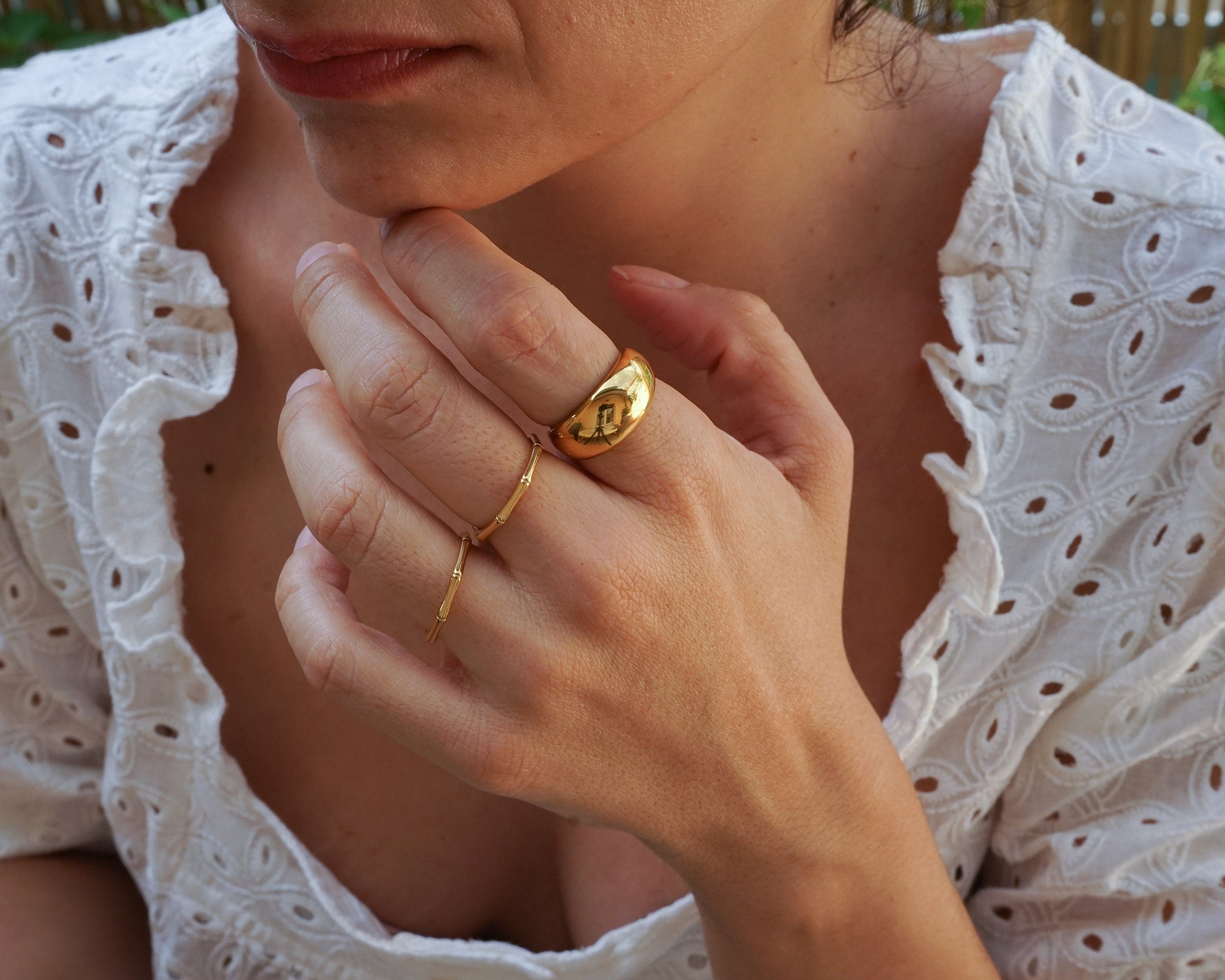 Looking for a ring that adds a touch of flair to your style? Meet our fabulous 18K gold-plated stainless steel DOME ring! With its unique design, this ring is not just an accessory; it's a bold statement piece that’s sure to turn heads. Available in two chic styles, it effortlessly blends classic charm with modern appeal, making it perfect for any occasion.