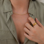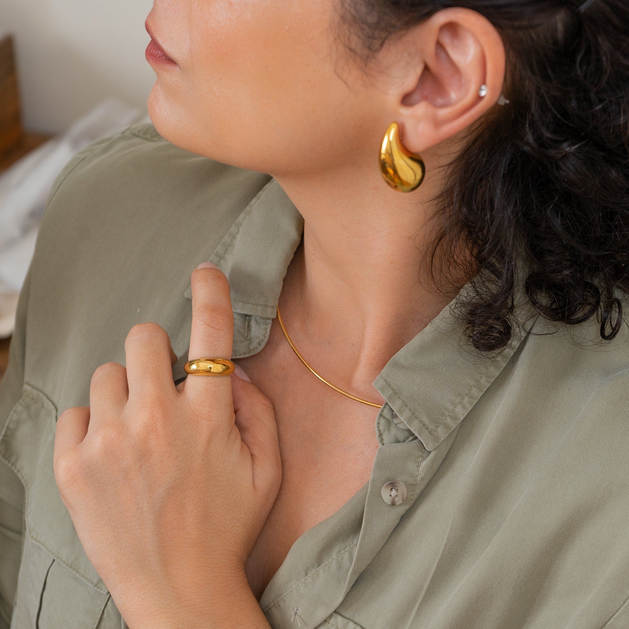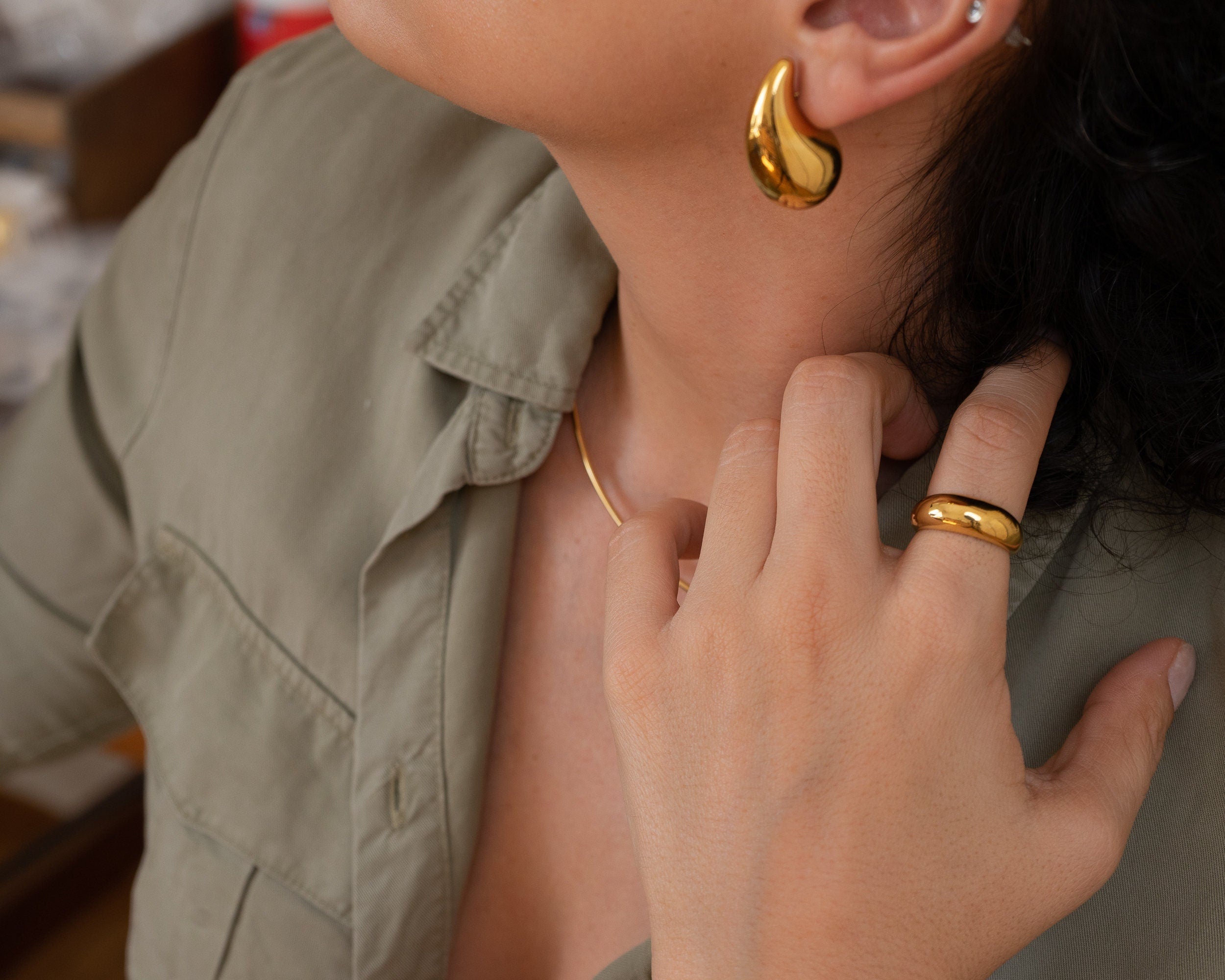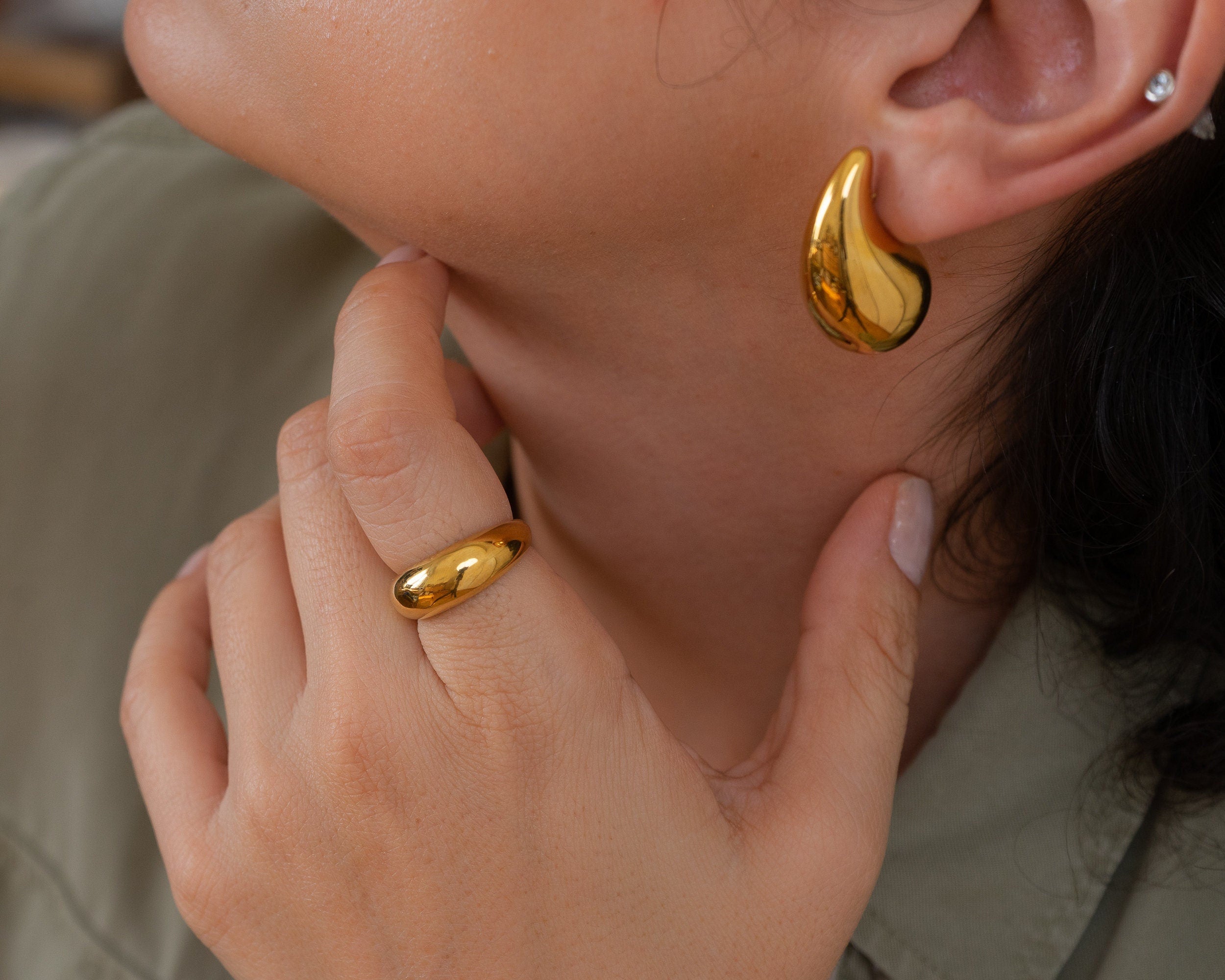 A unique 18K gold-plated stainless steel statement DOME ring. This is a classic design and a timeless piece. It can be worn on the index, middle, or ring finger. It can be worn alone or in combination with other rings. Its unique shape makes it a statement piece that you will wear for years to come.