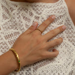 Made of gold-plated stainless steel, it's hypoallergenic, tarnish-resistant, and designed to be worn every day. Pair it with our matching engraved bangles or wear it solo as a statement of understated luxury.