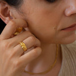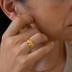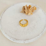 A unique 18K gold plated stainless steel statement HAMMERED ring, with a textured surface.