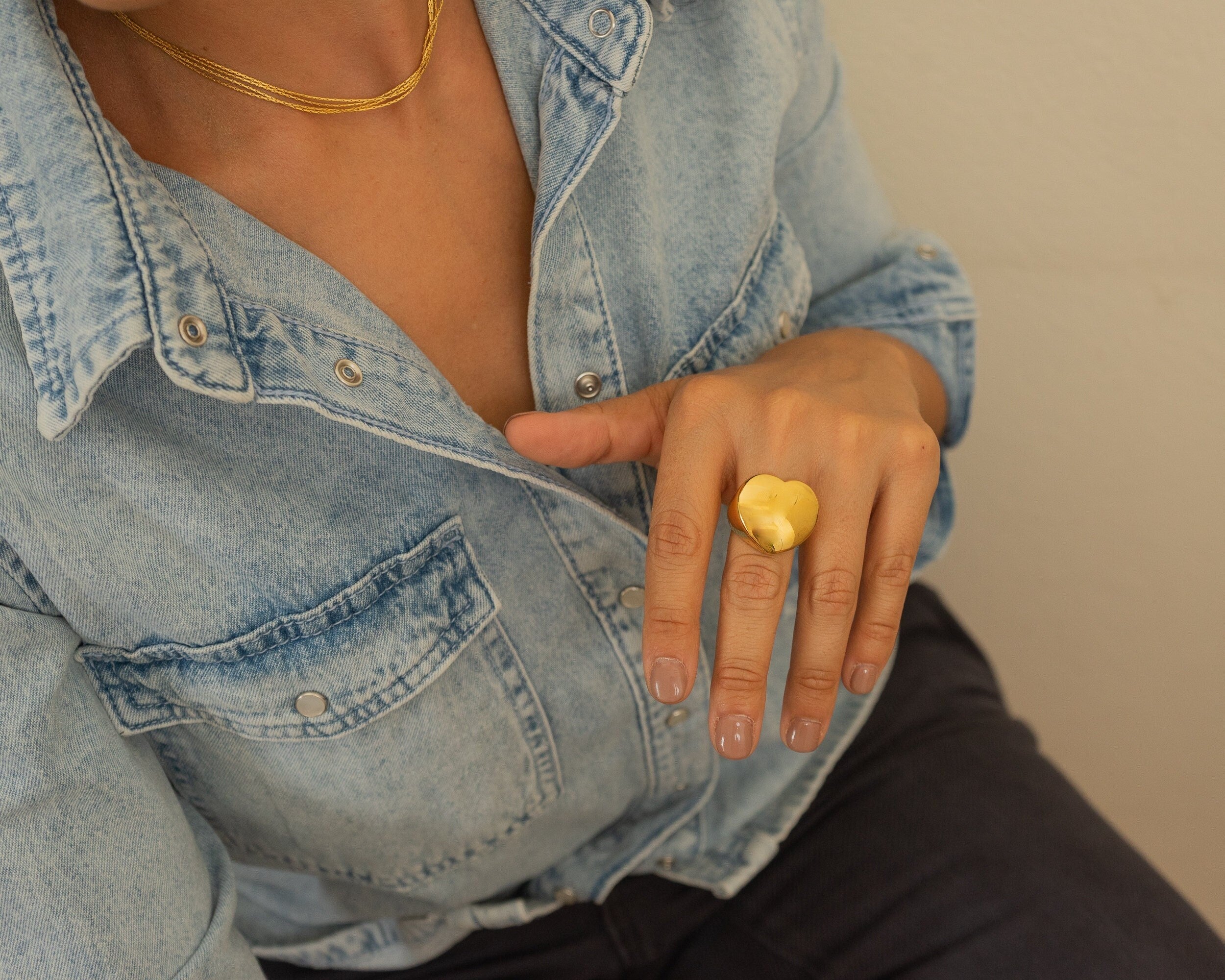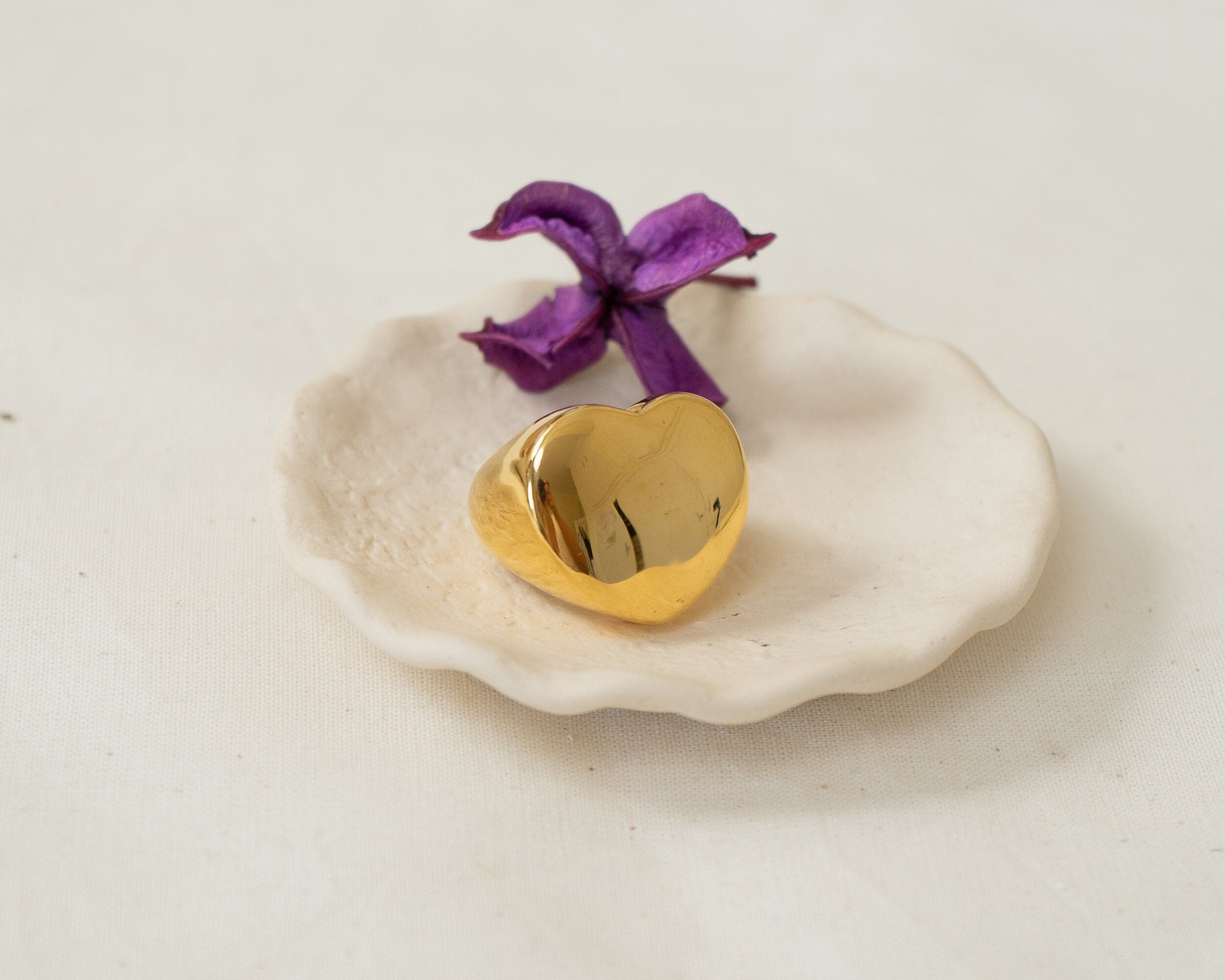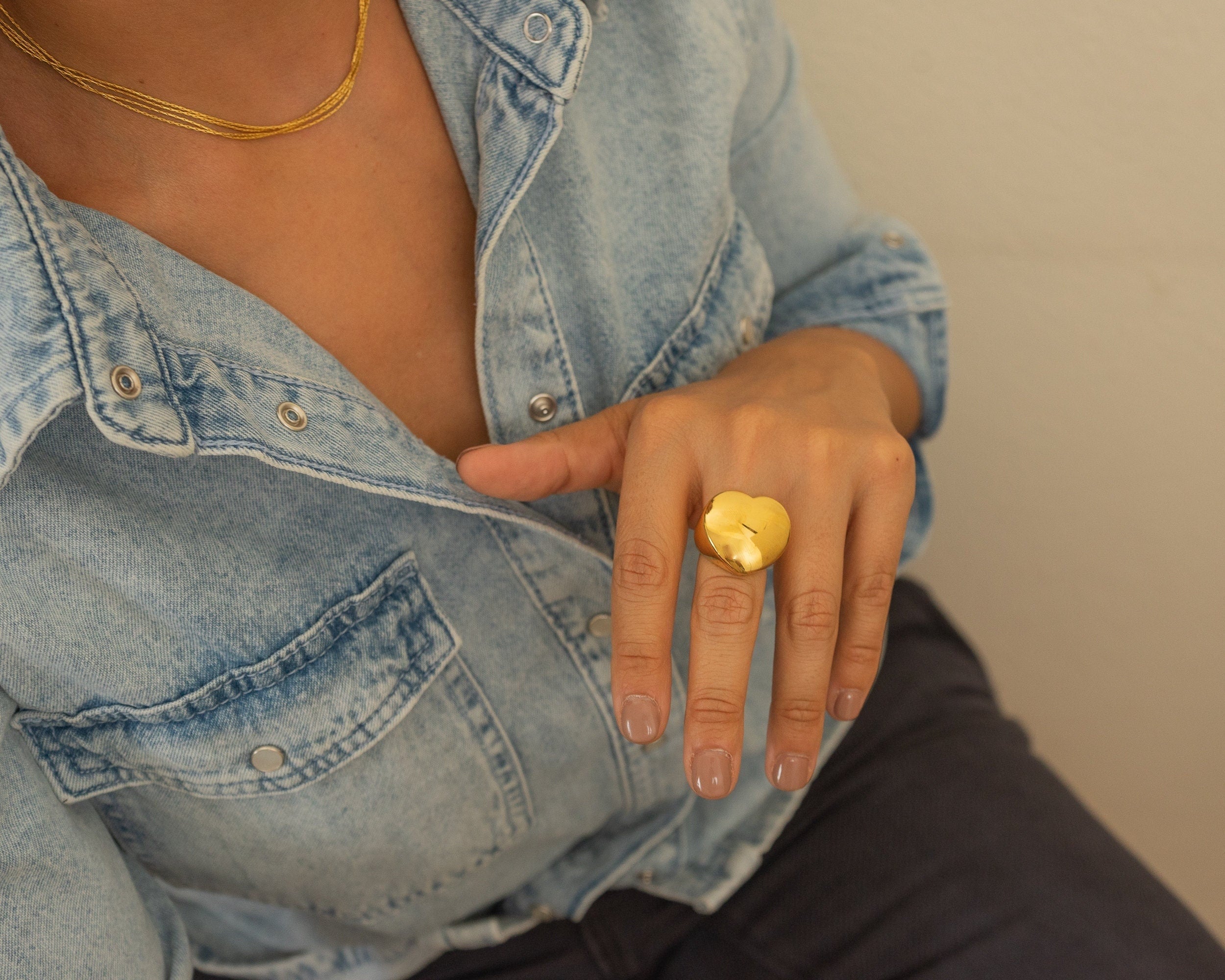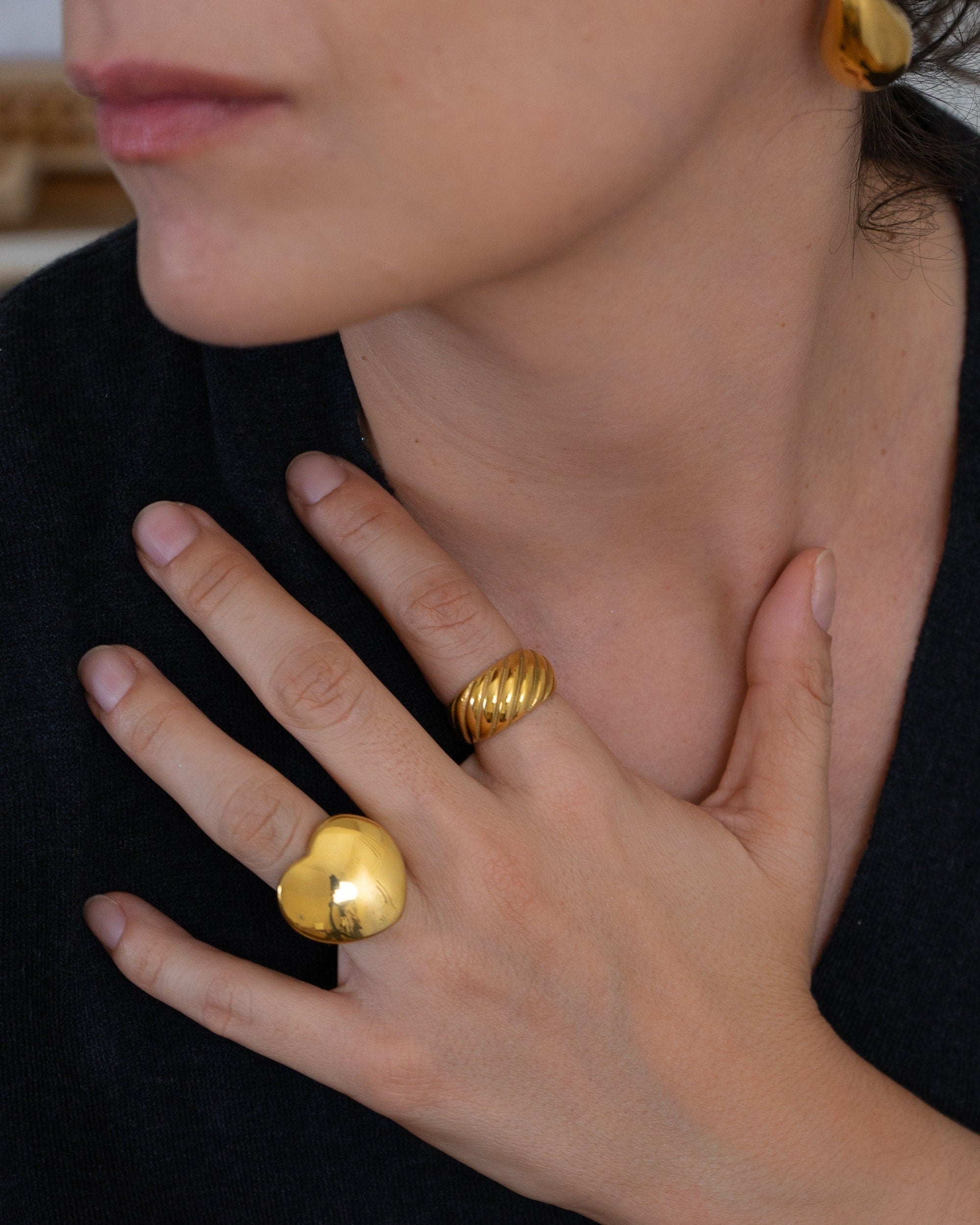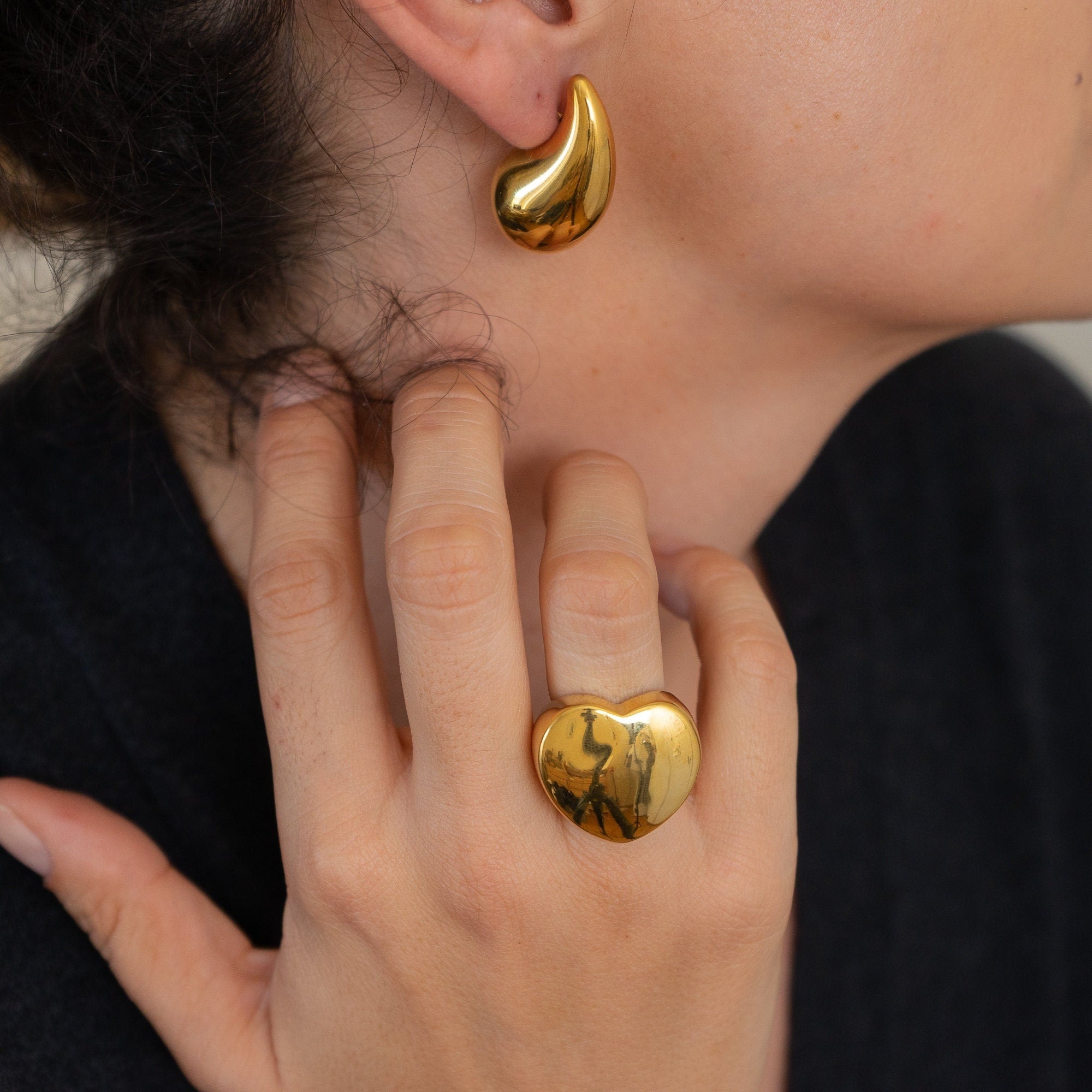 Discover the allure of our 18K gold-plated stainless steel Big Heart Signet Ring, a striking piece designed to enhance your personal style. This charming statement ring features a bold heart design, making it a perfect accessory for any occasion.