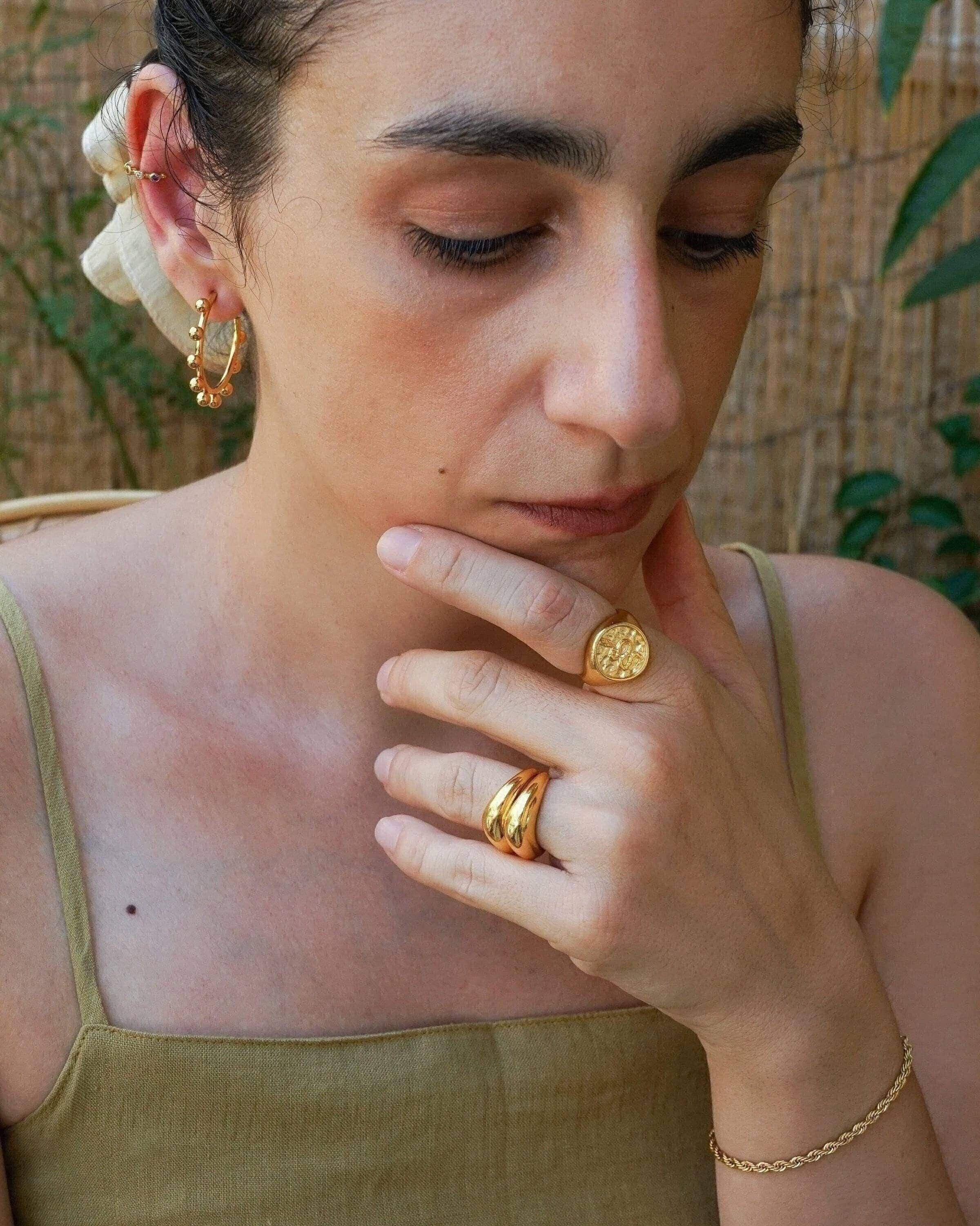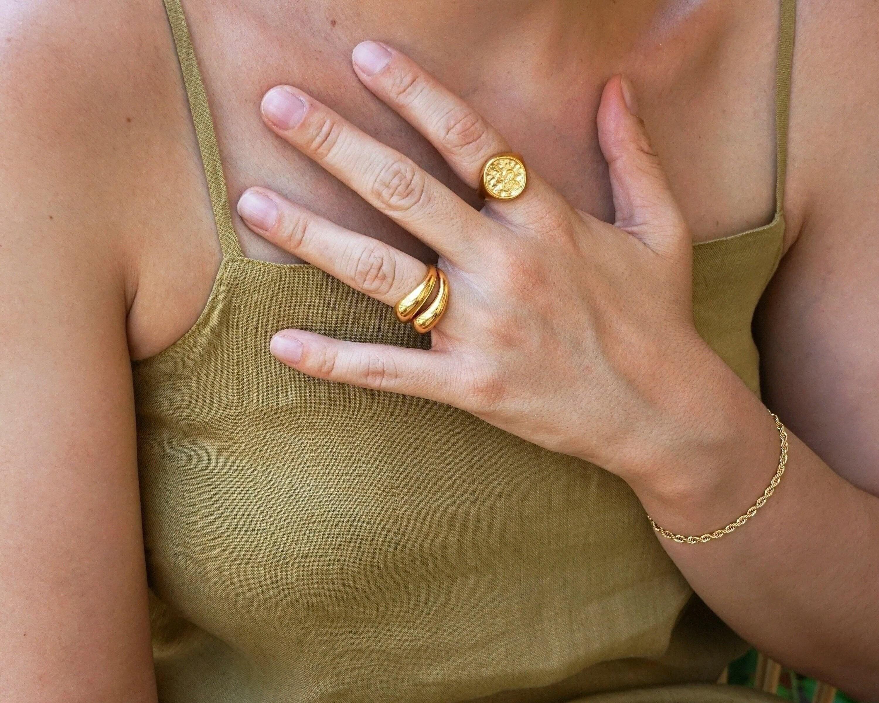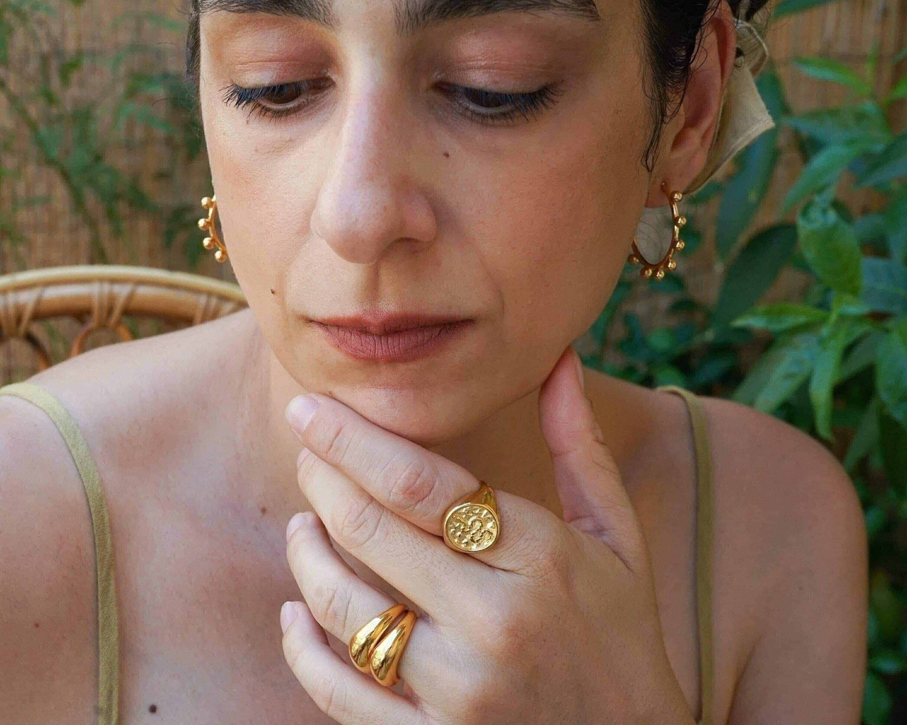 Made from 24K gold plated zamak, this SNAKE STAMP signet chevalier ring is the most powerful of a creative life force. Never mind their bad reputation. Snakes were actually symbols of rebirth, transformation, immortality and healing in Ancient Greece and Egypt. The Greek god Asclepius wielded a serpent-entwined rod. And they do make a kickass styling accessory!od luck, harmony, creativity, and bliss but also hard work and productivity. Most importantly, these magnificent creatures symbolize community, brightness and personal power.