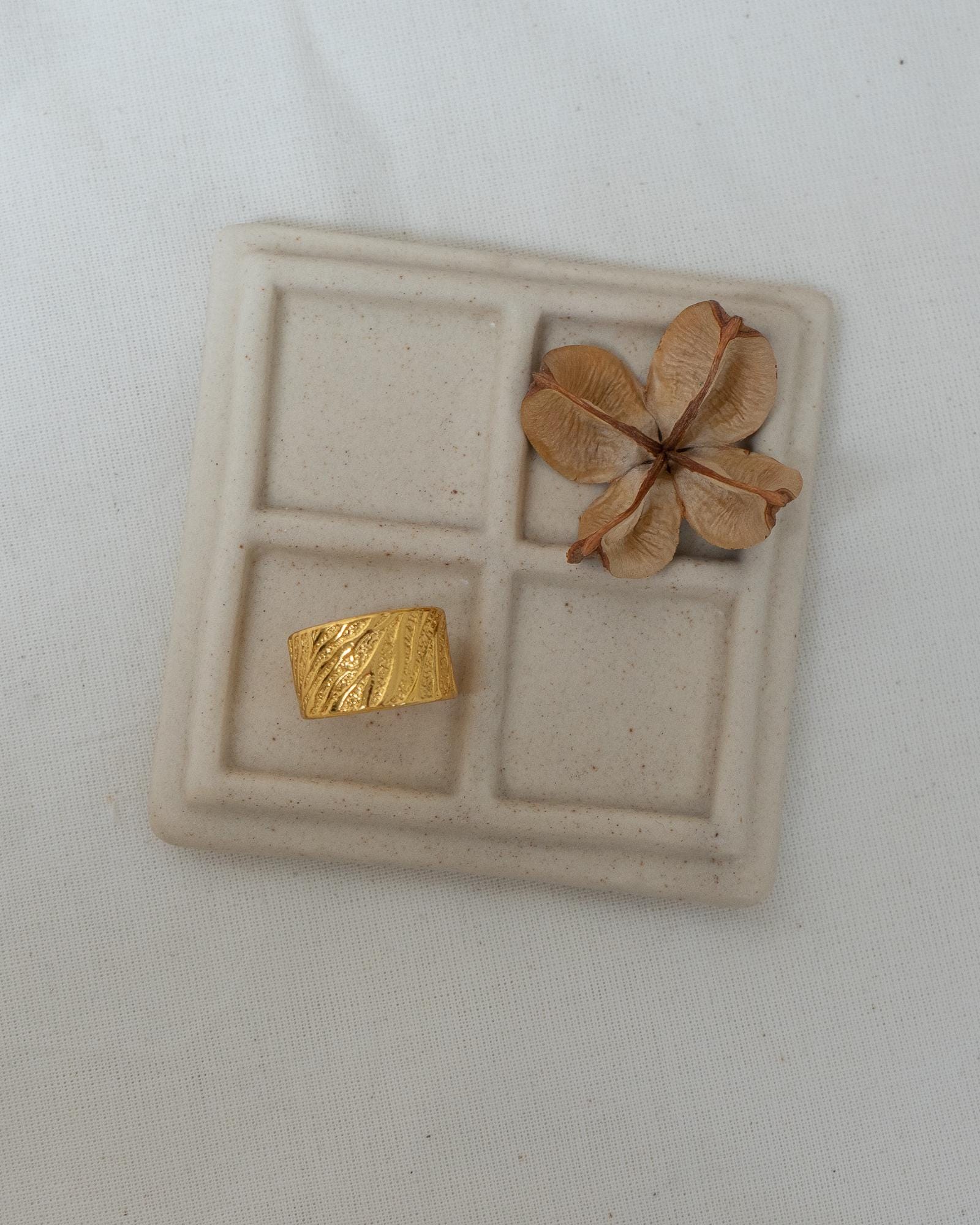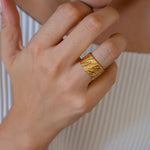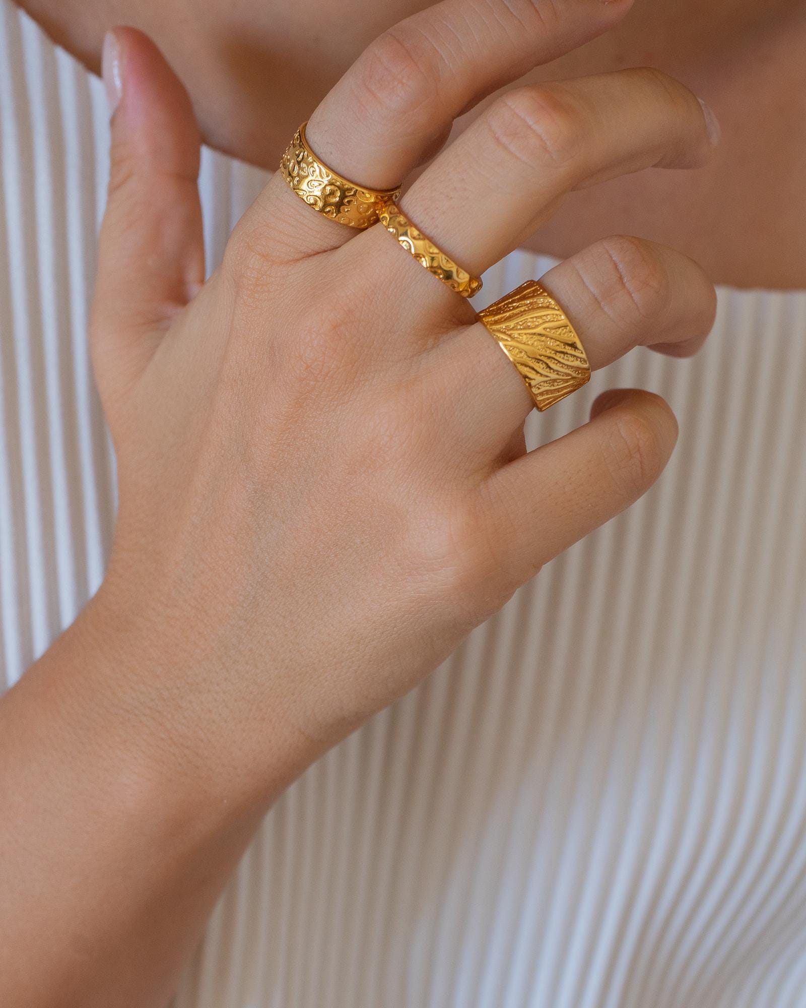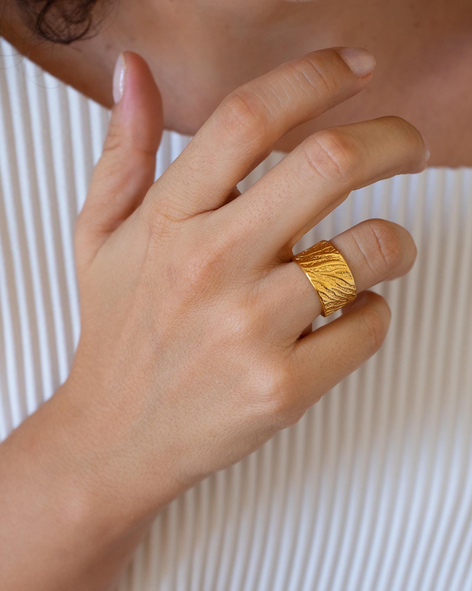 Crafted from high-quality 24k gold plating, this statement band ring features a striking zebra animal print pattern that adds a touch of wild elegance to your jewelry collection. Its unique, irregular shape makes it an eye-catching piece that can be worn confidently for years to come. Suitable for wear on the index, middle, or ring finger, this versatile ring can be styled on its own or layered with other rings for a more personalized look.