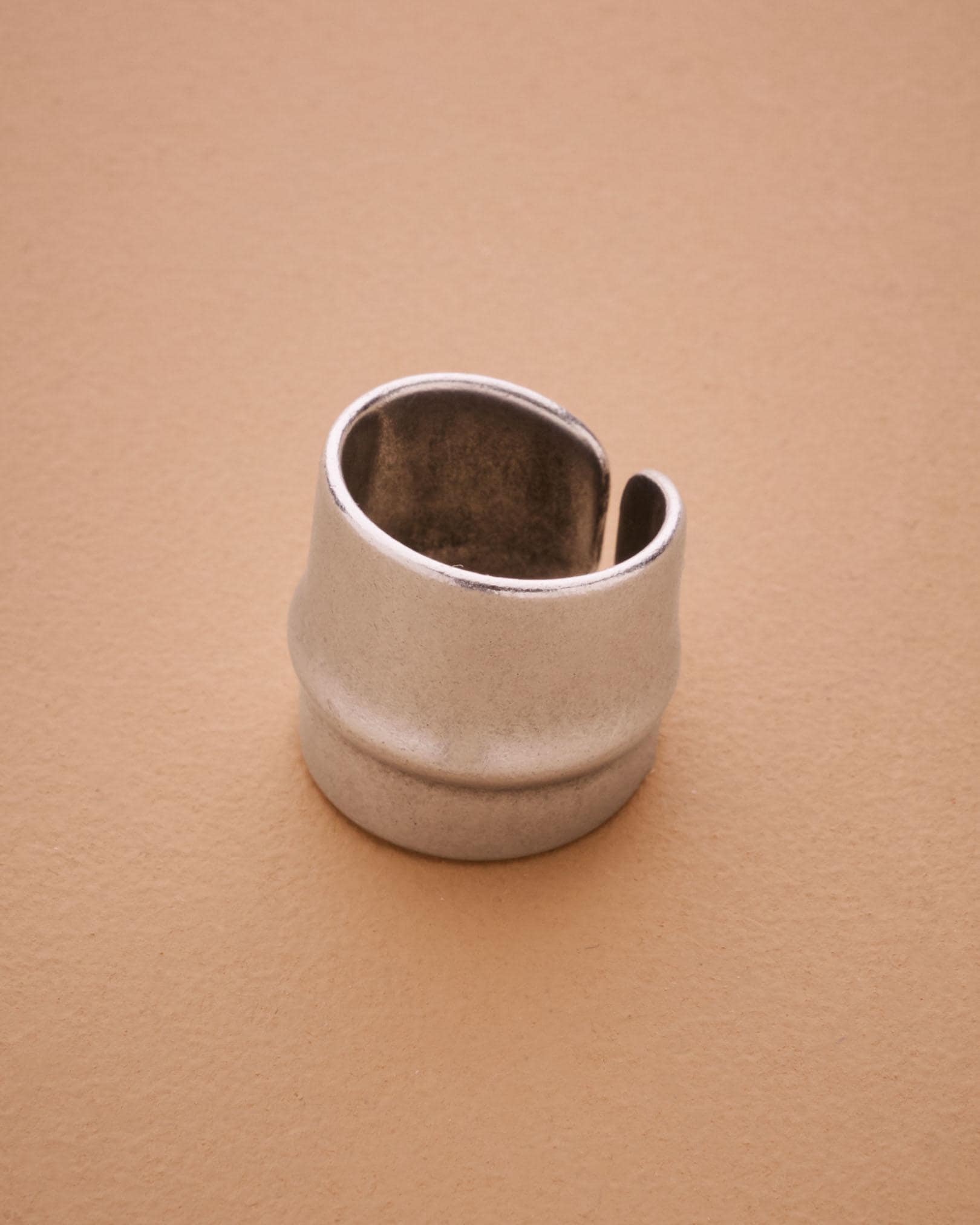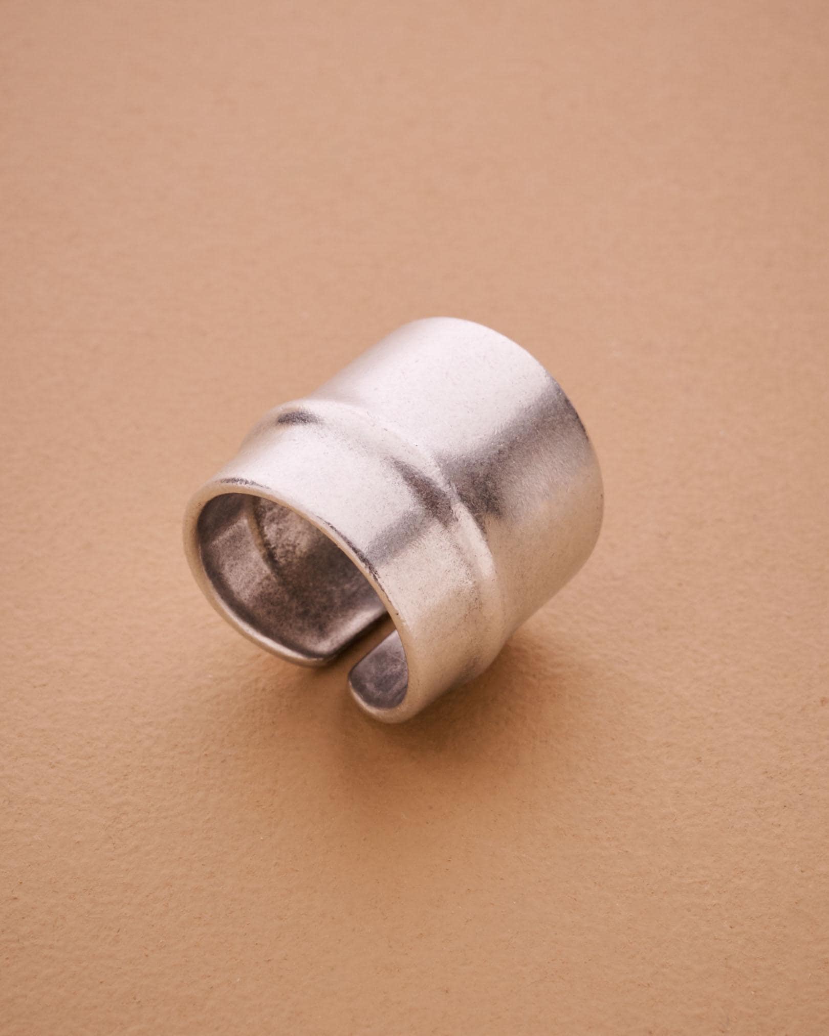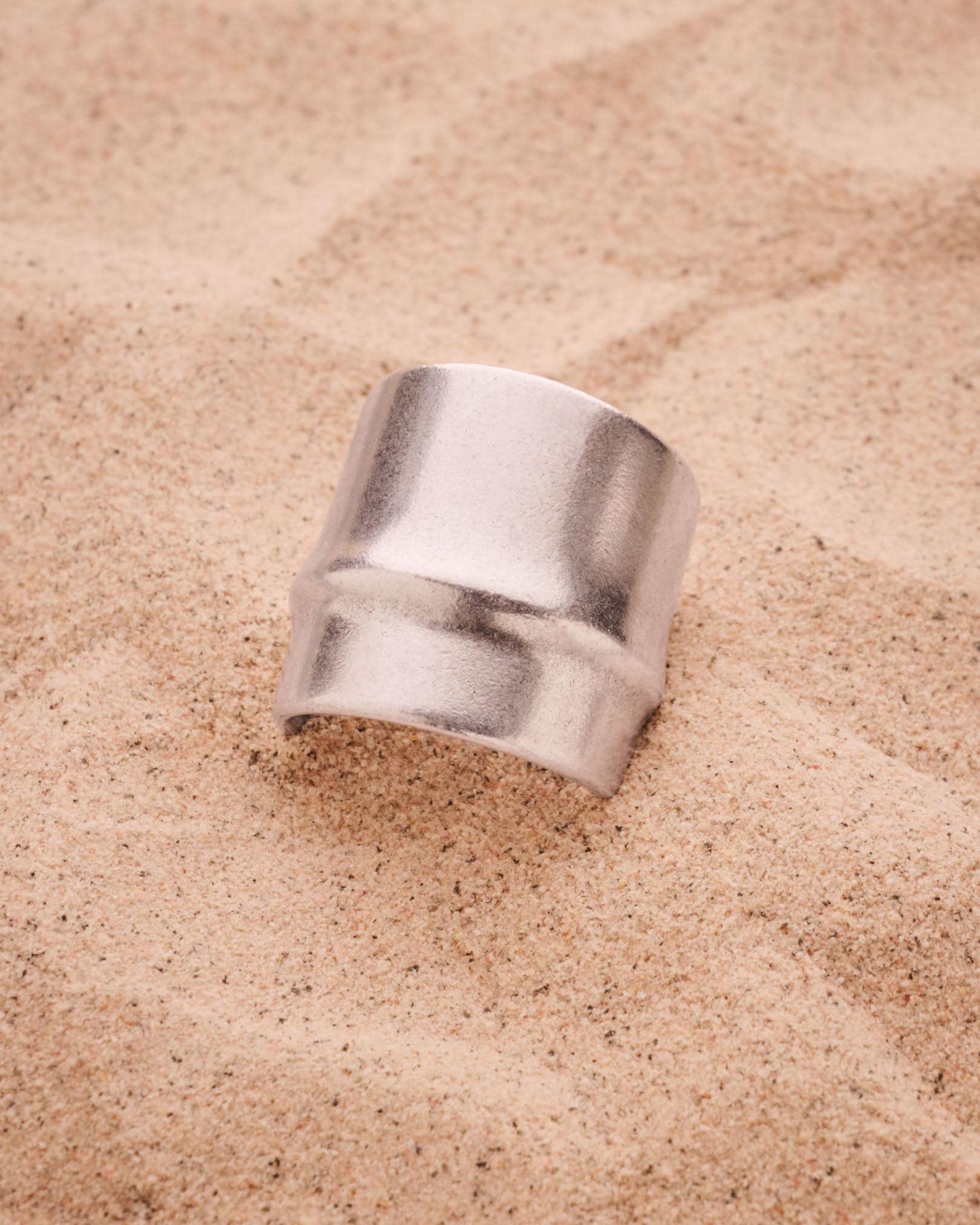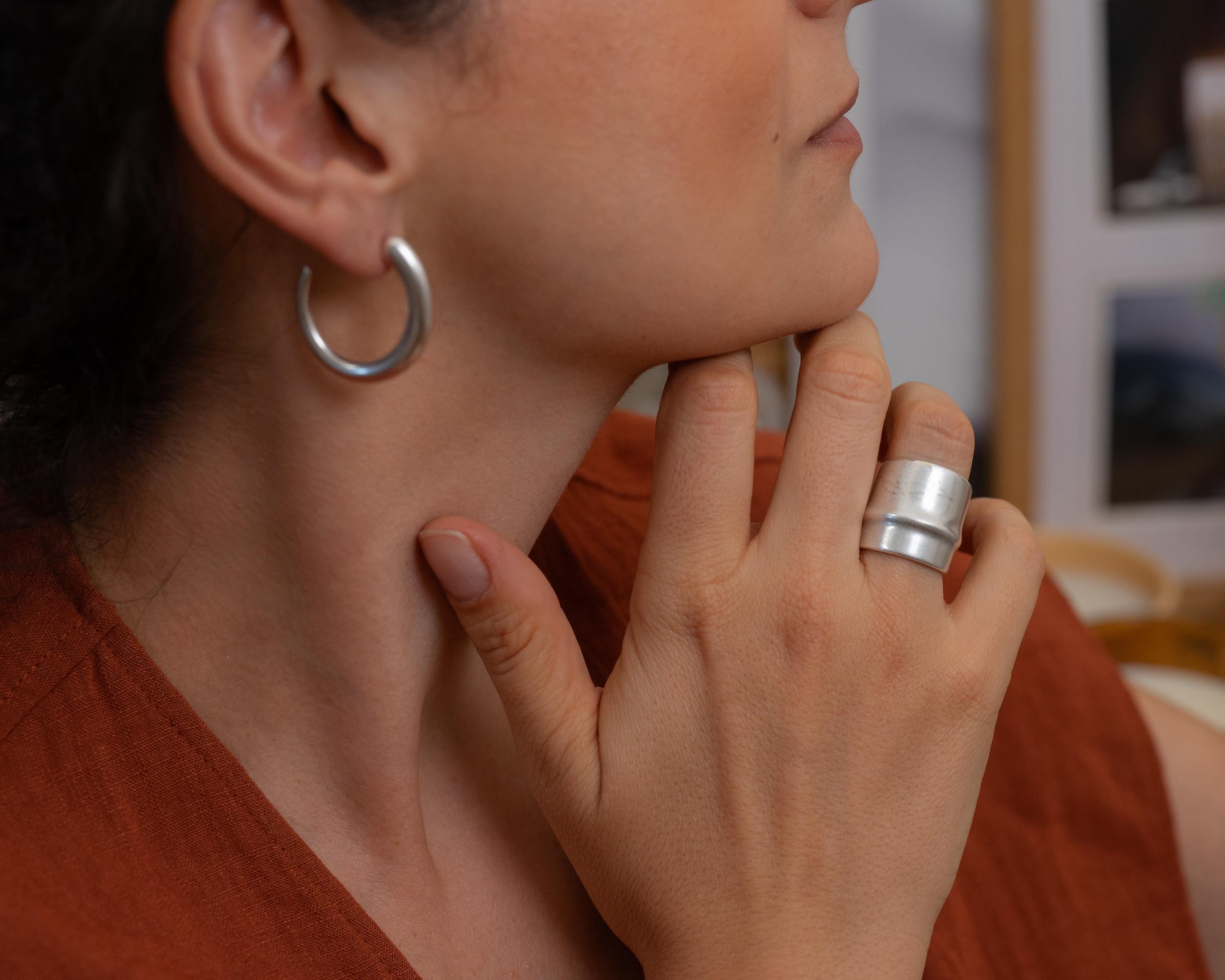Sleek, bold, and architectural—this wide silver ring brings modern structure to your everyday jewelry. Its matte silver-plated finish and center line groove make it quietly impactful. Designed with an open back, it fits most sizes comfortably, though due to its thick, rigid form, we recommend letting us pre-adjust it for the perfect fit.