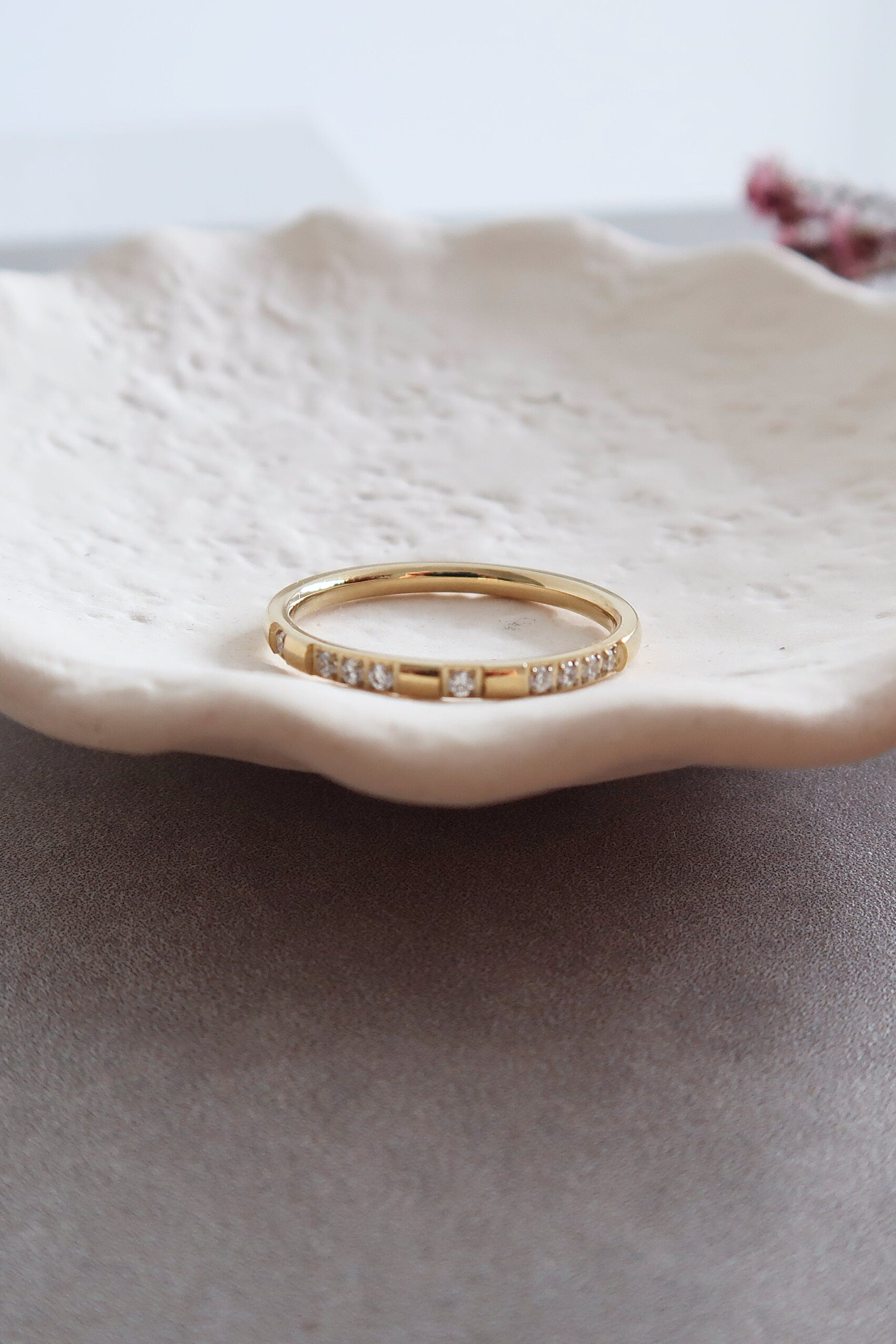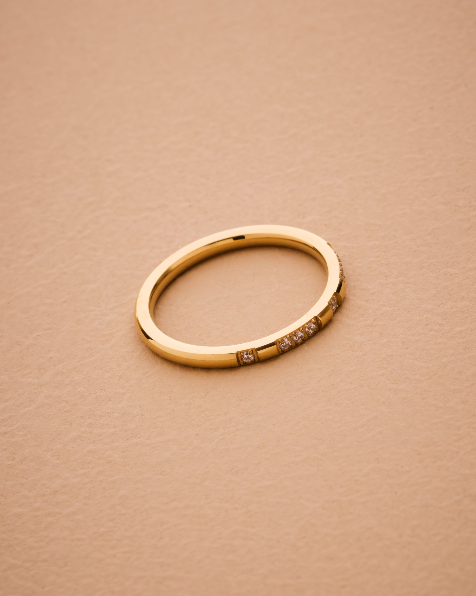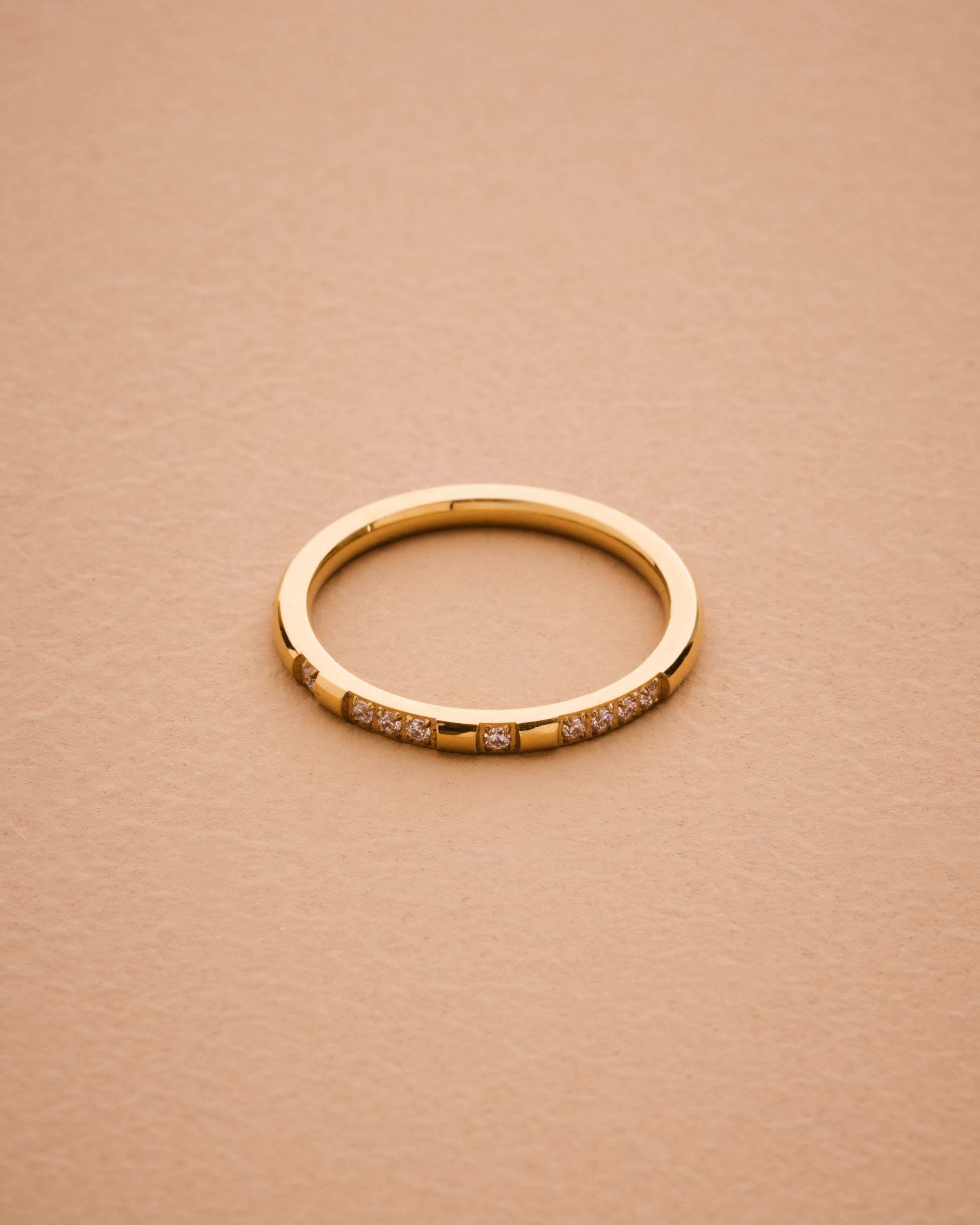 Thin Cubic Zirconia Band 18K Gold-Plated Stainless Steel Ring