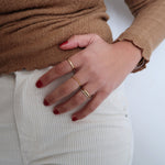 Designed for versatility, this ring can be worn on the index, middle, or ring finger, allowing for diverse styling options. Whether you choose to wear it on its own or stack it with other rings, it adds a touch of sophistication to your look.
