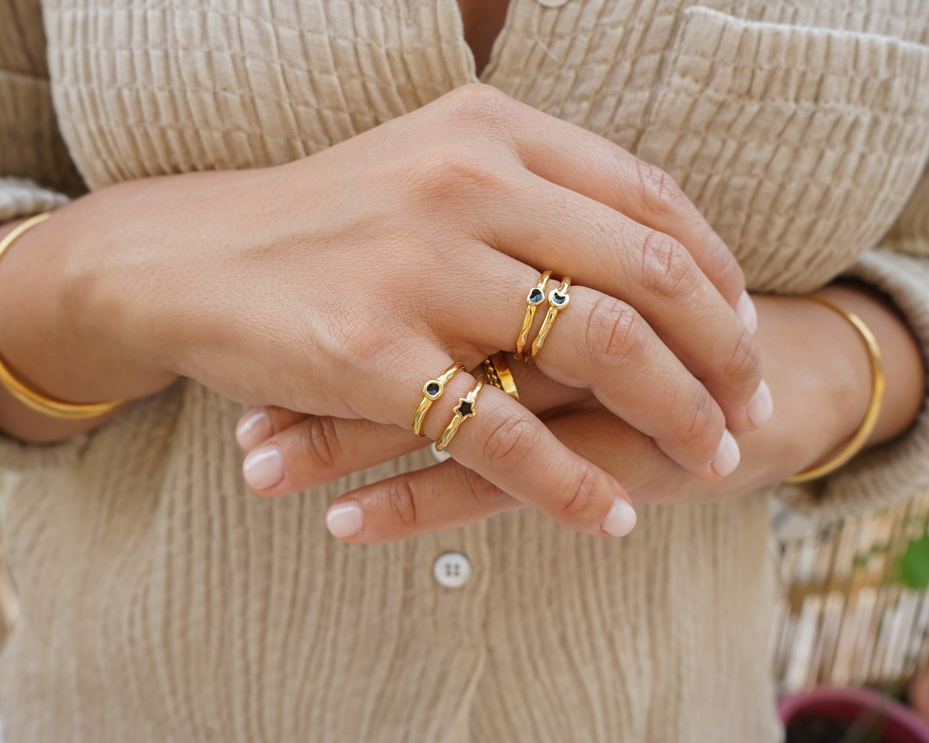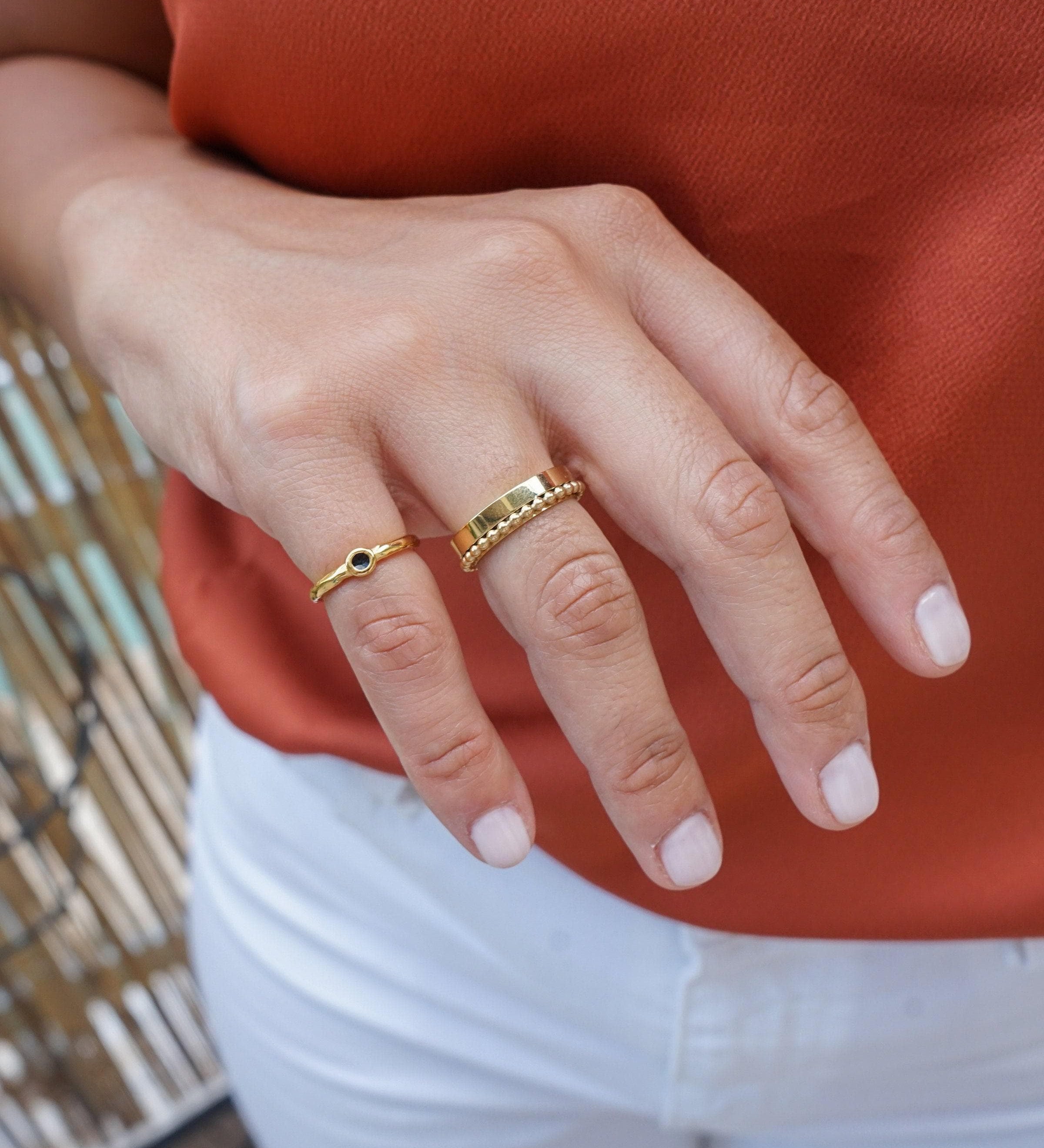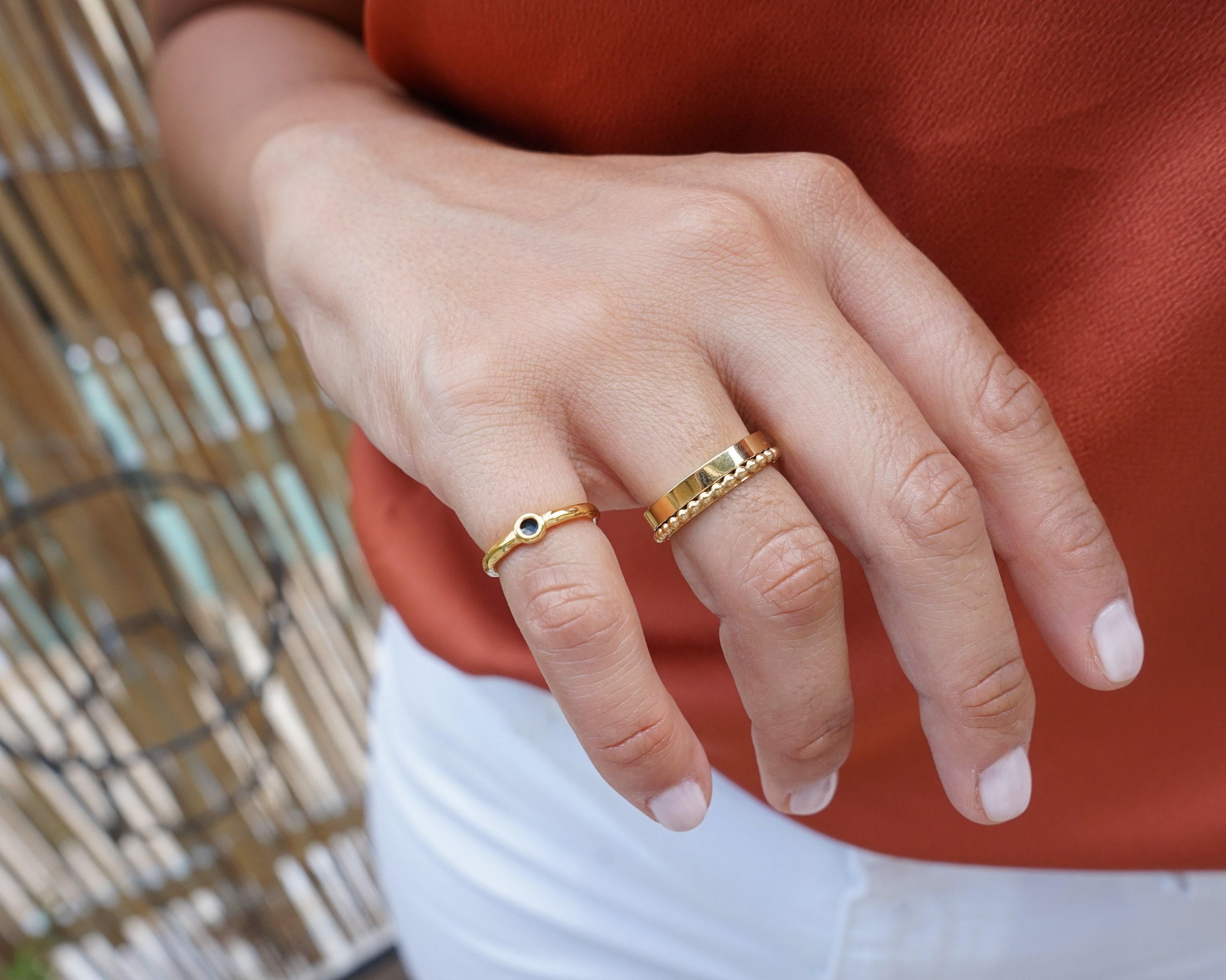Thin Branch CZ Gold Stacking Ring - 18K Gold Plated Stainless Steel Band