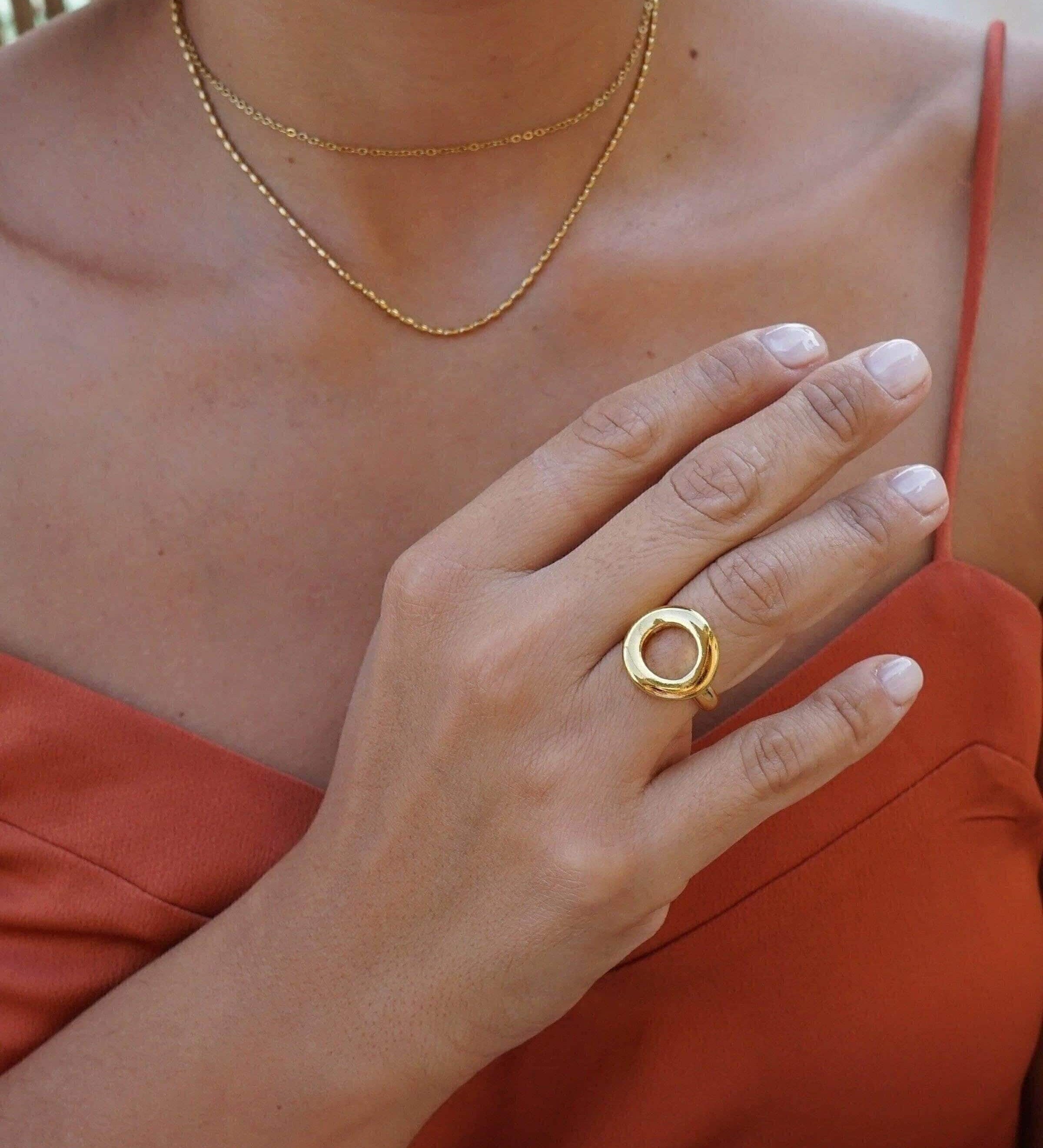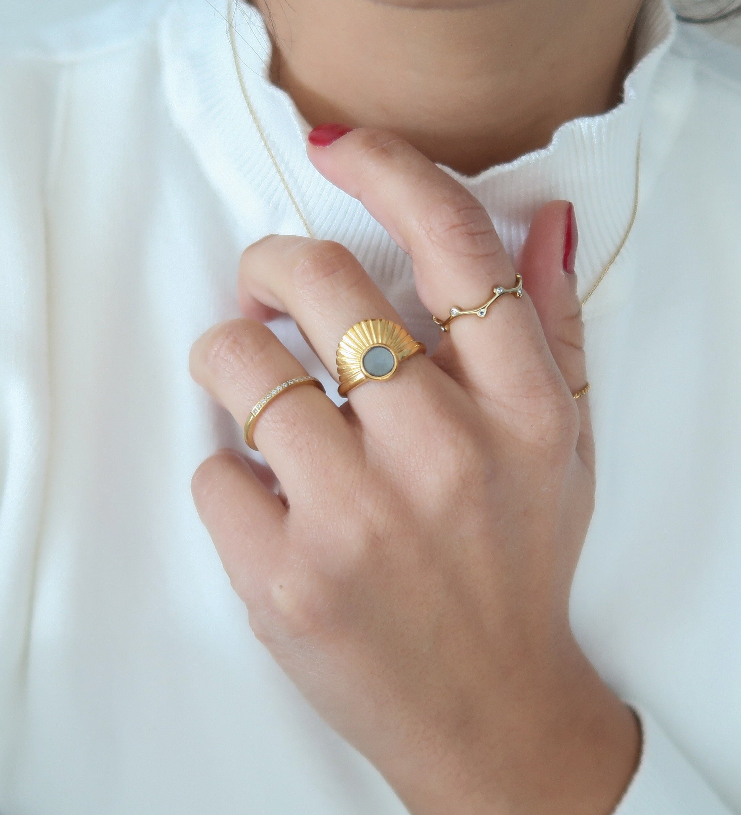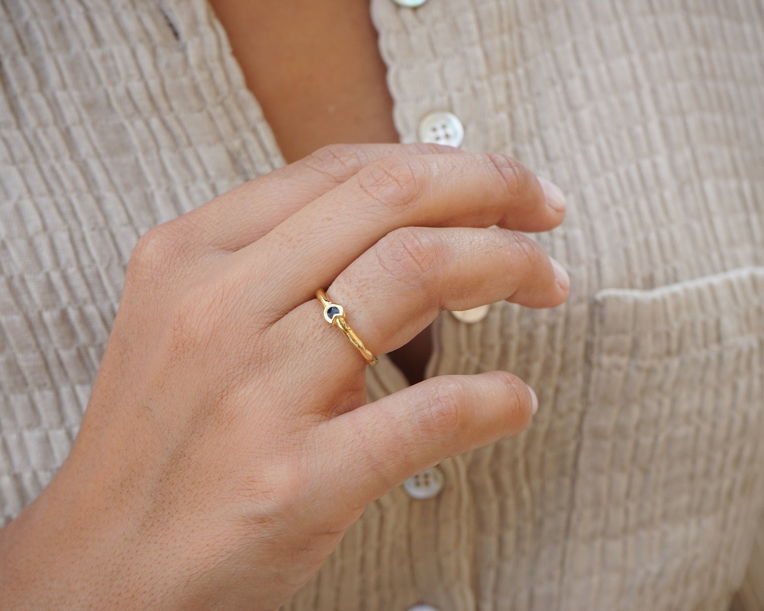 Thin Branch CZ Gold Stacking Ring - 18K Gold Plated Stainless Steel Band