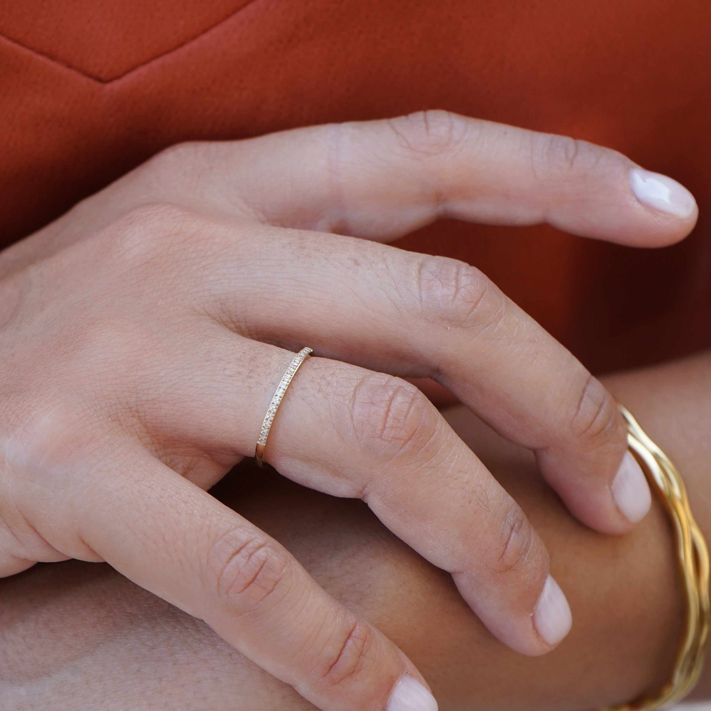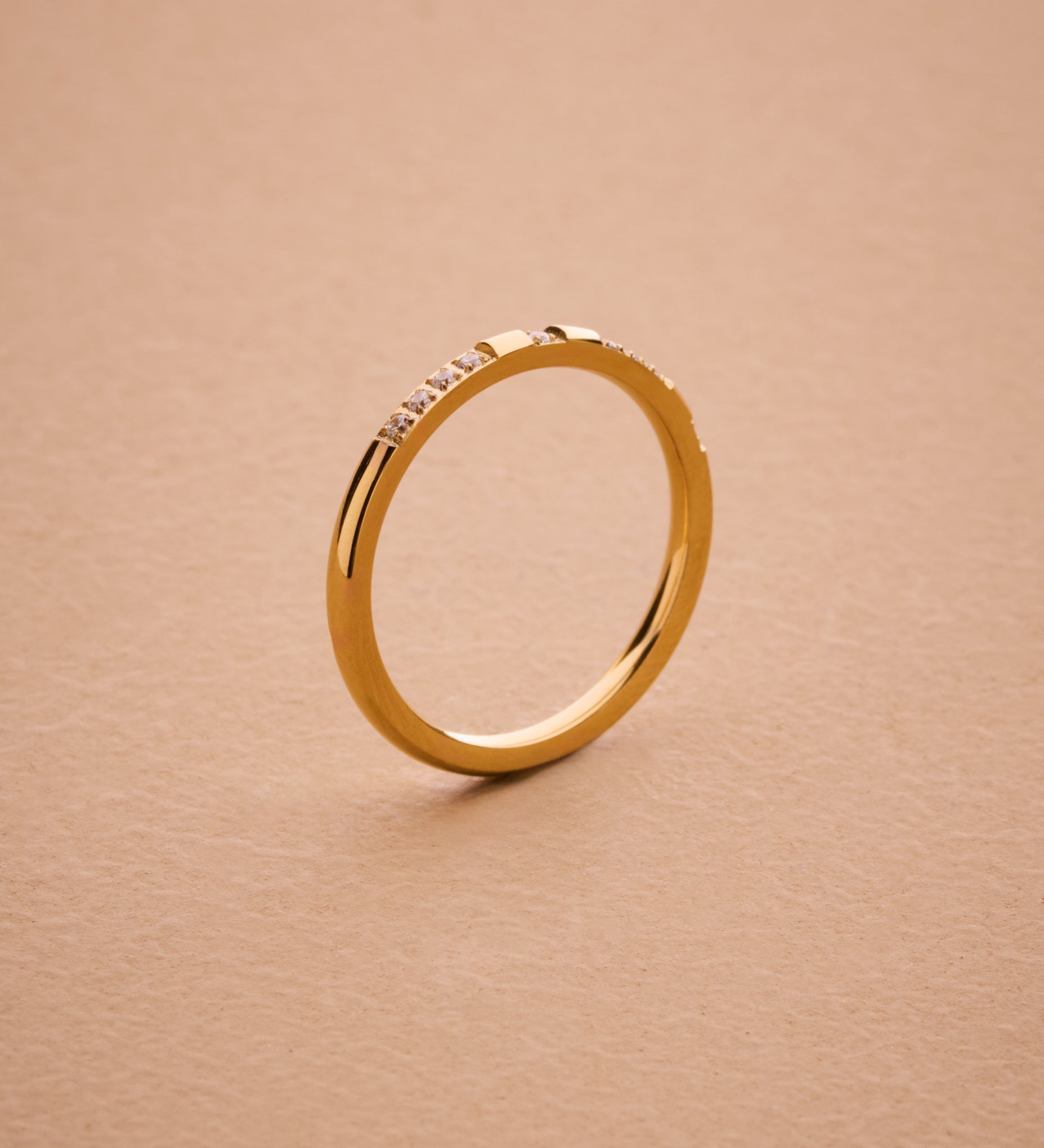 Thin Cubic Zirconia Band 18K Gold-Plated Stainless Steel Ring