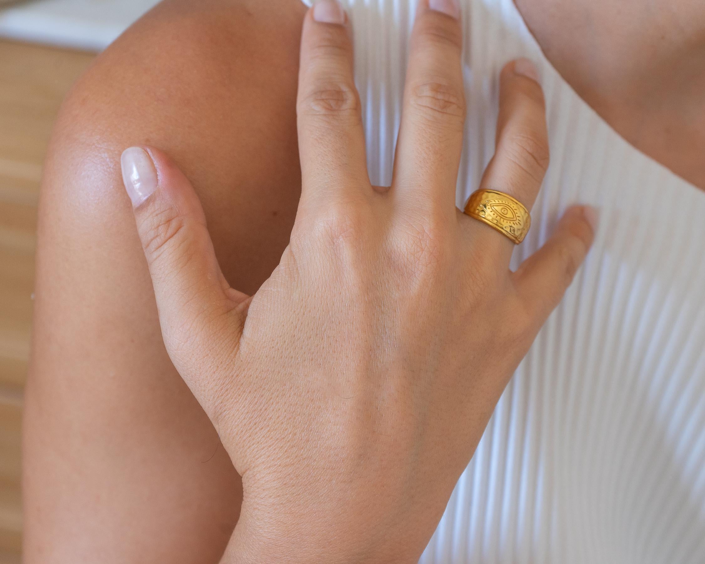 Engraved Gold Evil Eye Protection Ring