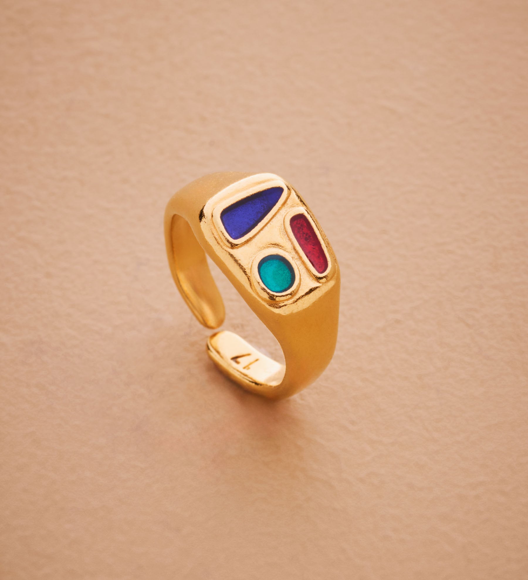 Gold Classic BlackMulticolour Enamel Shapes Rectangle Signet Ring