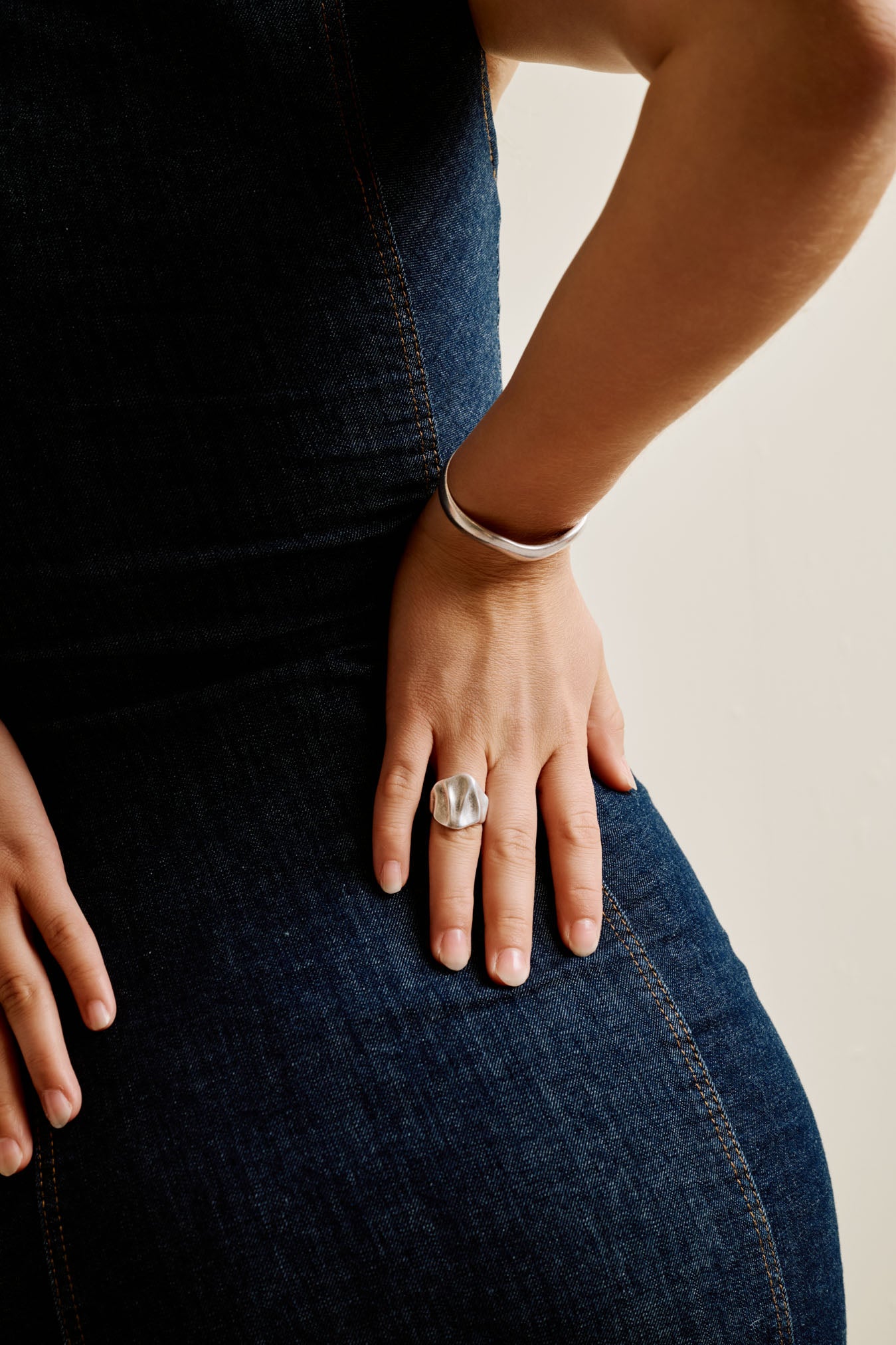 Versatile in style, this unique silver ring can be worn on your index, middle, or ring finger, whether worn alone or stacked with other rings for a personalized touch. It effortlessly enhances your everyday outfits, adding a touch of elegance to a simple shirt and jeans or any casual ensemble.
