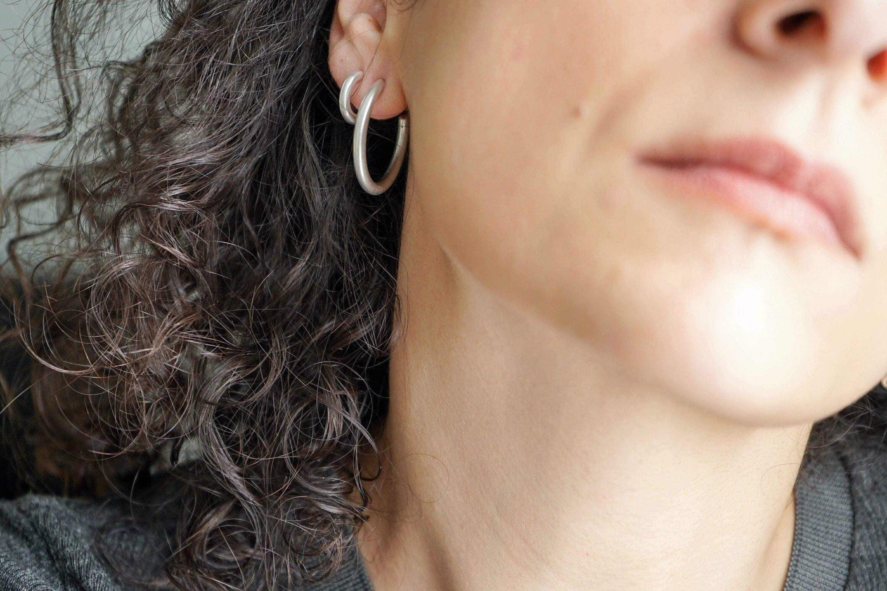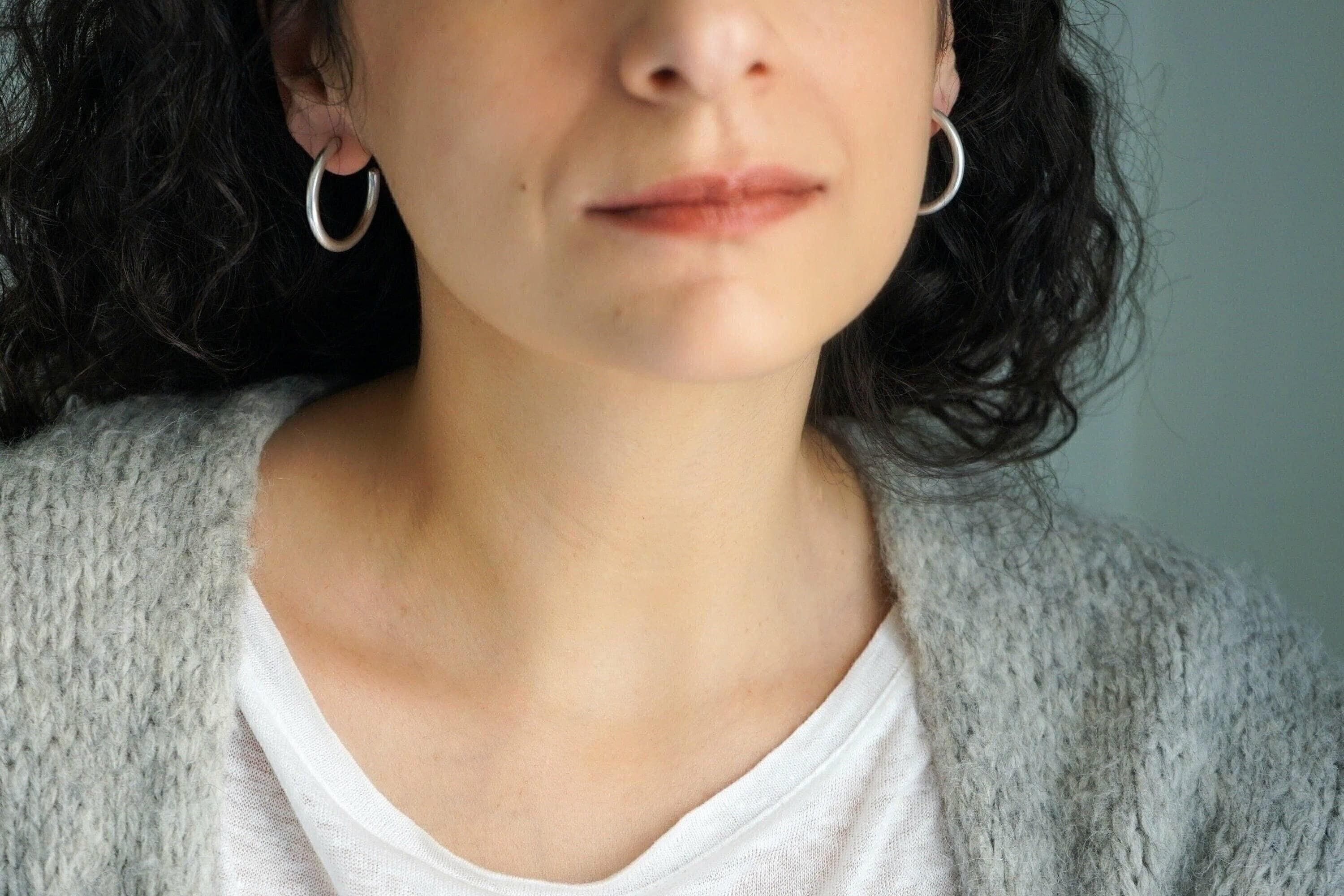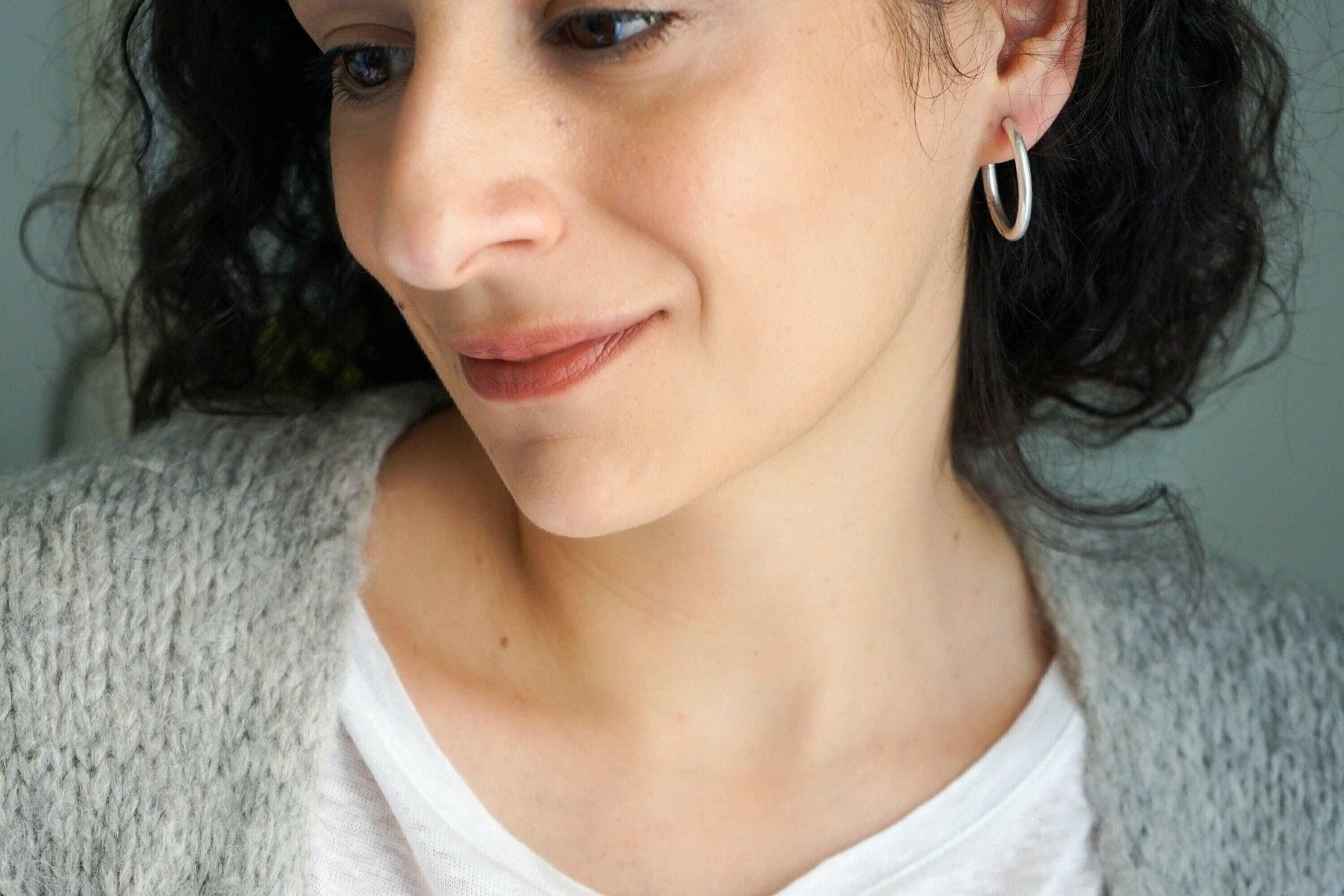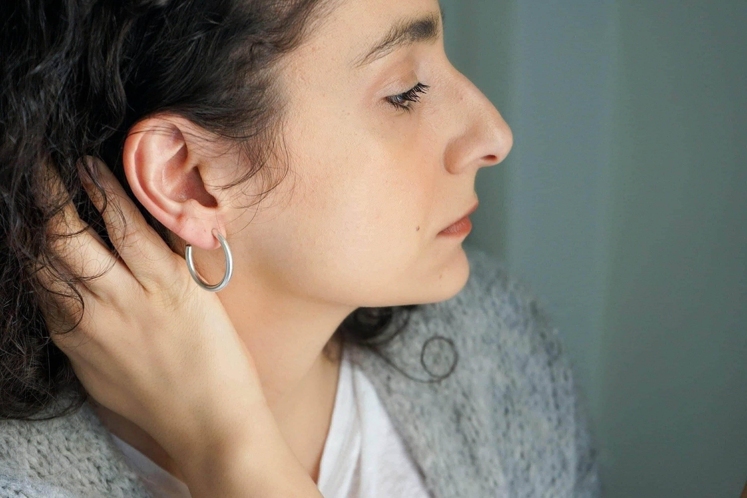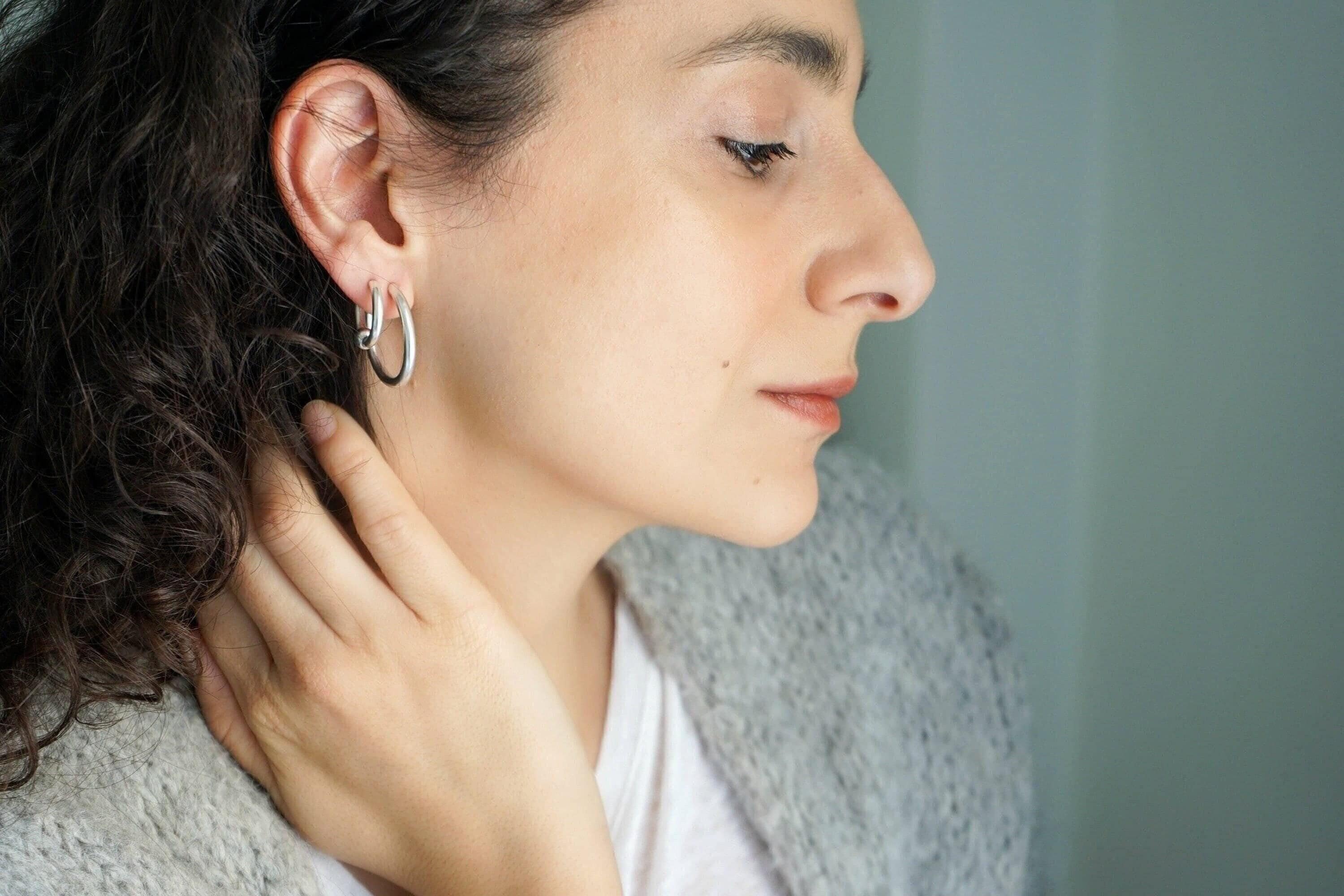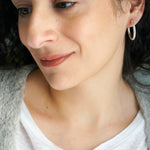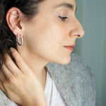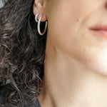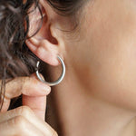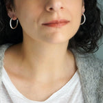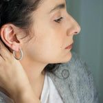 Ασημί κρίκοι τύπου 3/4 με ανοιχτό σχεδιασμό και καθαρή γραμμή. Το κλασικό τους σχήμα επιτρέπει να φοριούνται μόνοι τους ή σε συνδυασμό με άλλα σκουλαρίκια για layering.