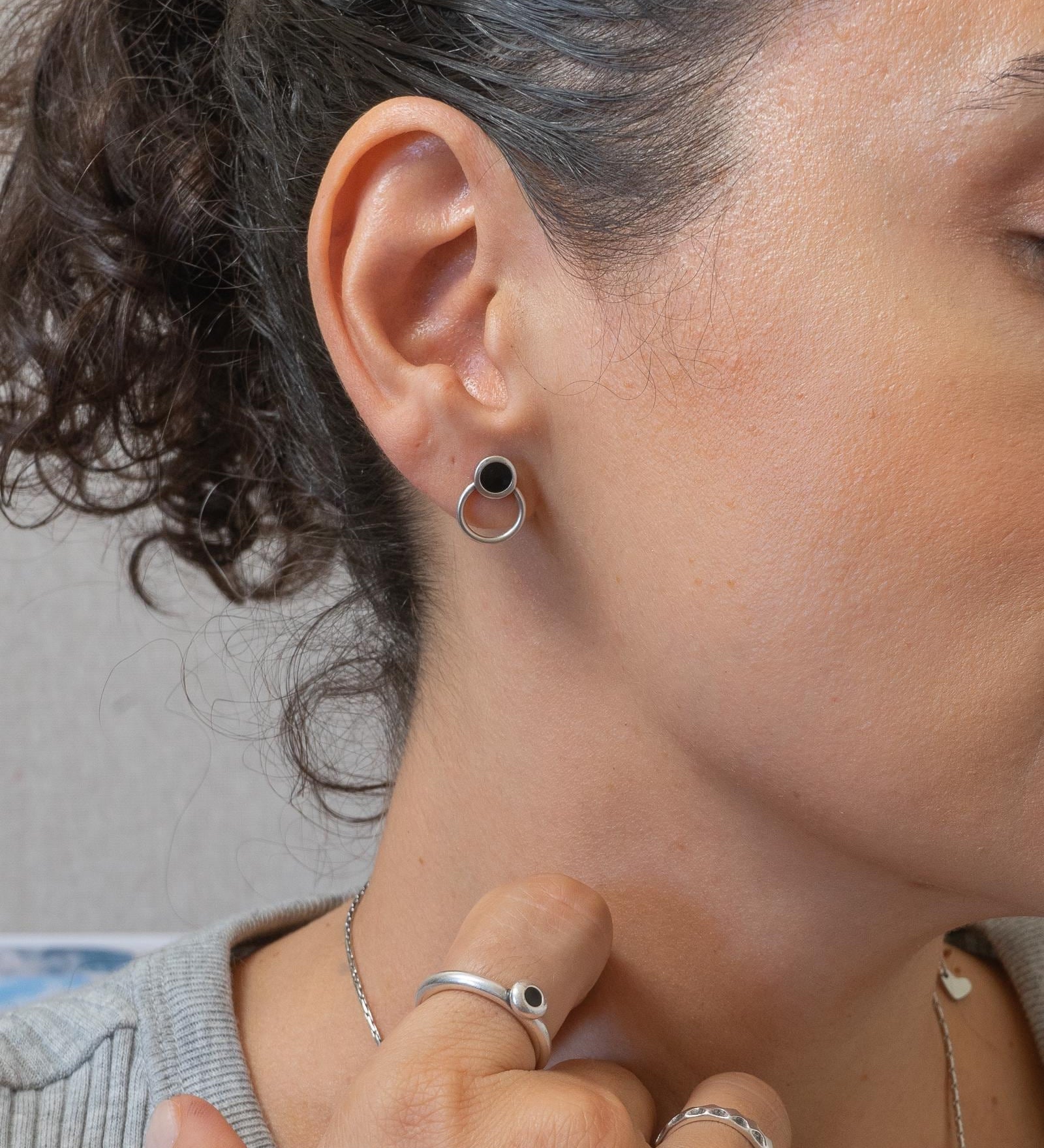 Silver Earrings with Turquoise/Black/Green Enamel Shape Studs