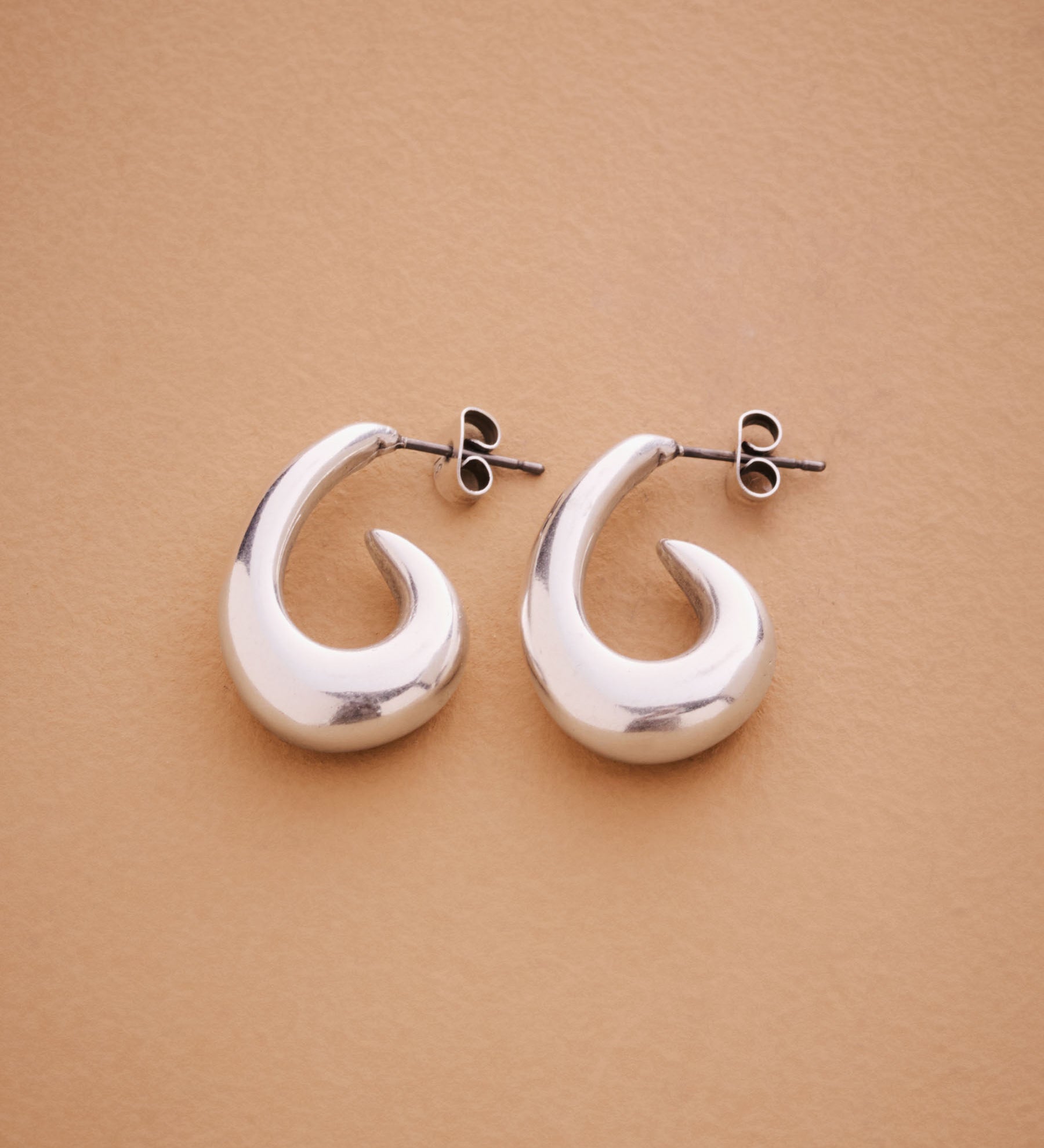 Ασημί Κρίκοι με Καμπύλη Φόρμα