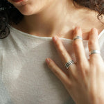 Discover this beautifully crafted silver-plated statement band ring, featuring a meticulously engraved floral design. The intertwined floral pattern is inspired by nature and symbolizes eternal love, making it a thoughtful gift for your special someone on Valentine's Day or any meaningful occasion. This versatile piece can be worn on the index, middle, thumb, or ring finger and looks lovely alongside the rings already in your collection.